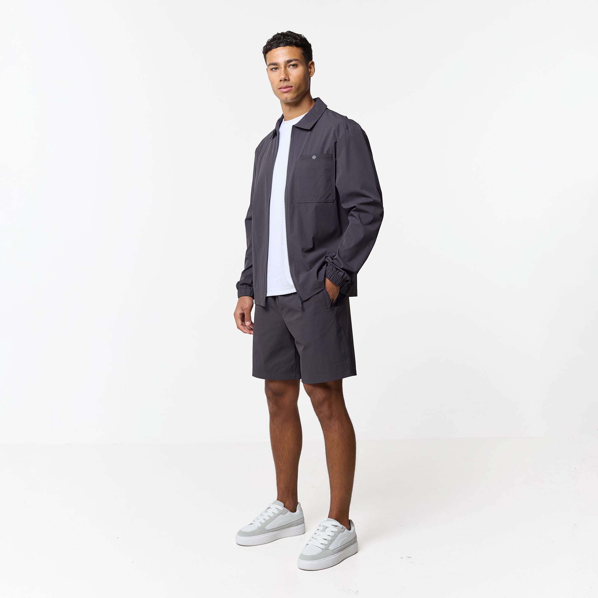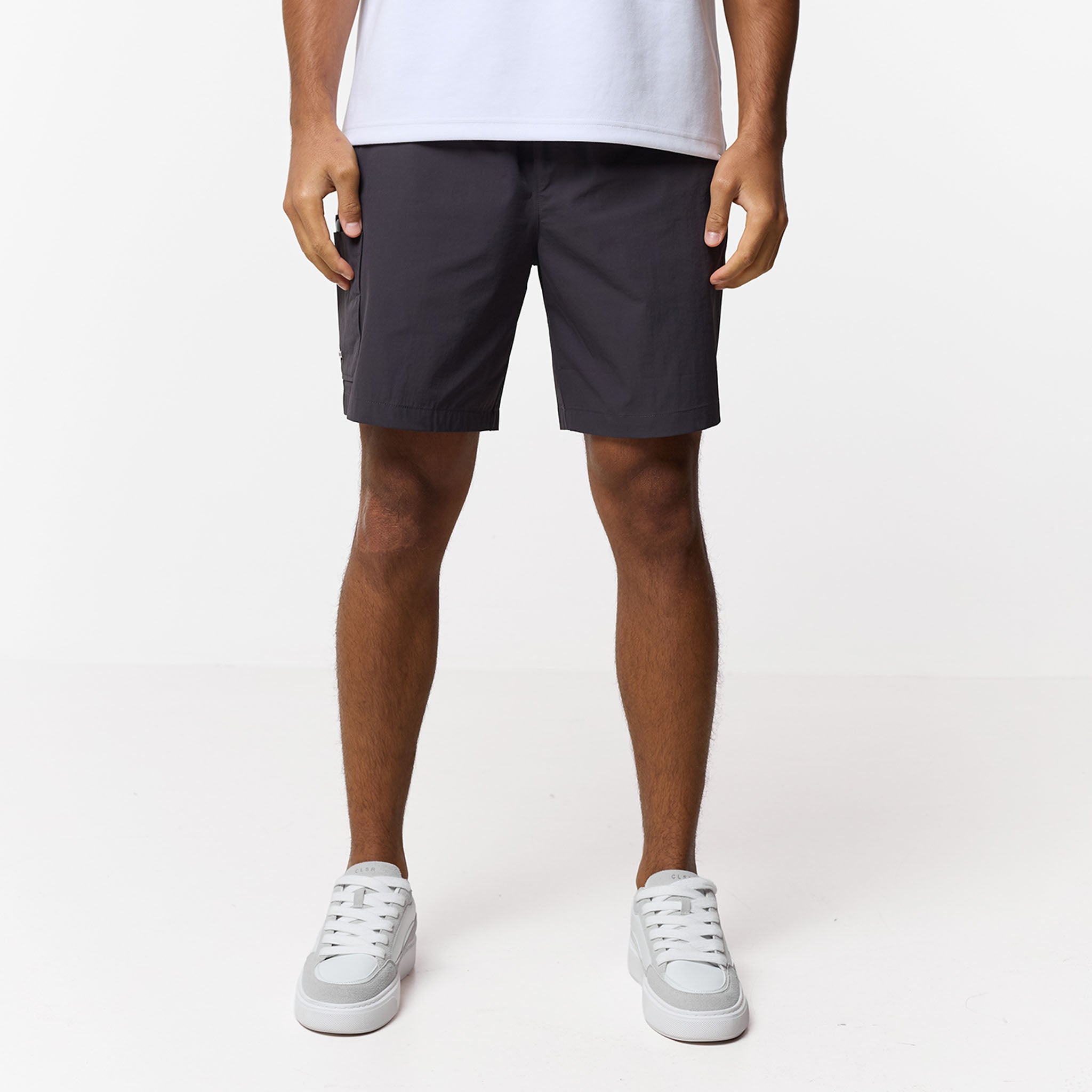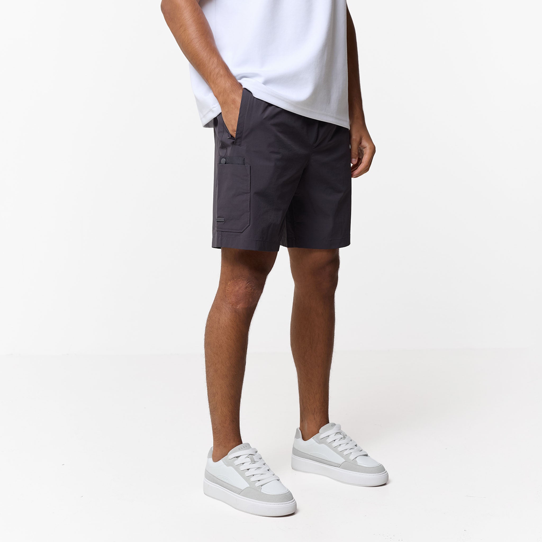 Discover the Double Pocket Tech Shorts in Charcoal, a signature style which merges rugged functionality with a sharp aesthetic. Engineered for a premium fit, they feature a flexible elasticated waistband anchored by rubber-dipped tubular drawcords and reinforced eyelets. This technical silhouette prioritises secure storage through discreet welt pockets equipped with concealed reverse coil zips, while the standout double-layered patch pocket integrates a high-tenacity ripstop compartment with press stud closures for a tactile, multi-textured finish. Completed with the signature Closure London metal hardware and a clean self-turn hem, these shorts are designed to be worn as a definitive head-to-toe set alongside the coordinating charcoal overshirt or styled independently with a minimalist scuba tee for a refined summer look.
