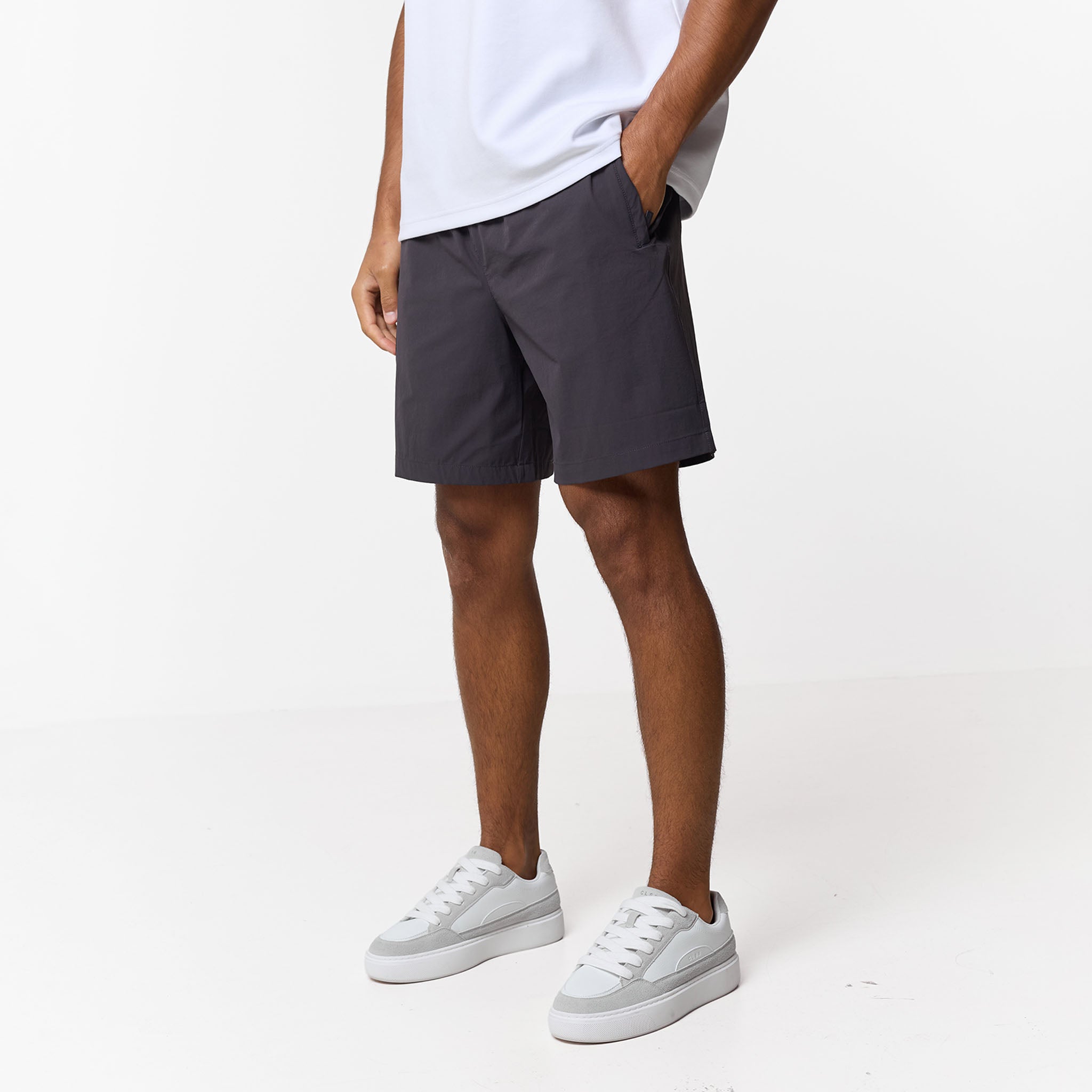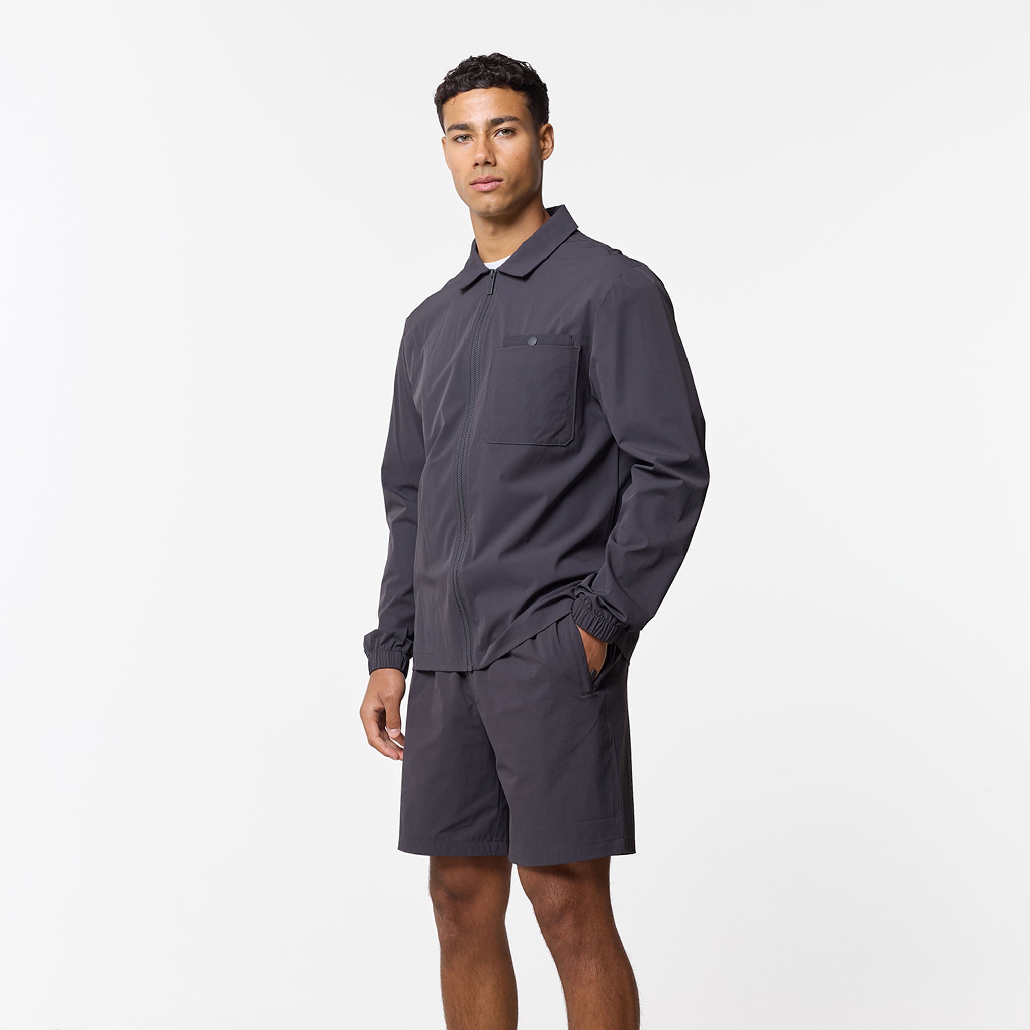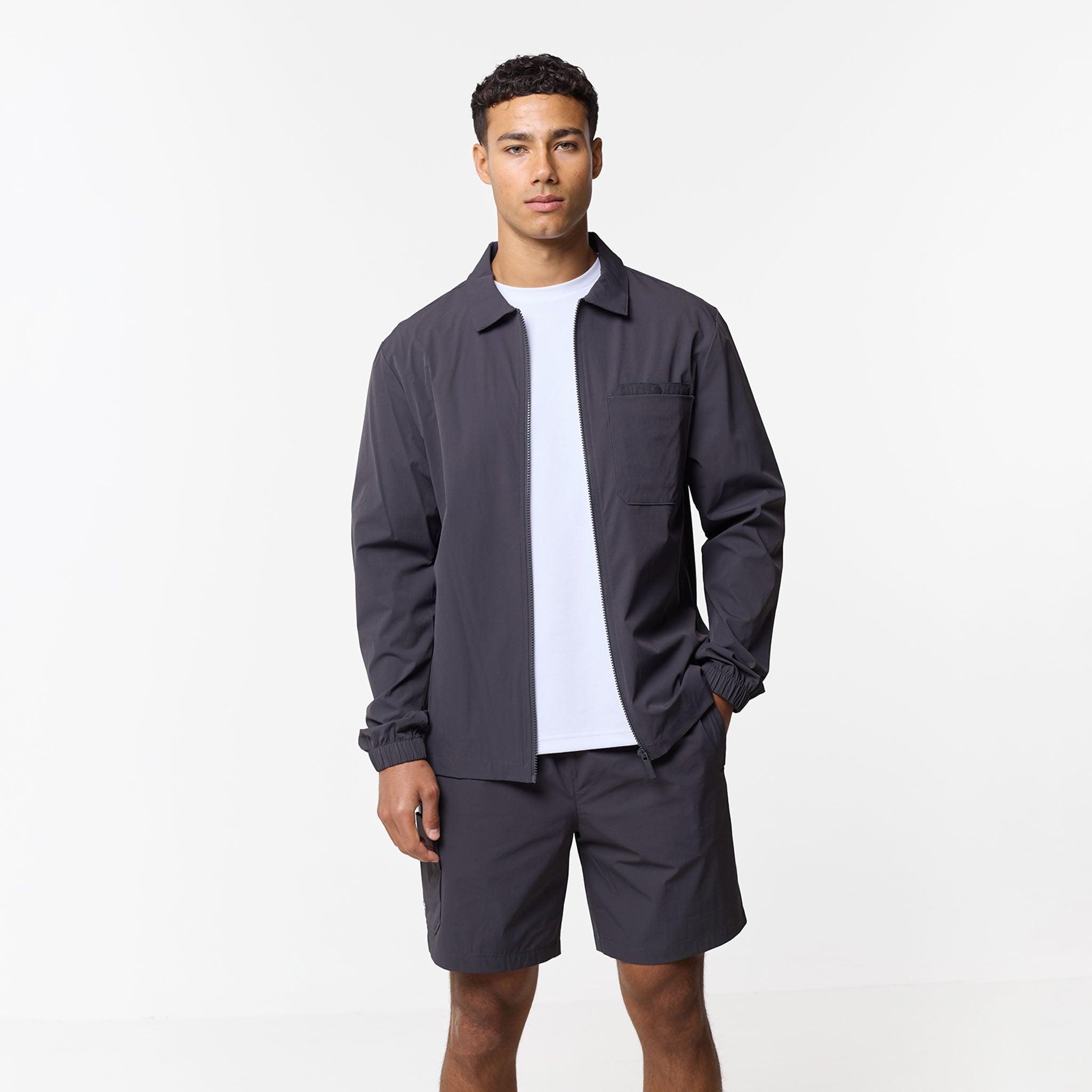 Discover the Double Pocket Tech Shorts in Charcoal, a signature style which merges rugged functionality with a sharp aesthetic. Engineered for a premium fit, they feature a flexible elasticated waistband anchored by rubber-dipped tubular drawcords and reinforced eyelets. This technical silhouette prioritises secure storage through discreet welt pockets equipped with concealed reverse coil zips, while the standout double-layered patch pocket integrates a high-tenacity ripstop compartment with press stud closures for a tactile, multi-textured finish. Completed with the signature Closure London metal hardware and a clean self-turn hem, these shorts are designed to be worn as a definitive head-to-toe set alongside the coordinating charcoal overshirt or styled independently with a minimalist scuba tee for a refined summer look.
