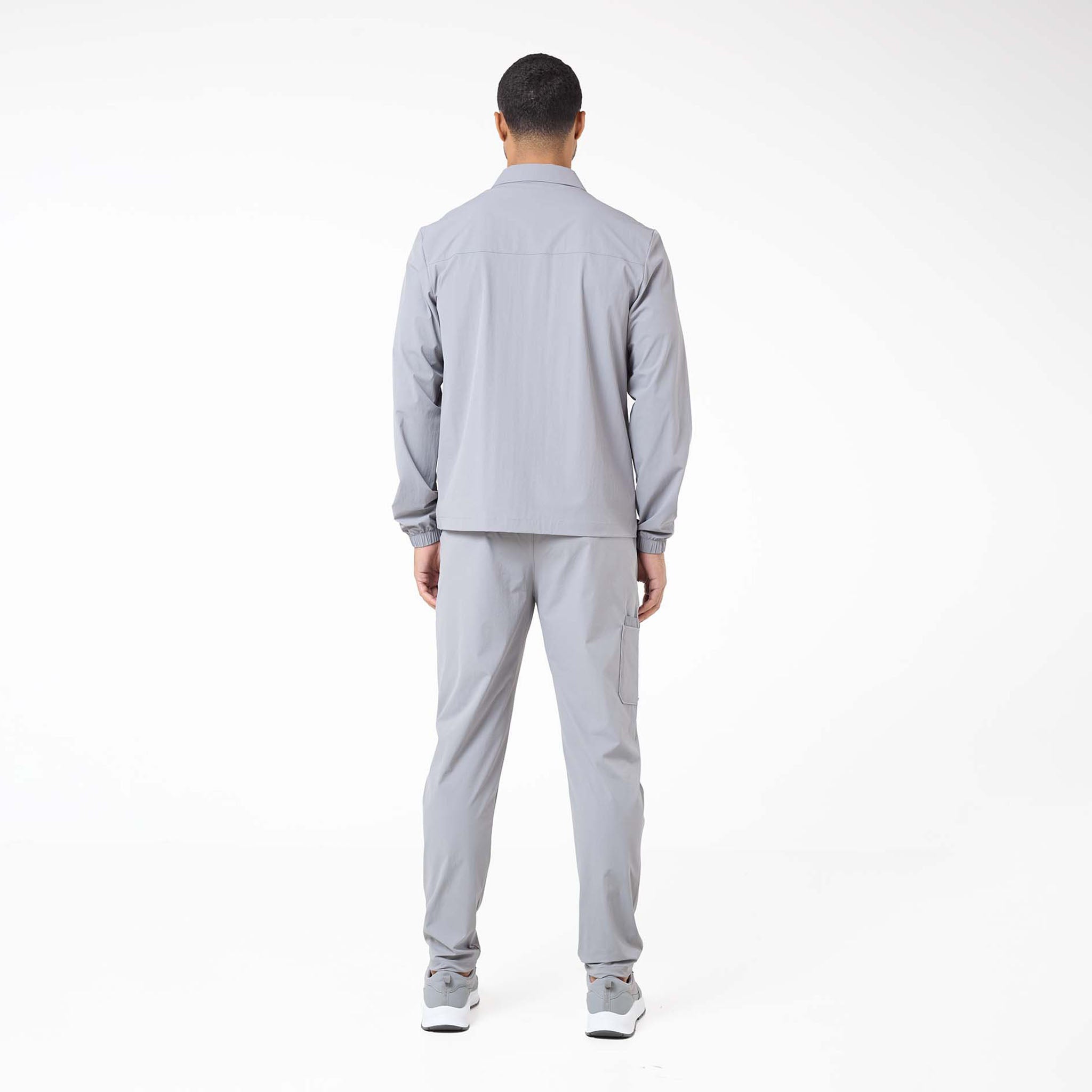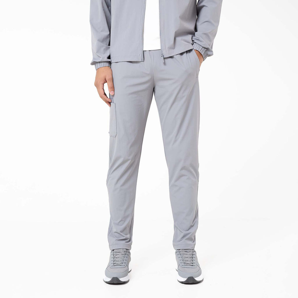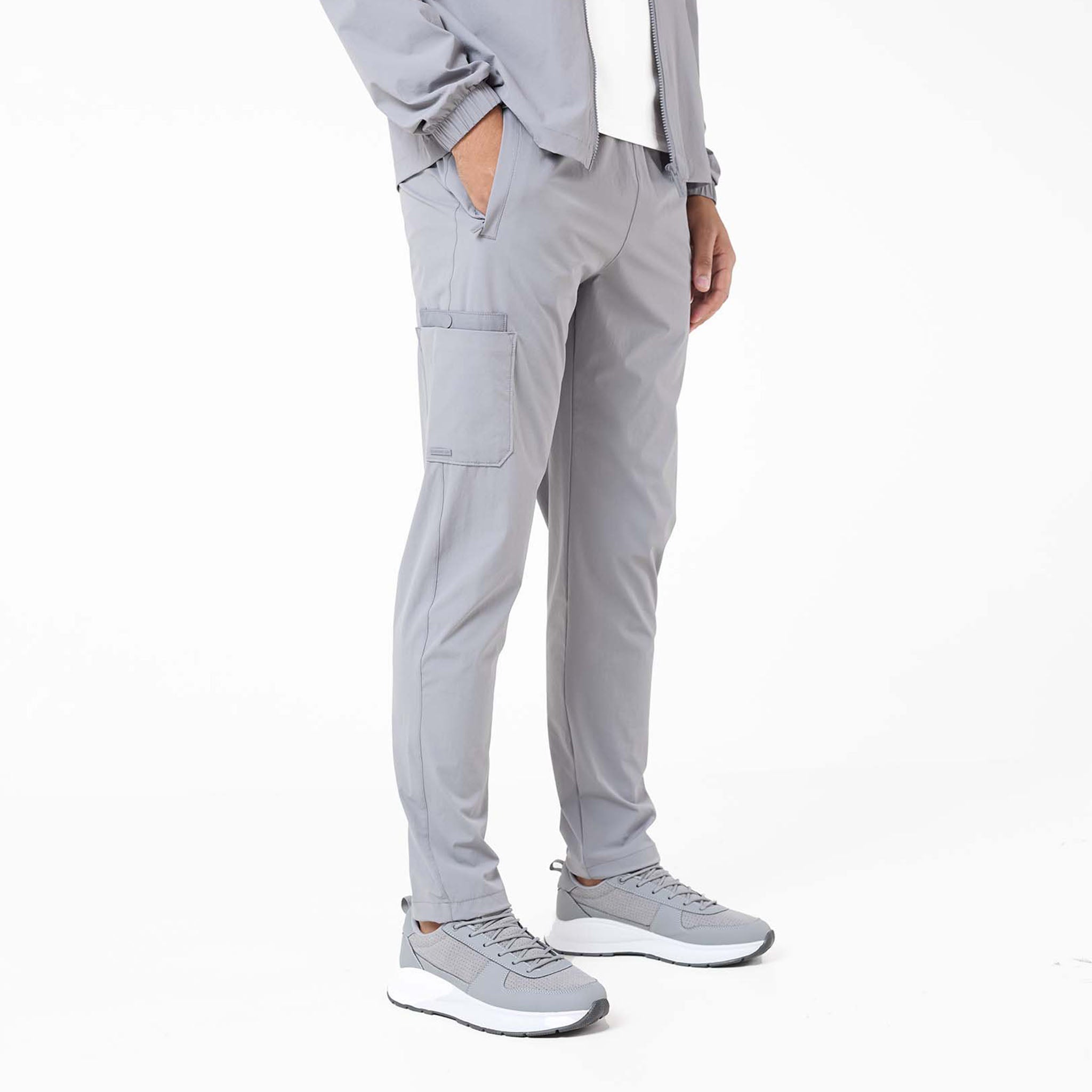 Elevate your everyday wear with our men's Mid Grey Tech Utility Trousers. These trousers seamlessly blend functionality with contemporary style, making them an essential addition to your casual wardrobe. They feature a comfortable elasticated waistband with flat drawcords and rubber-dipped ends for a precise, secure fit. Keep your essentials discreetly stored in the front welt pockets with concealed reverse coil zips, each with a sleek Closure branded zip pull. Premium detailing is added by a double-layered patch pocket with a press stud fastening, proudly adorned with a Closure branded metal badge. The clean self-turn hem adds a polished touch, while an internal bungee cord and adjuster at the hem offers customisable styling.