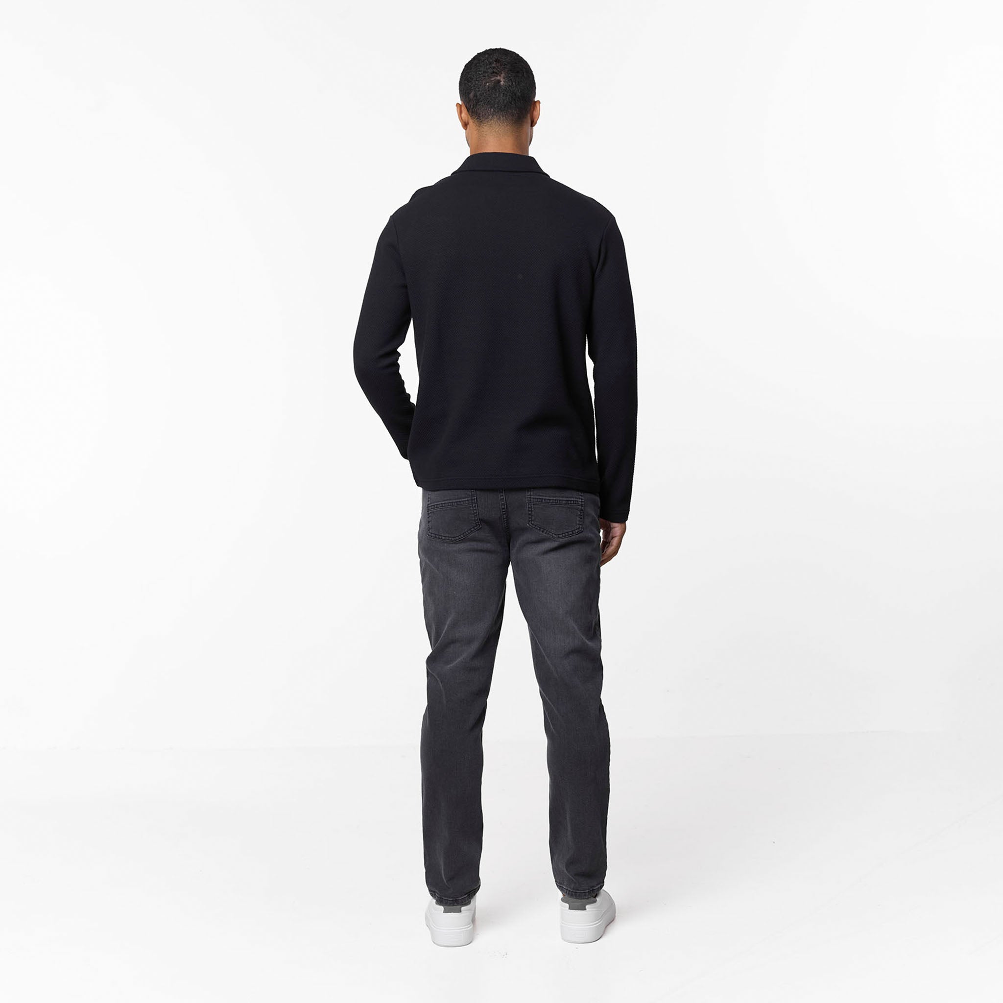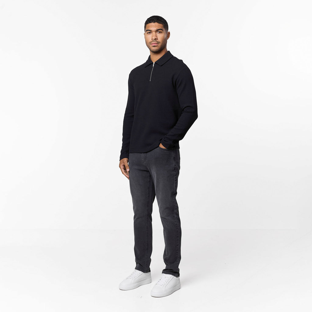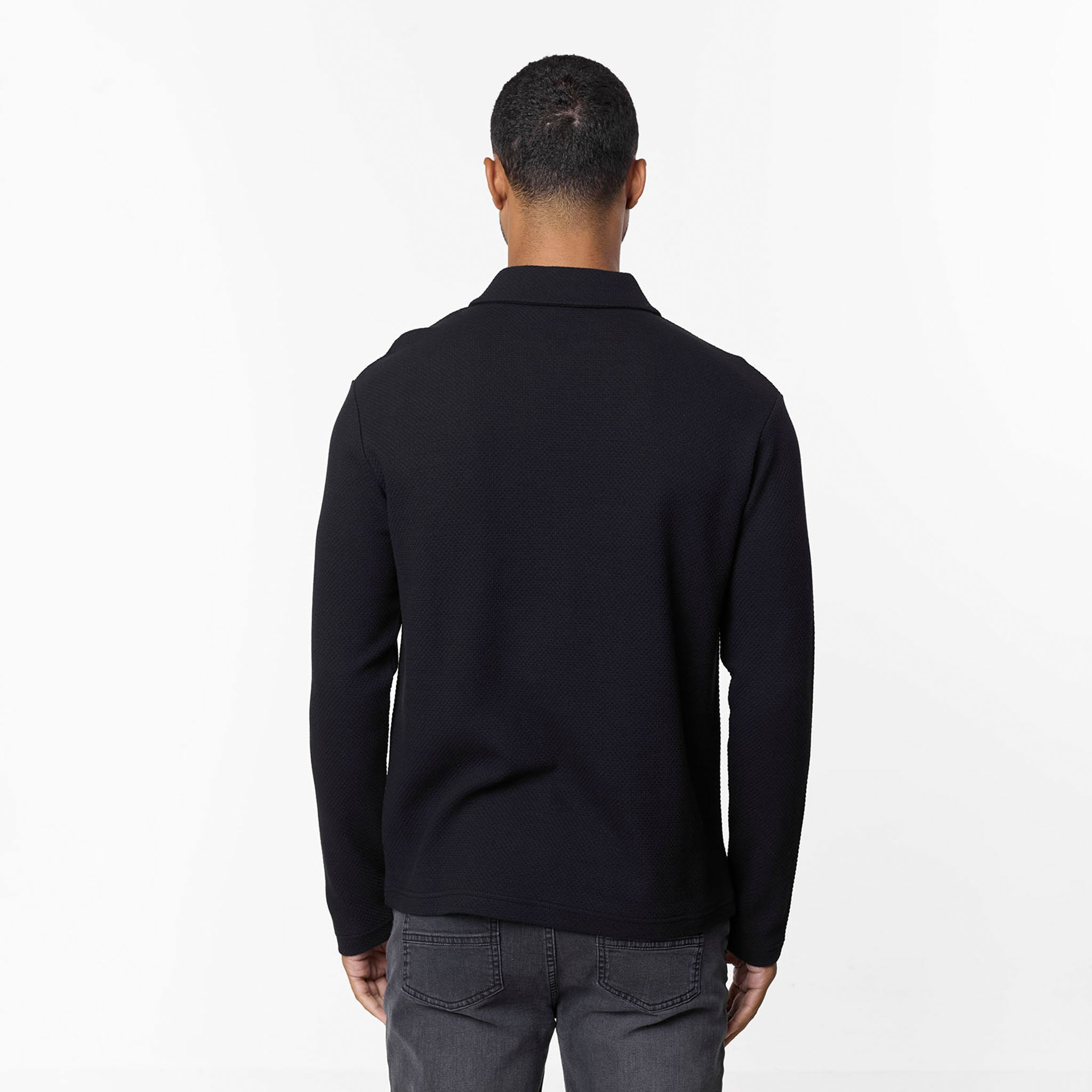 Long Sleeve Textured Polo | Black