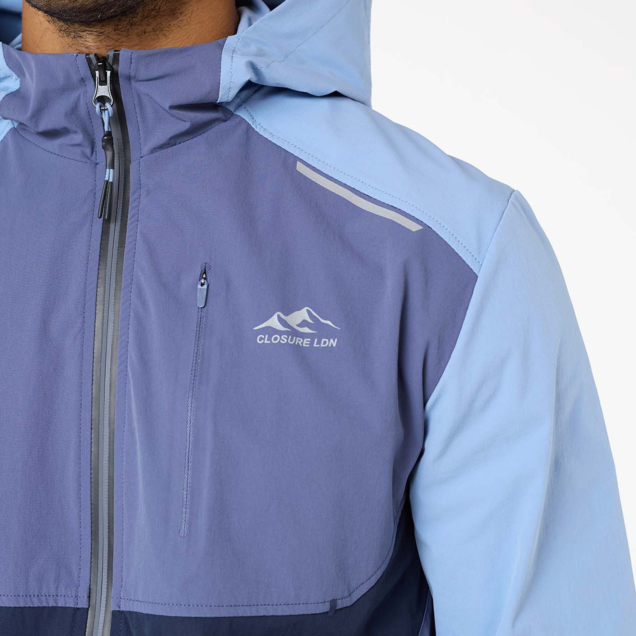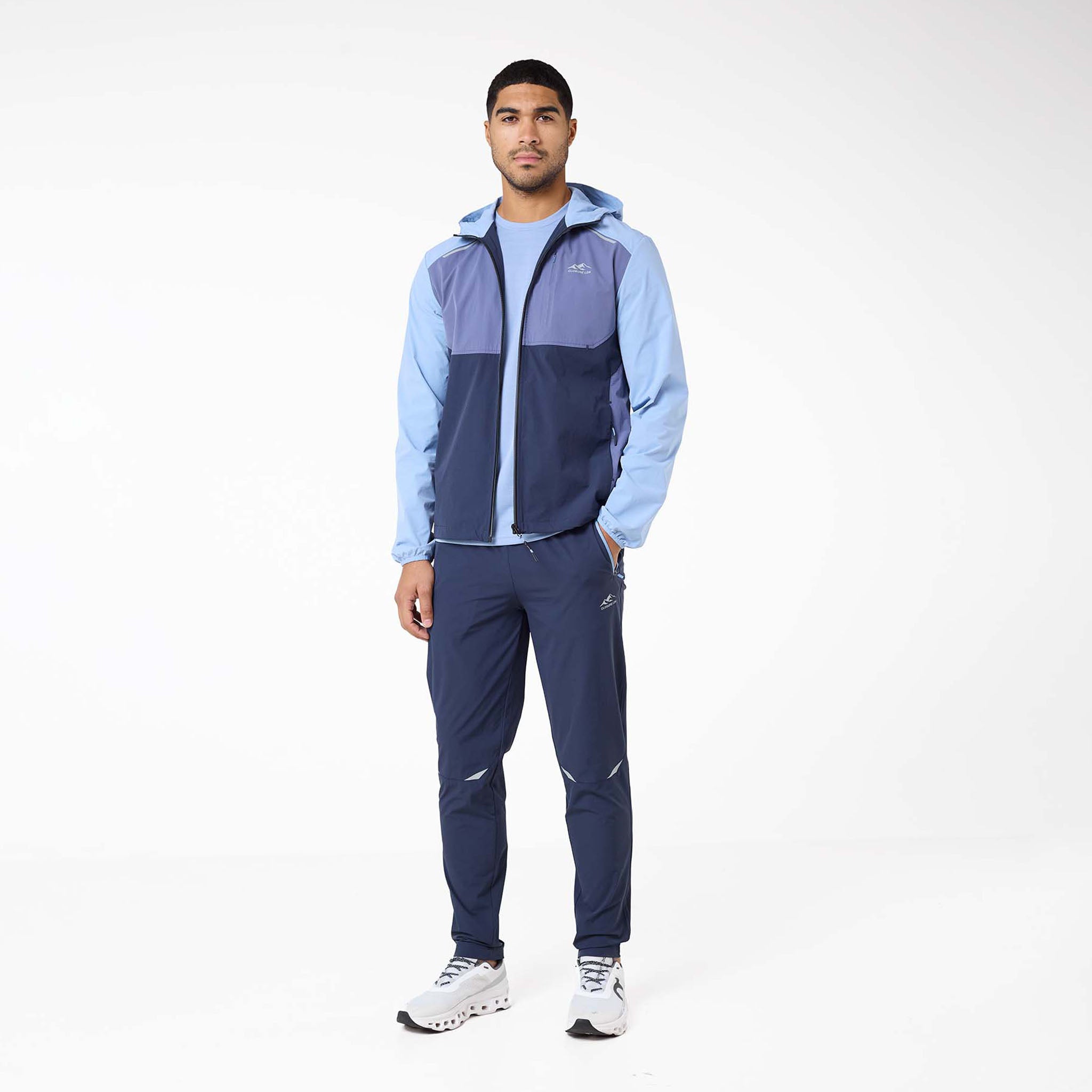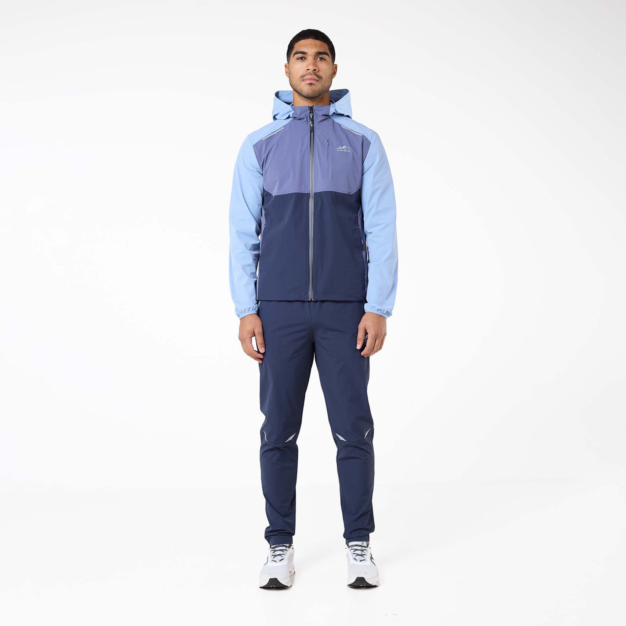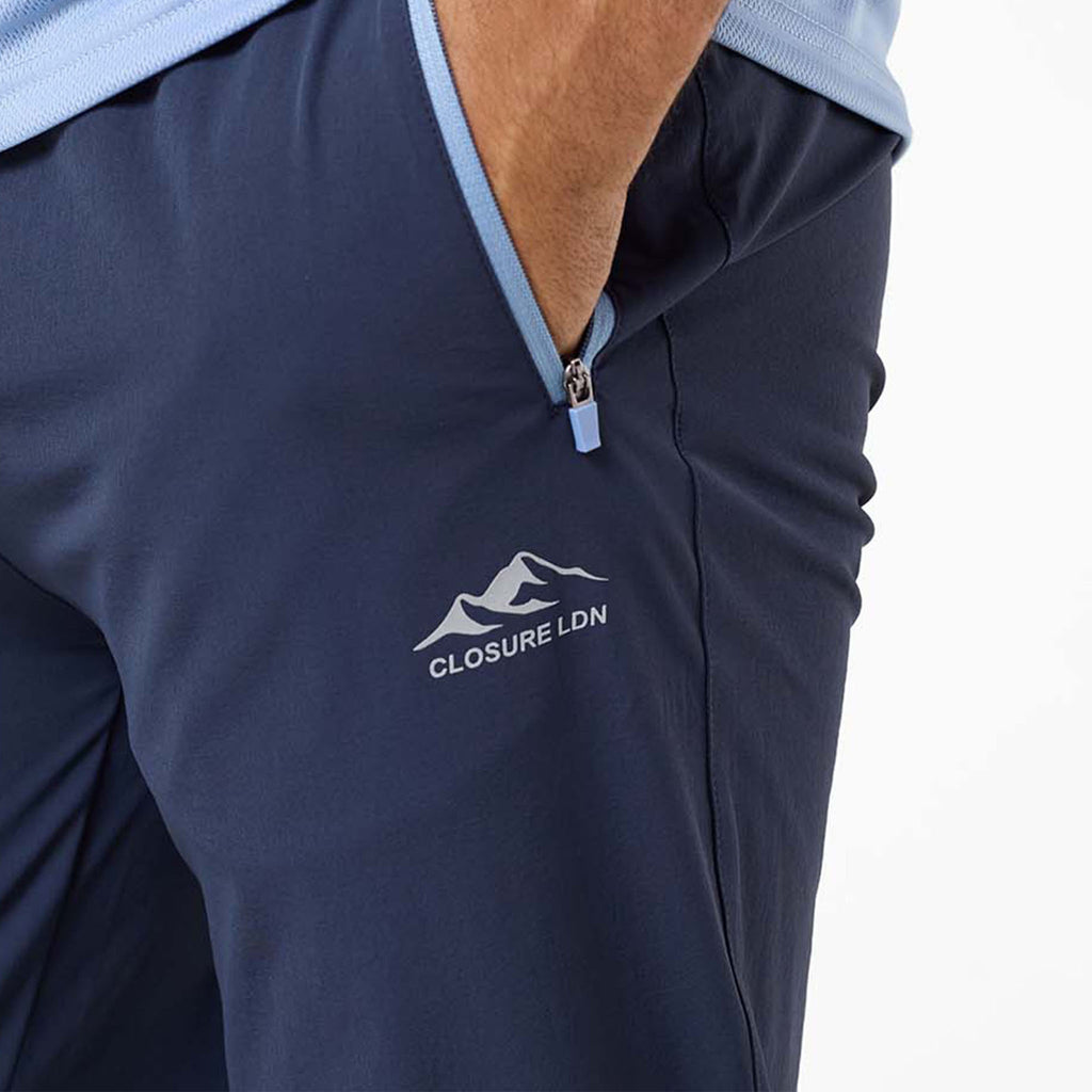 Introducing the iconic Pace Tracksuit in navy/blue, designed for both performance and modern aesthetics. The jacket features a unique cut and sew panel hood with a 3-piece construction, enhanced with reflective print detail at the seam and a prominent Closure London reflective print at the chest. Keep essentials secure in the concealed zip pocket, while elastic binding at the cuffs and transfer printed tacks ensure practicality. A rear storm flap offers added protection, and adjusters with bungee cords at the hem allow for a personalised fit. The matching trousers are designed for comfort and function, featuring drawcords with rubber ends for an adjustable waist, a secure reverse nylon coil zip pocket, a subtle Closure London transfer print logo, and a modern cut and sew panel at the front calf for both style and an enhanced fit.