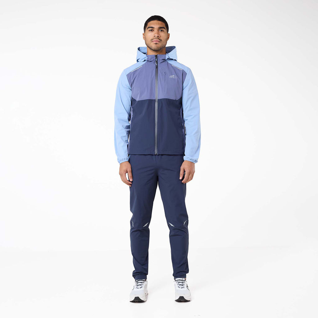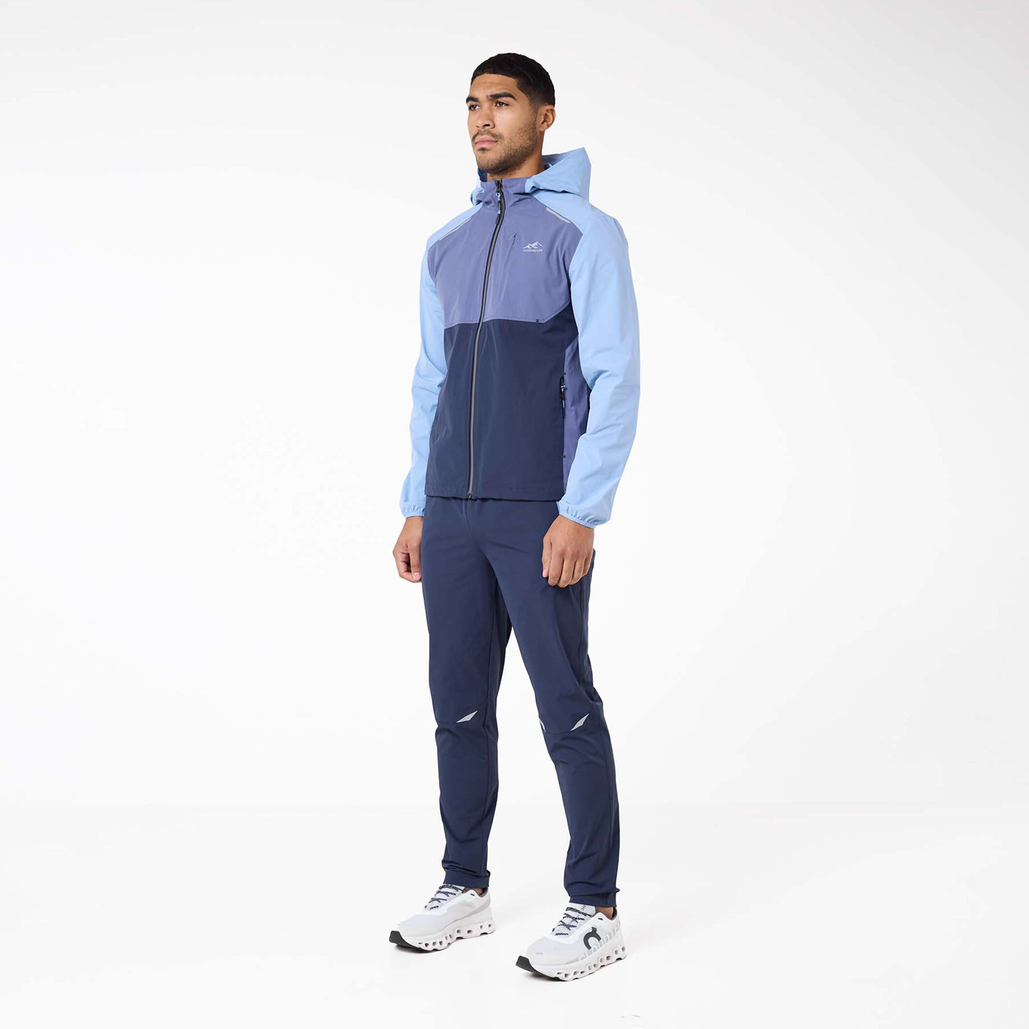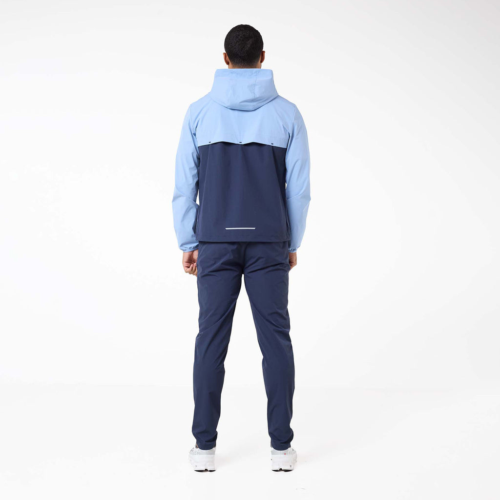 Introducing the iconic Pace Tracksuit in navy/blue, designed for both performance and modern aesthetics. The jacket features a unique cut and sew panel hood with a 3-piece construction, enhanced with reflective print detail at the seam and a prominent Closure London reflective print at the chest. Keep essentials secure in the concealed zip pocket, while elastic binding at the cuffs and transfer printed tacks ensure practicality. A rear storm flap offers added protection, and adjusters with bungee cords at the hem allow for a personalised fit. The matching trousers are designed for comfort and function, featuring drawcords with rubber ends for an adjustable waist, a secure reverse nylon coil zip pocket, a subtle Closure London transfer print logo, and a modern cut and sew panel at the front calf for both style and an enhanced fit.