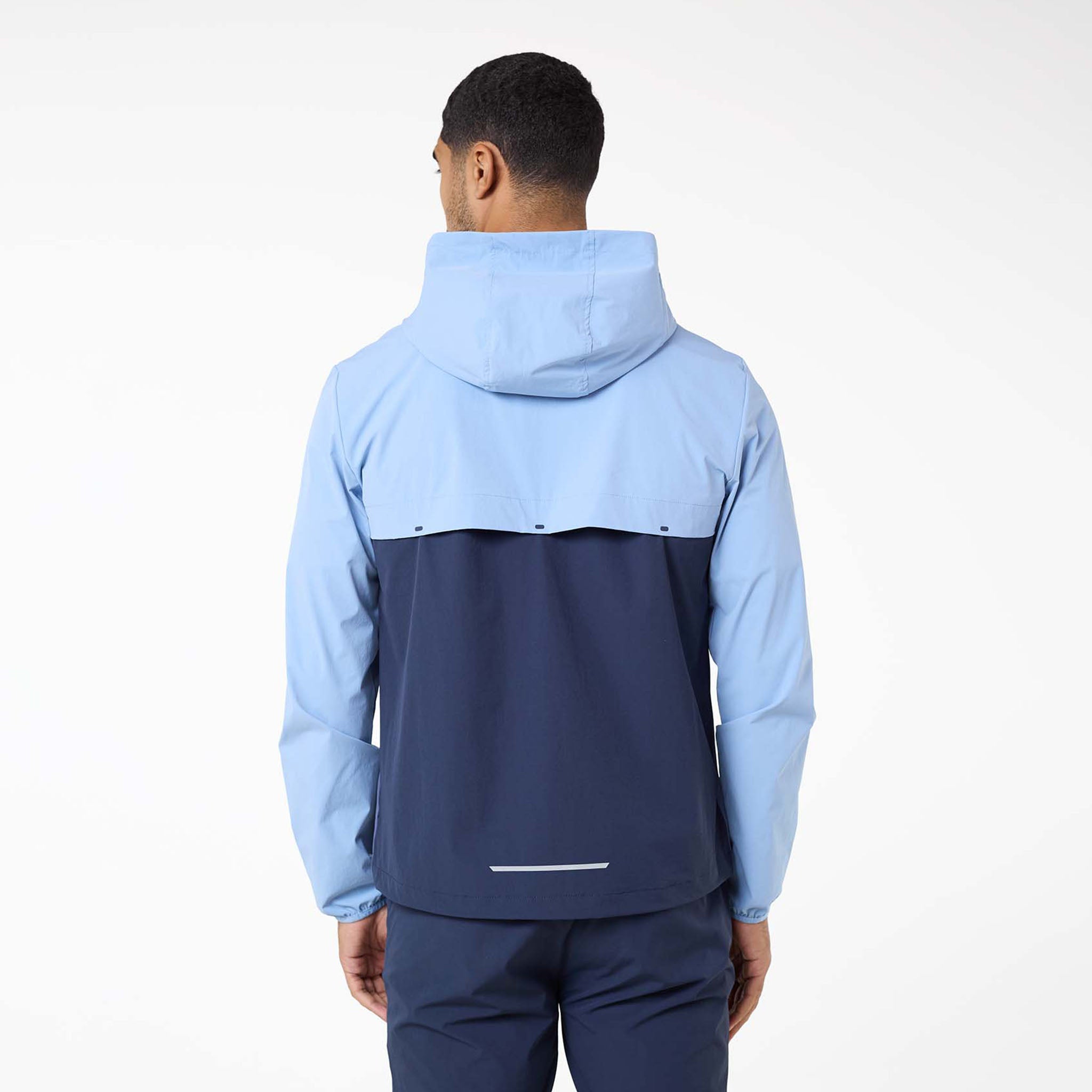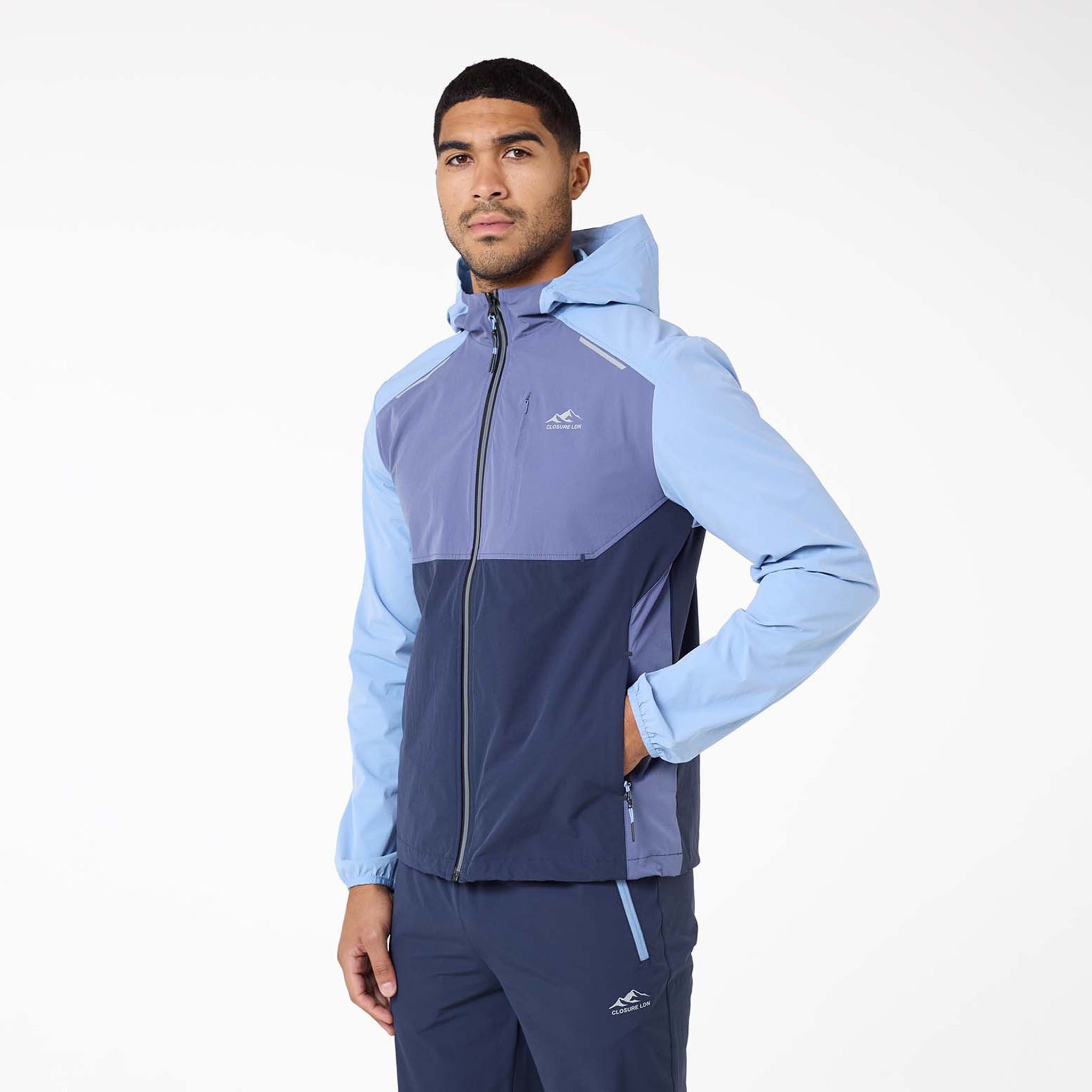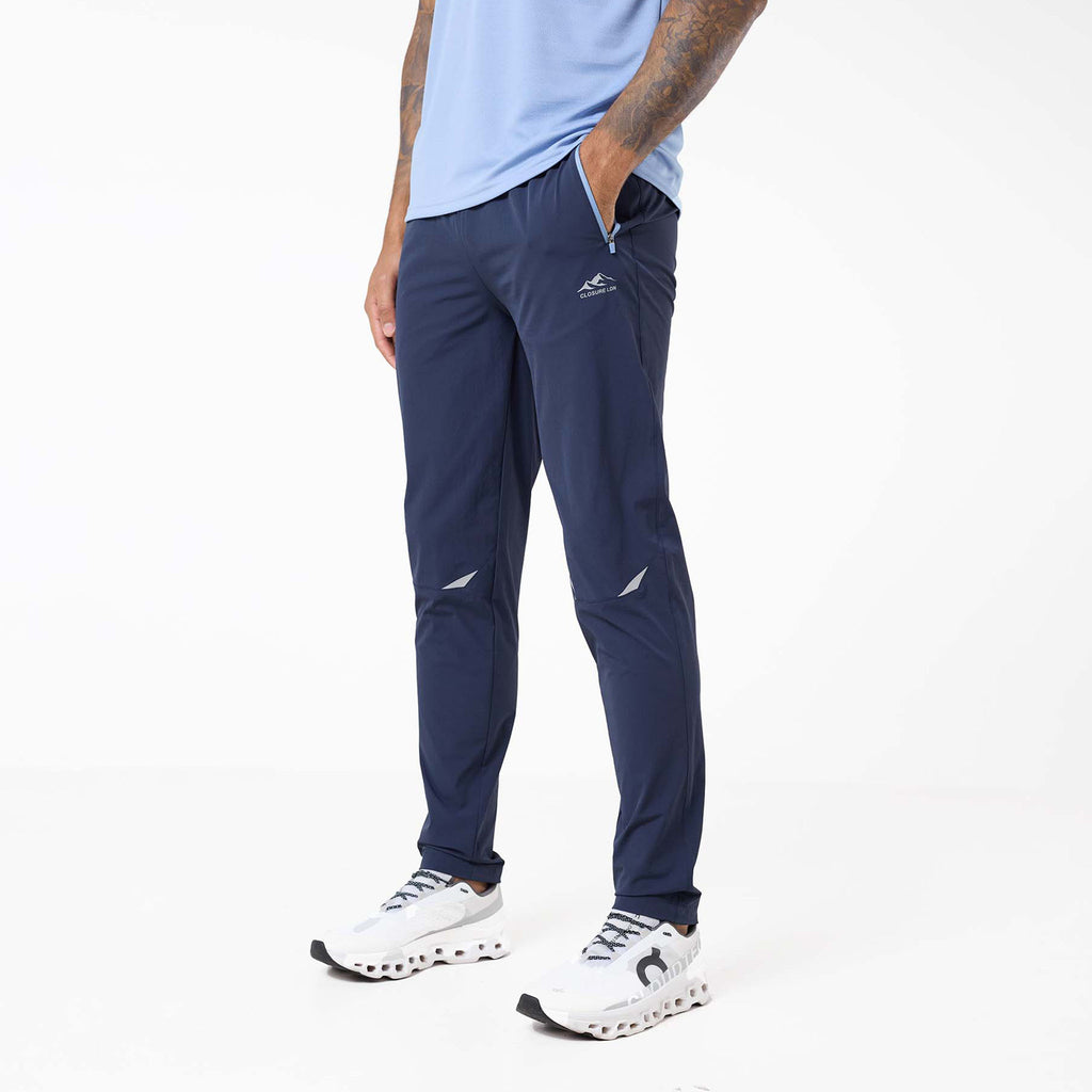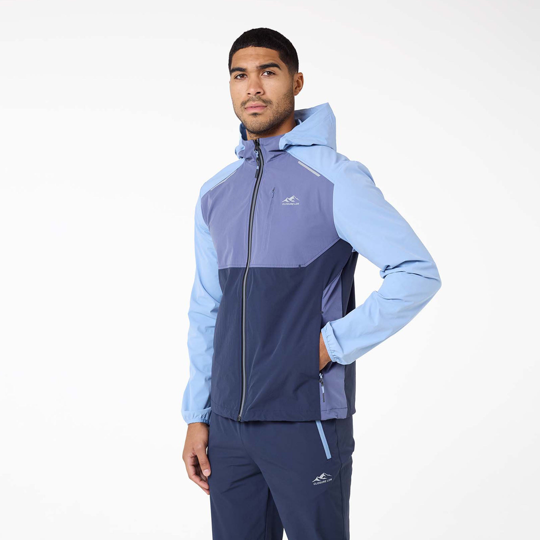 Introducing the iconic Pace Tracksuit in navy/blue, designed for both performance and modern aesthetics. The jacket features a unique cut and sew panel hood with a 3-piece construction, enhanced with reflective print detail at the seam and a prominent Closure London reflective print at the chest. Keep essentials secure in the concealed zip pocket, while elastic binding at the cuffs and transfer printed tacks ensure practicality. A rear storm flap offers added protection, and adjusters with bungee cords at the hem allow for a personalised fit. The matching trousers are designed for comfort and function, featuring drawcords with rubber ends for an adjustable waist, a secure reverse nylon coil zip pocket, a subtle Closure London transfer print logo, and a modern cut and sew panel at the front calf for both style and an enhanced fit.
