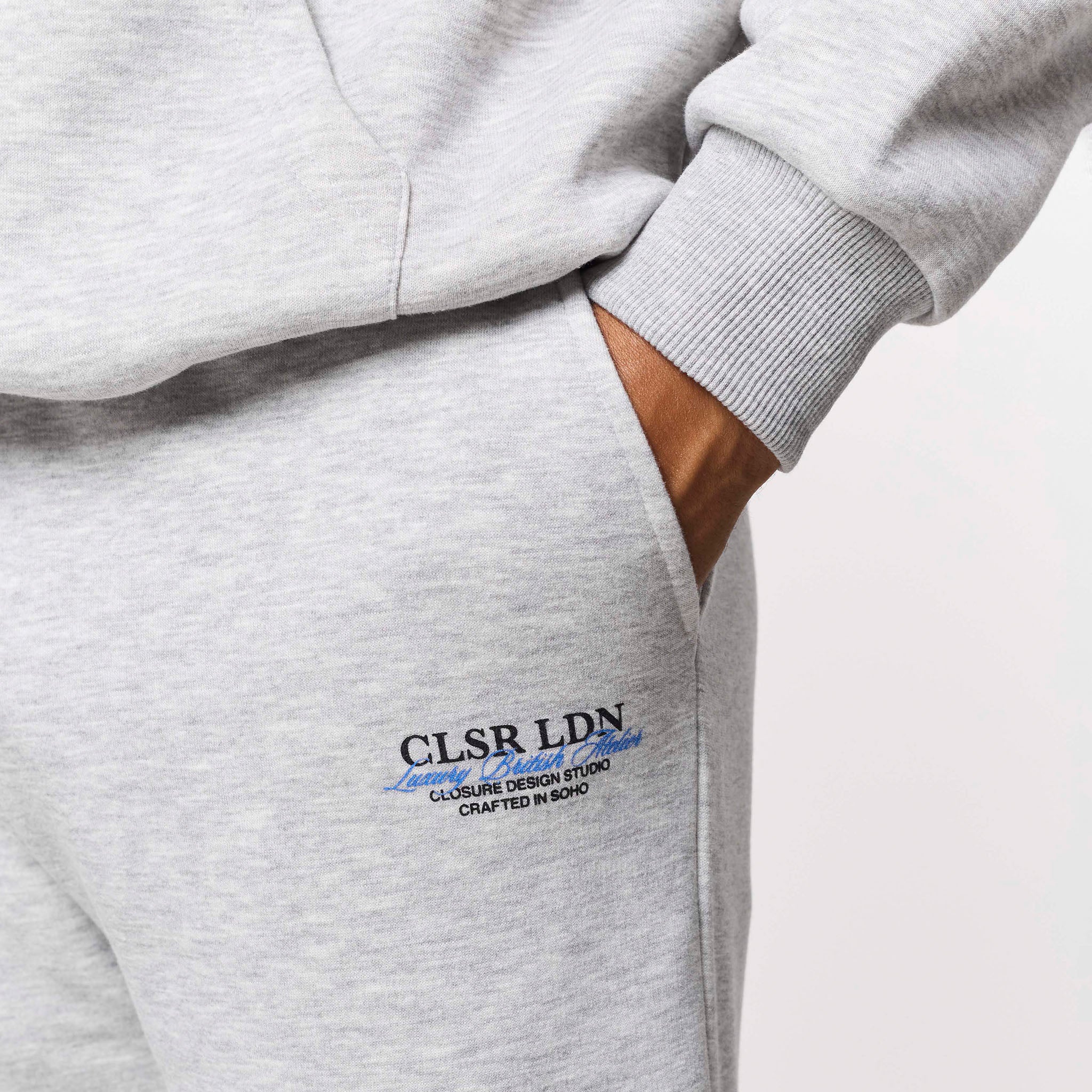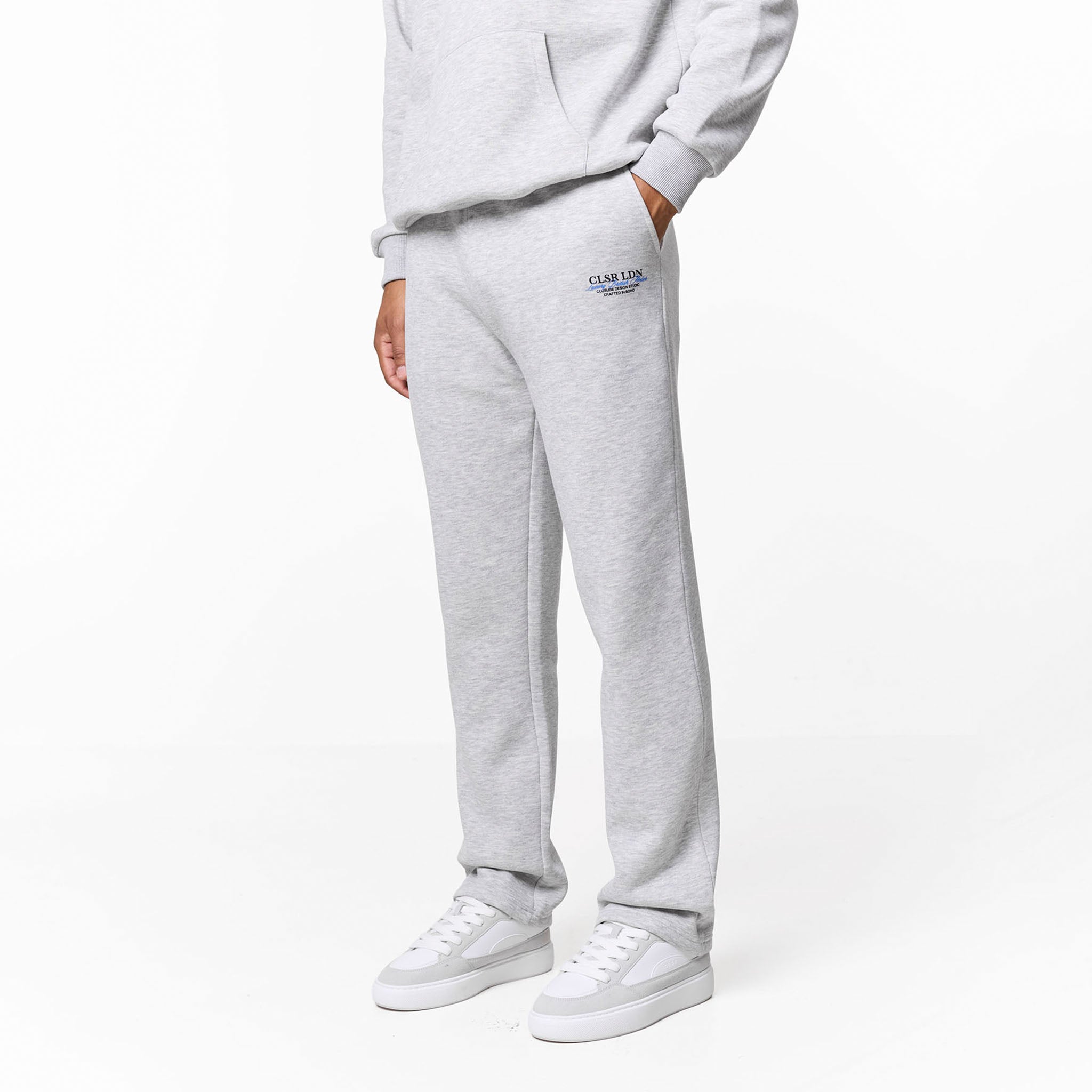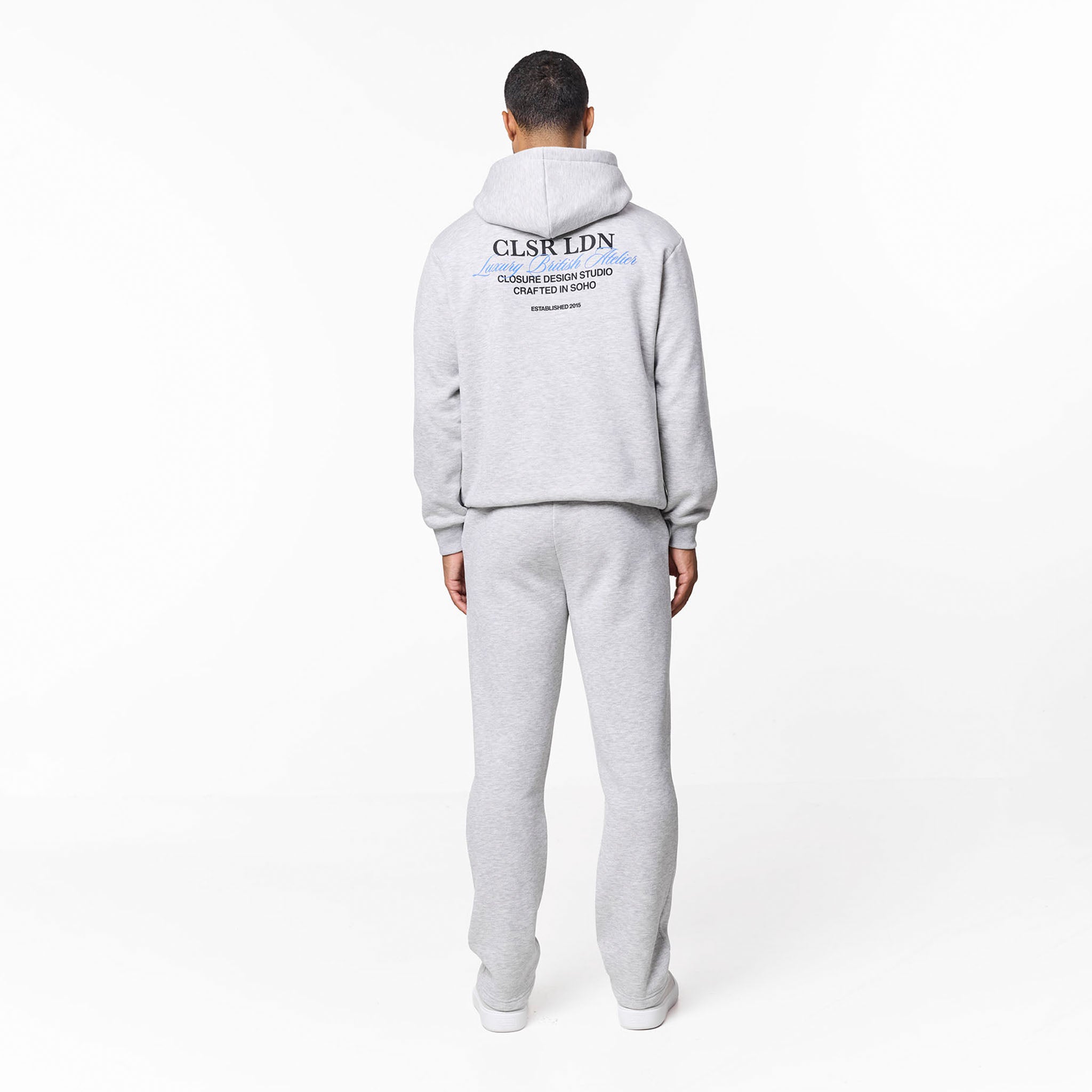 Discover ultimate comfort and style with the grey marl Premium Luxe Open Hem Tracksuit. The hoodie boasts a plush lined hood with crossover detailing, smooth necktape, snug ribbed cuffs and hem, and a roomy kangaroo pocket adds practicality. It’s subtly branded with a Closure London chest front logo and a striking Closure London rear script logo print. The coordinating joggers feature a contemporary open hem fit, an elasticated waistband with flat drawcords and self-turn ends, a signature Closure London leg logo, and convenient slanted side pockets. This set delivers a refined, relaxed look ideal for modern casual wear.