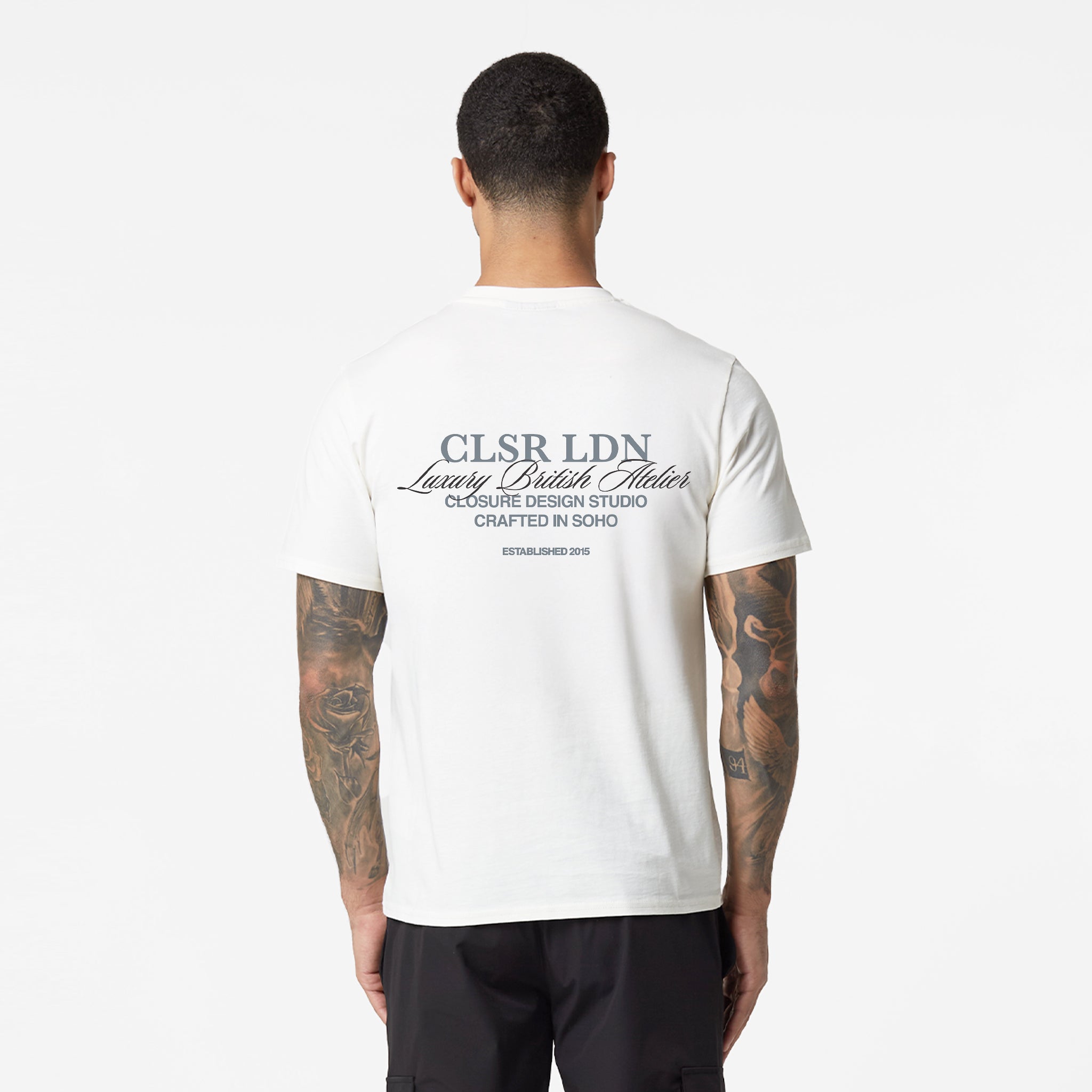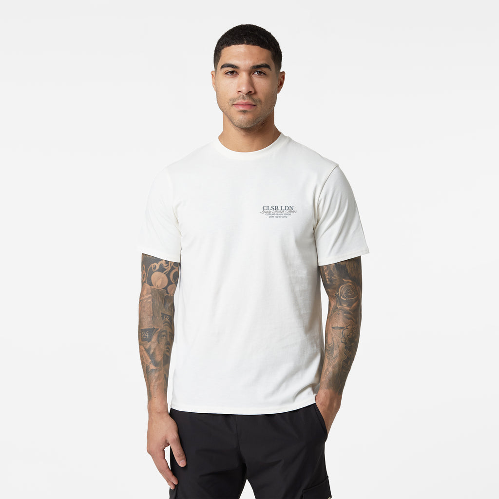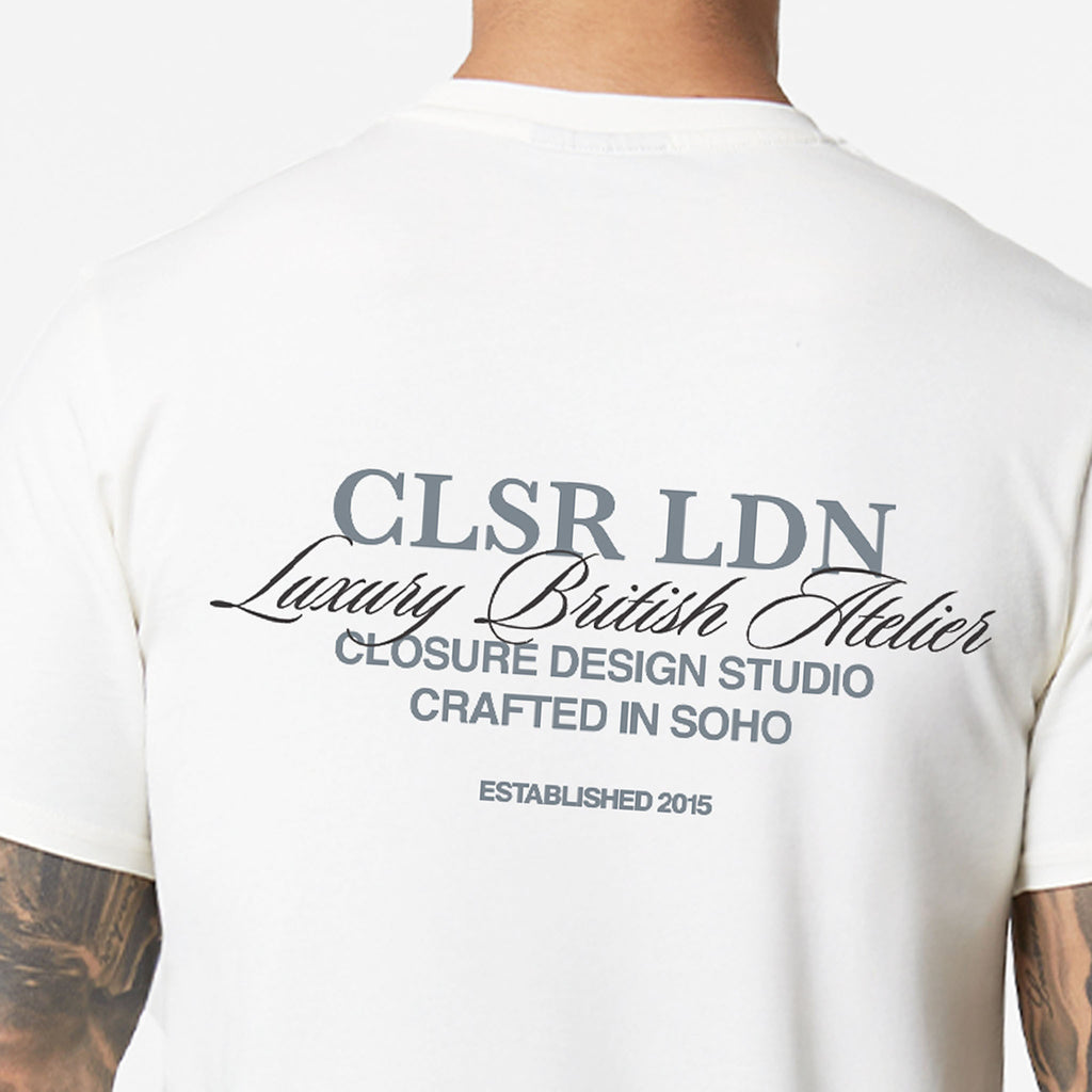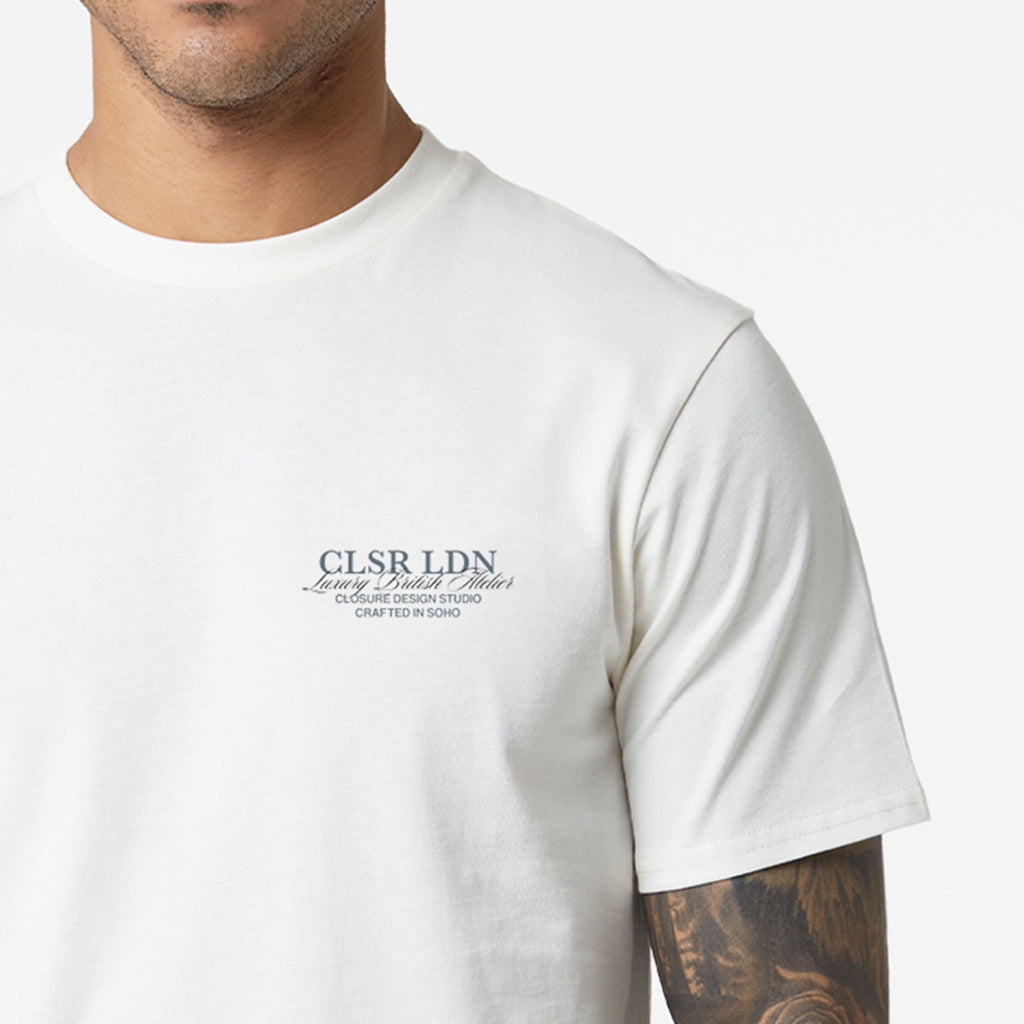 Meet your new essential: the Off White Premium Luxe Relaxed T-Shirt. This short-sleeved top offers incredible comfort and a clean look, making it a truly versatile option for any casual outfit. It features a classic crew neck and a soft self-fabric neck trim. A classic Closure front chest print makes an instant impact, perfectly balanced by a commanding Closure rear script detail print. With its clean self-turn cuffs and hem, this tee effortlessly combines premium quality with everyday functionality.