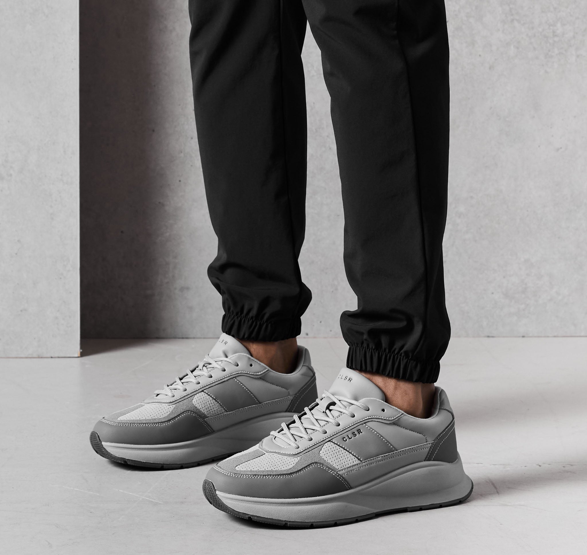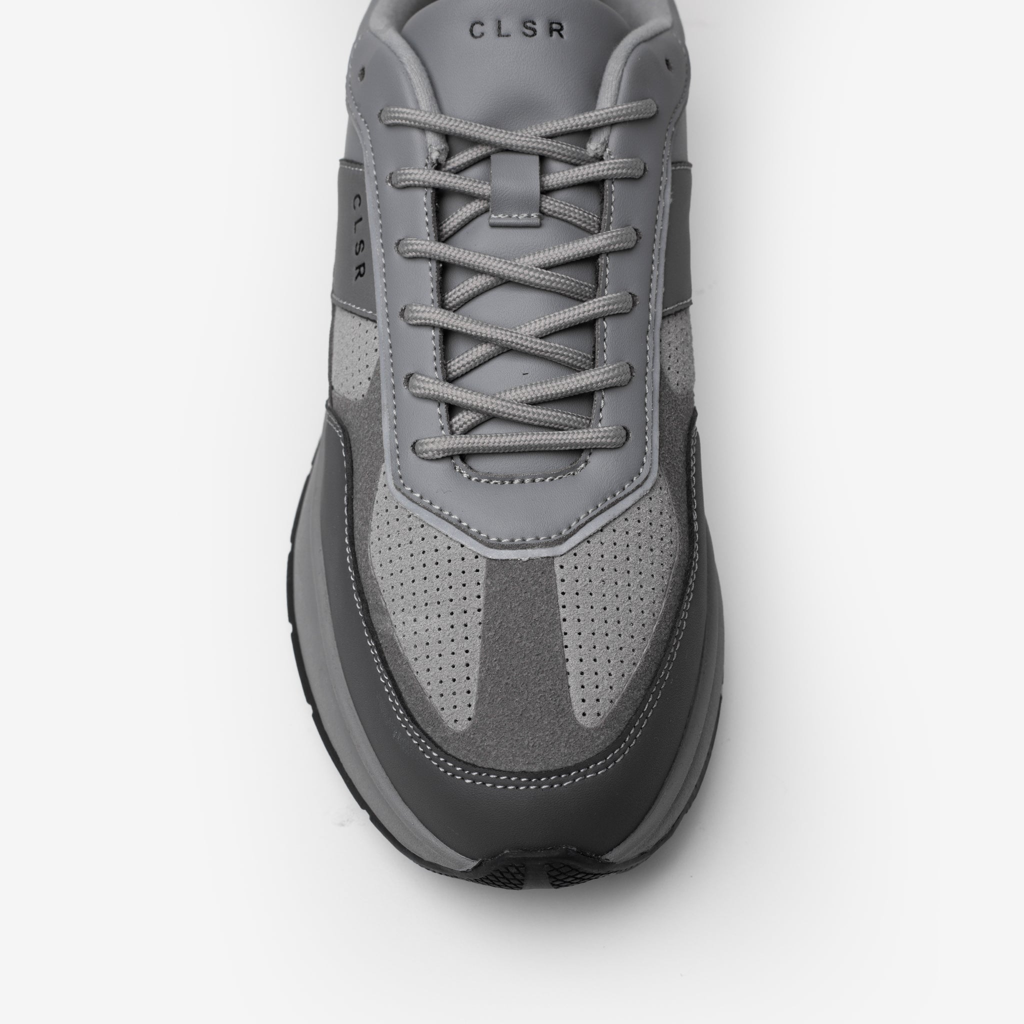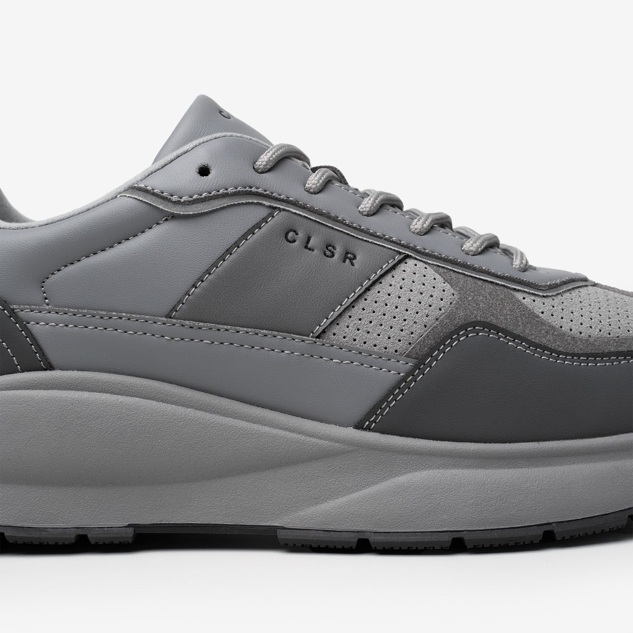 Discover the Premium Runner in grey, where timeless aesthetics meet cutting-edge design for your daily life. Engineered with advanced technical construction and premium materials, this unique trainer delivers unparalleled comfort. Details like perforated suede, technical CLSR tongue taping, and a debossed signature Closure logo set it apart. Finished with Closure LDN insole branding and a custom premium rubber sole, it's the ultimate blend of form and function. Dress it up with cargo pants or keep it casual with a fleece tracksuit ; the Premium Runner adapts to your every move, offering a sporty yet sophisticated edge.