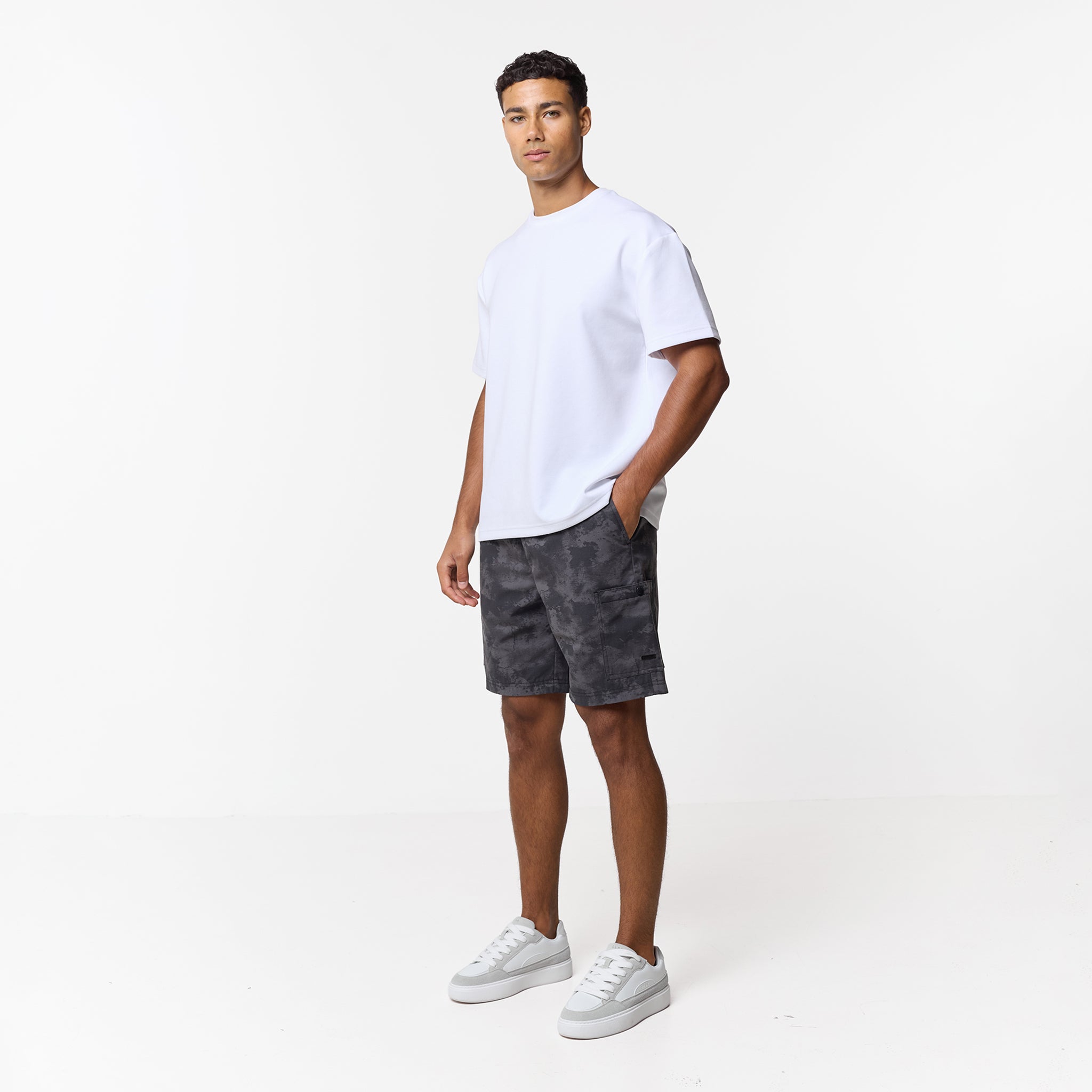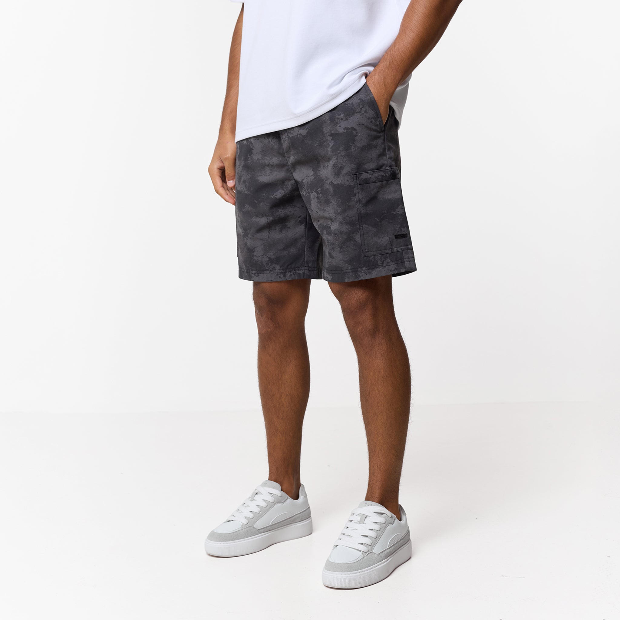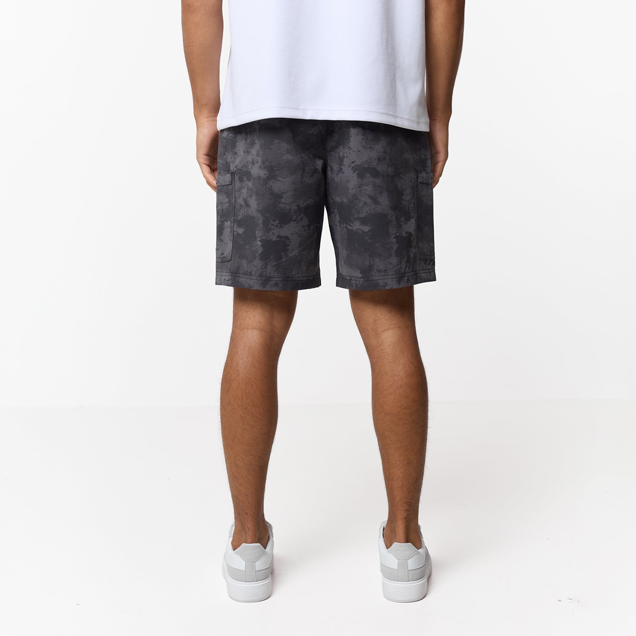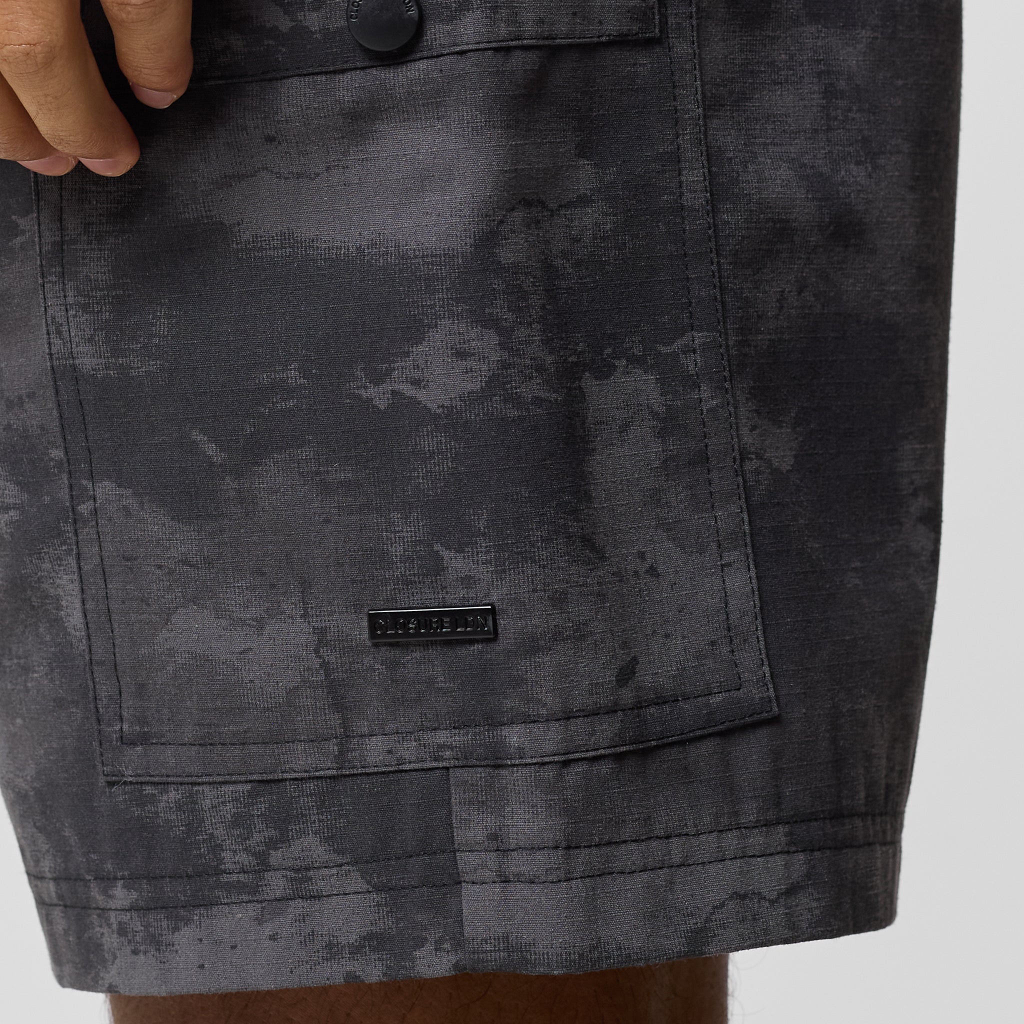 Introducing the Ripstop Camo Cargo Short in black, ideal for those who demand both durability and style. This tactical style features an elasticated waistband with a hidden internal drawcord and reinforced eyelets, detailed with single-needle stitching for a low-profile, comfortable fit. Incorporating classic slanted hip pockets alongside spacious thigh cargo pockets featuring secure nylon coil zips. Expertly finished with a self-turn hem and the iconic Closure London metal badge, these shorts are built to withstand the elements without compromising on design. For a high-impact outfit, pair this bold dark camo pattern with a classic core tee or a tonal overshirt for the ultimate street-ready aesthetic.