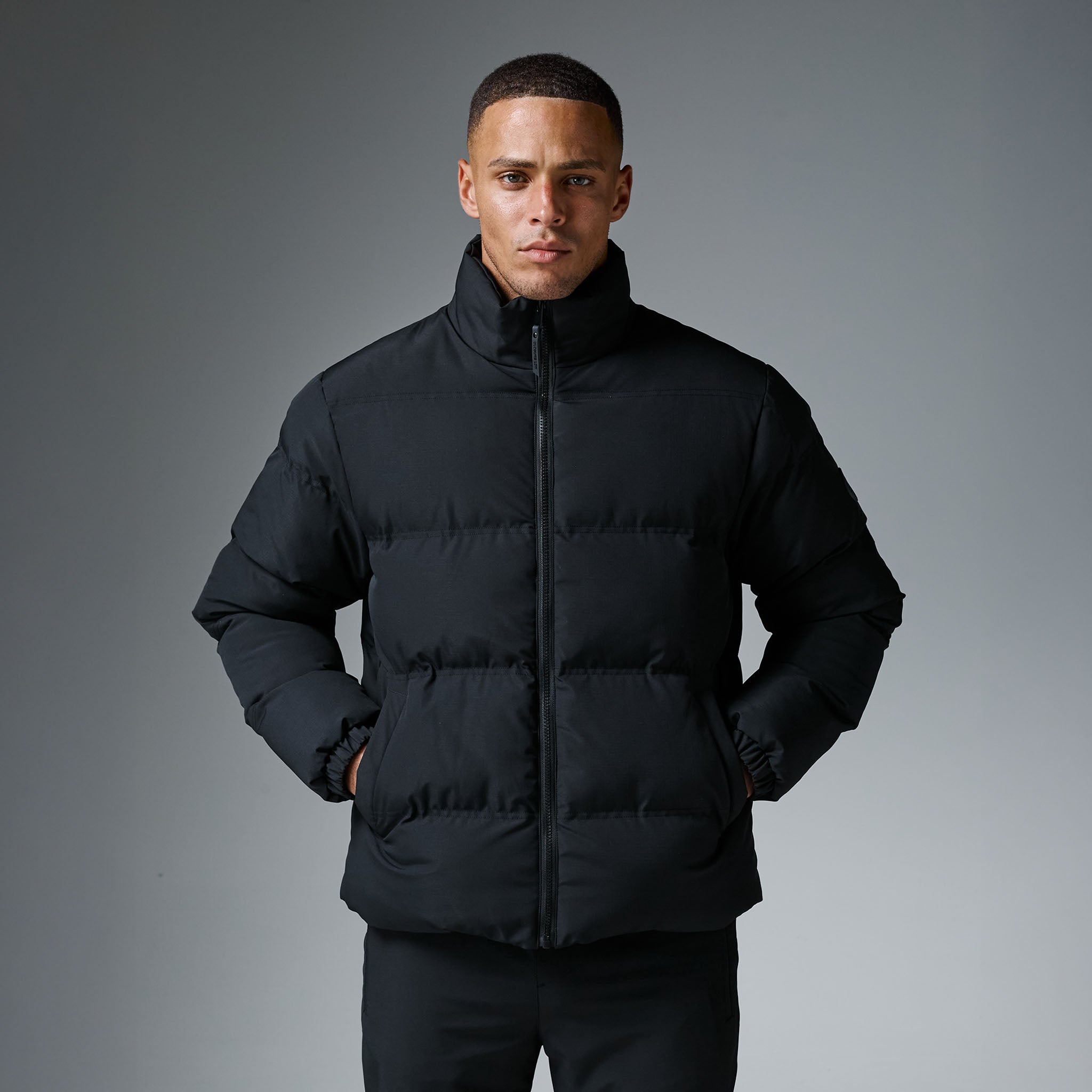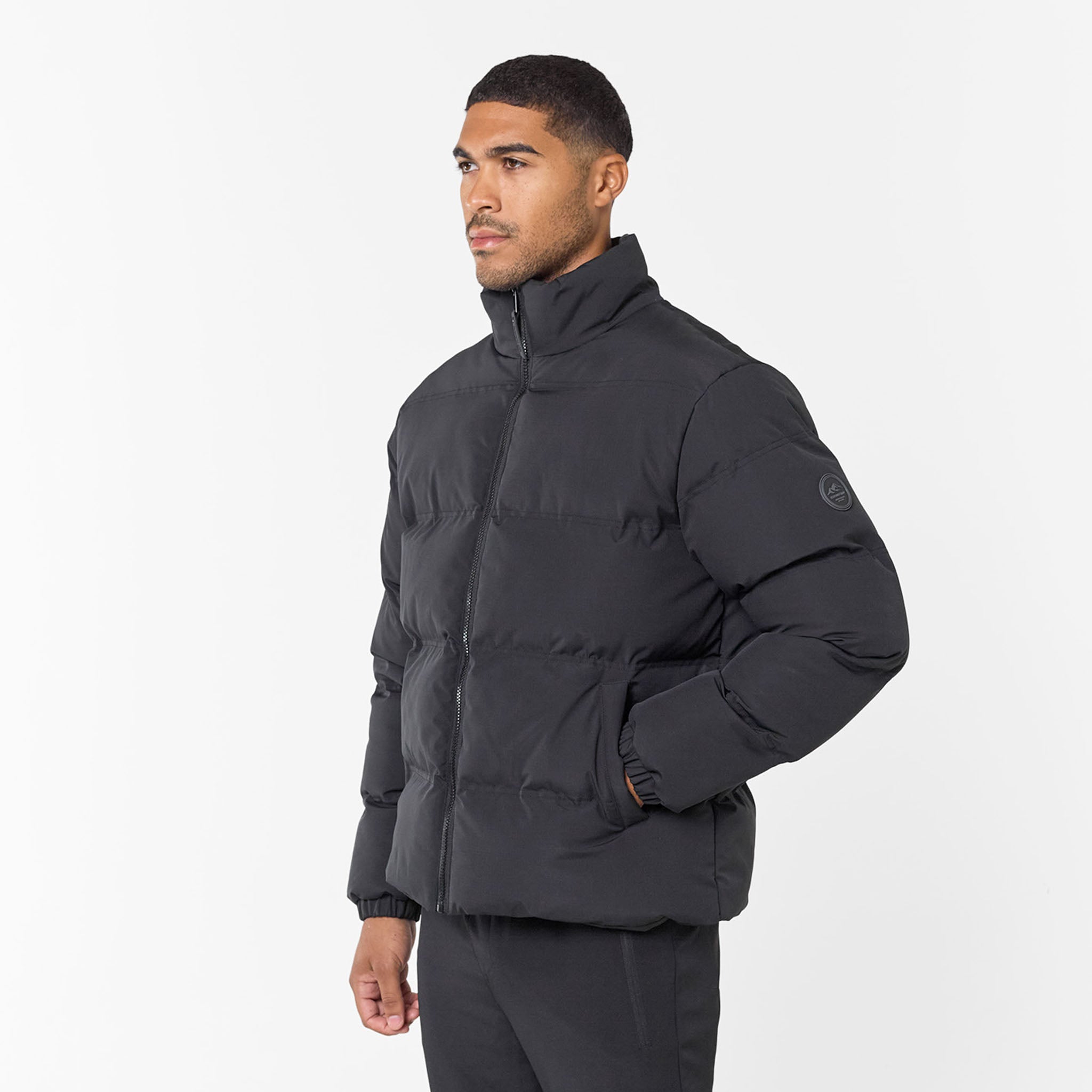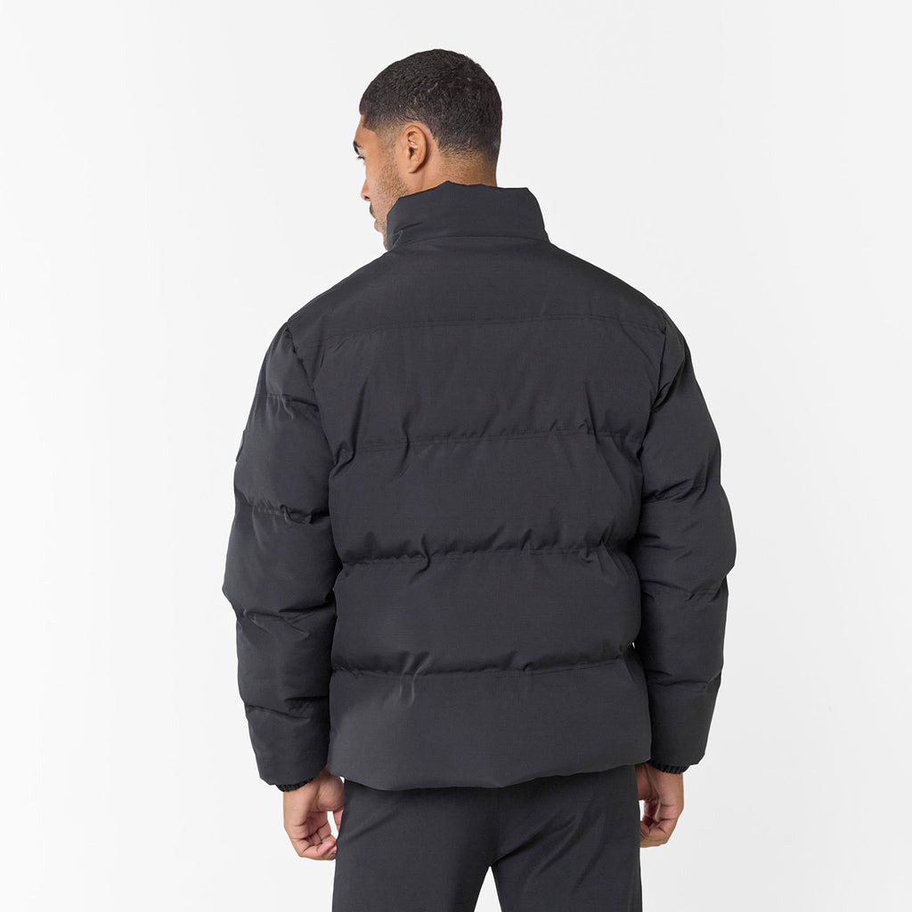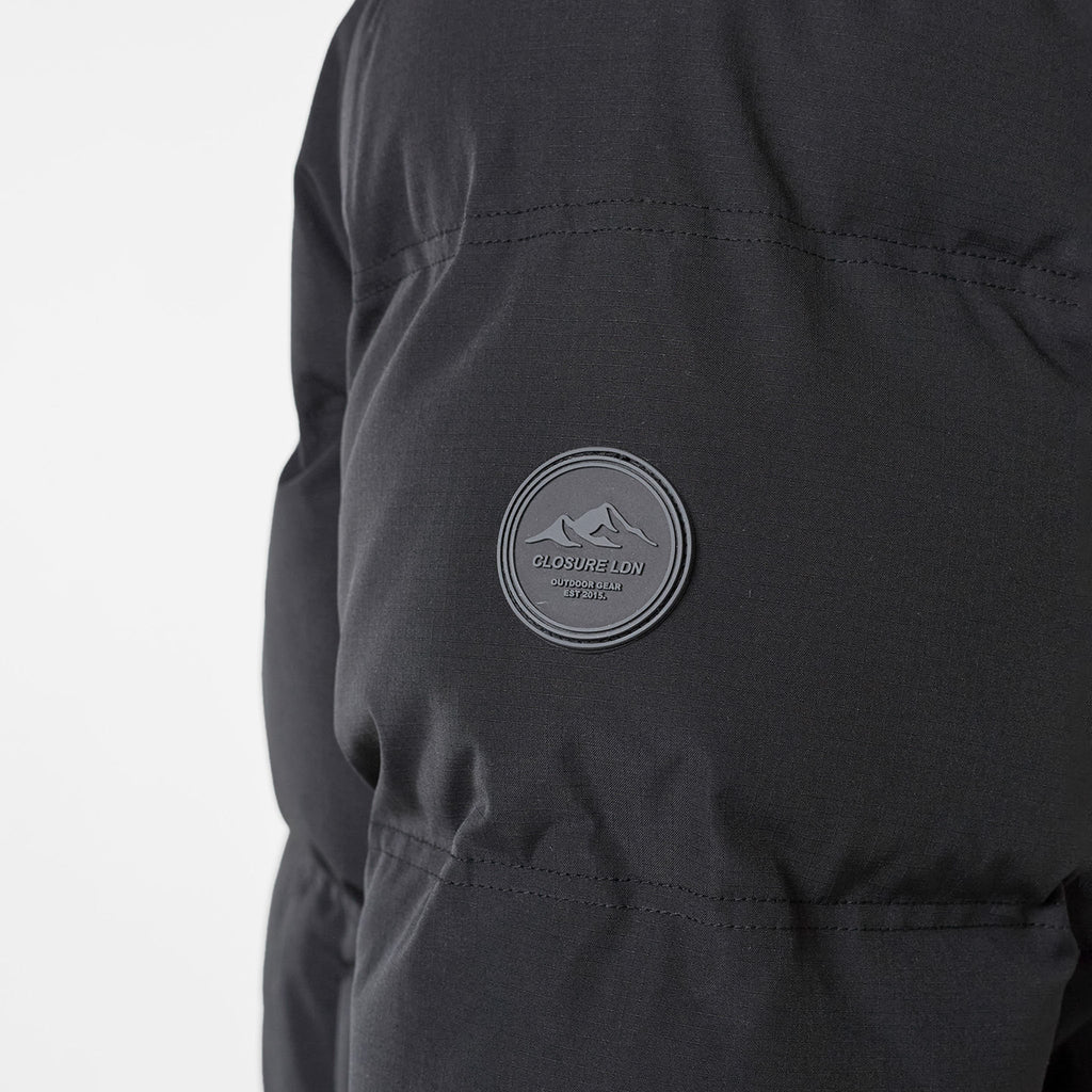 Brave the elements in our men's Ripstop Funnel Puffer Jacket in Black. This parka combines robust design with essential warmth, featuring a stylish quilted design throughout. Featuring practical details for your comfort and convenience: a Closure embossed logo zip puller on a durable chunky plastic zip ensures easy fastening. Designed with a distinctive Closure branded rubber badge on the sleeve, adding a touch of signature style. The self-fabric elasticated cuffs and bungee cord with adjuster at the hem work to seal in warmth, while welt pockets with branded press studs provide secure storage for your essentials.