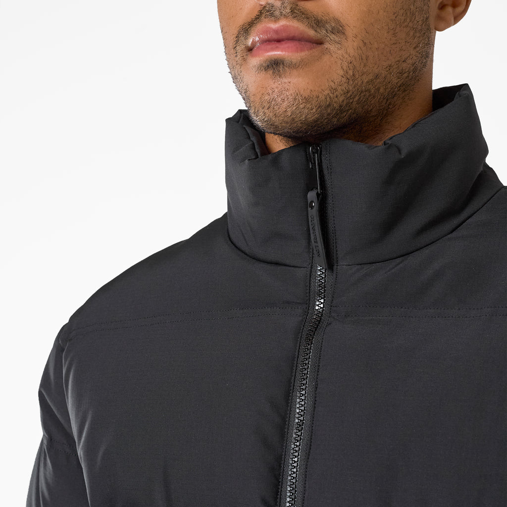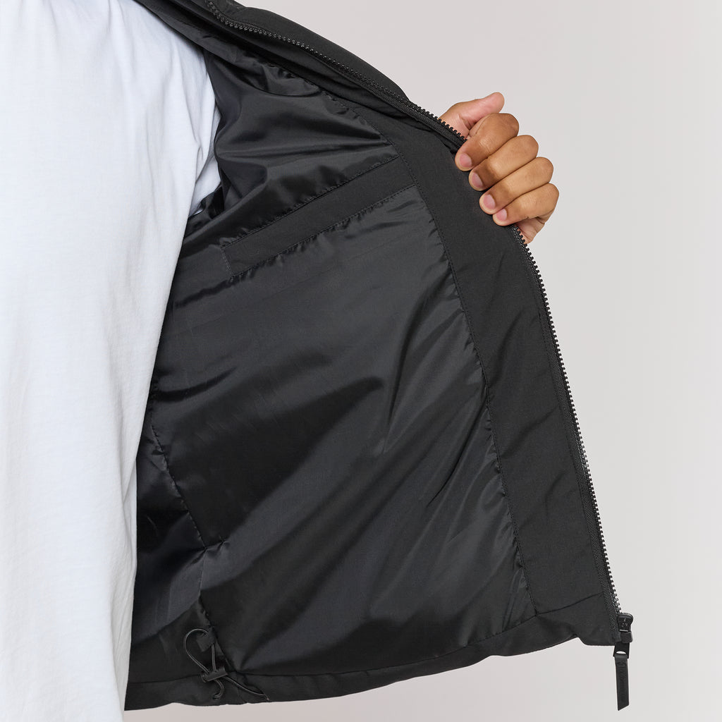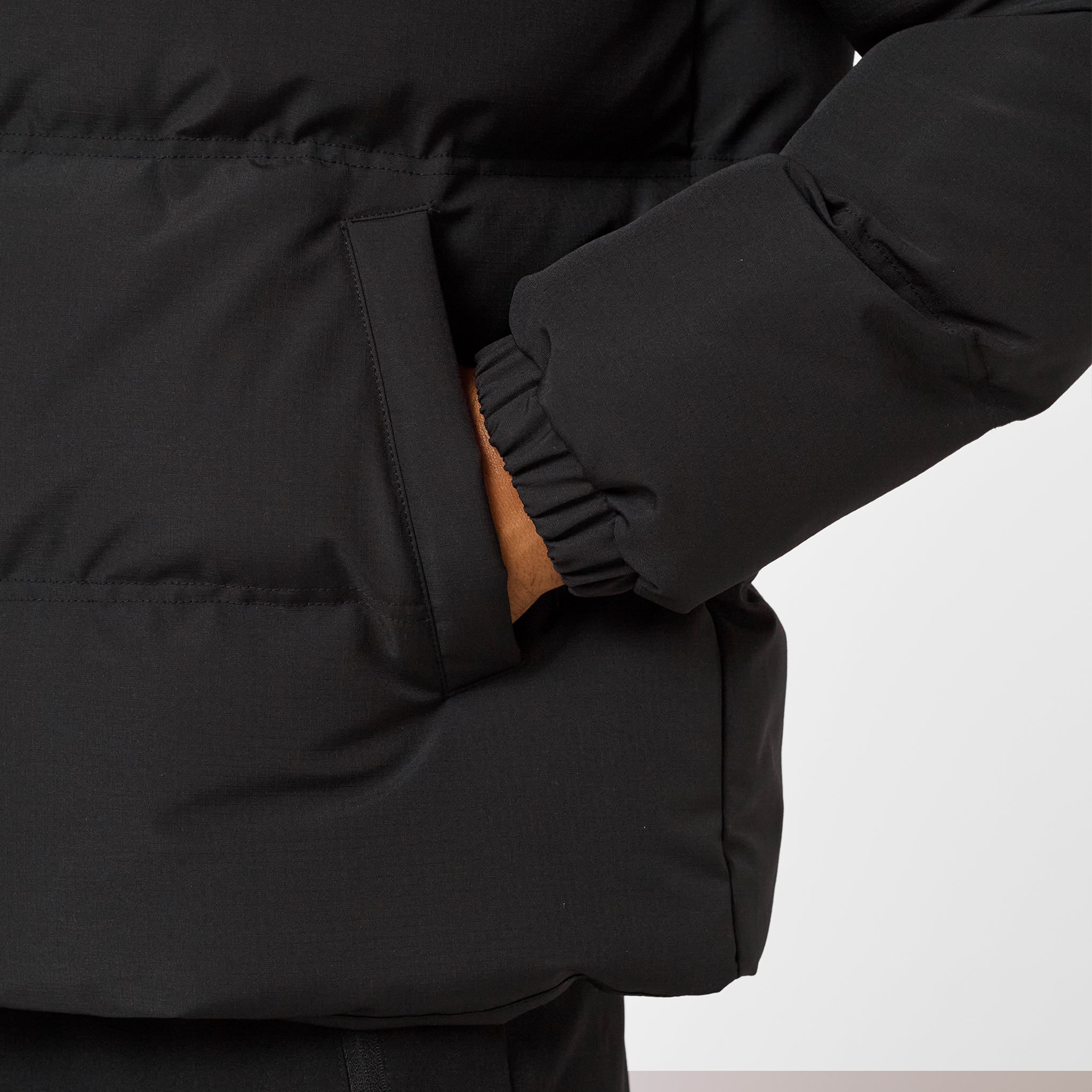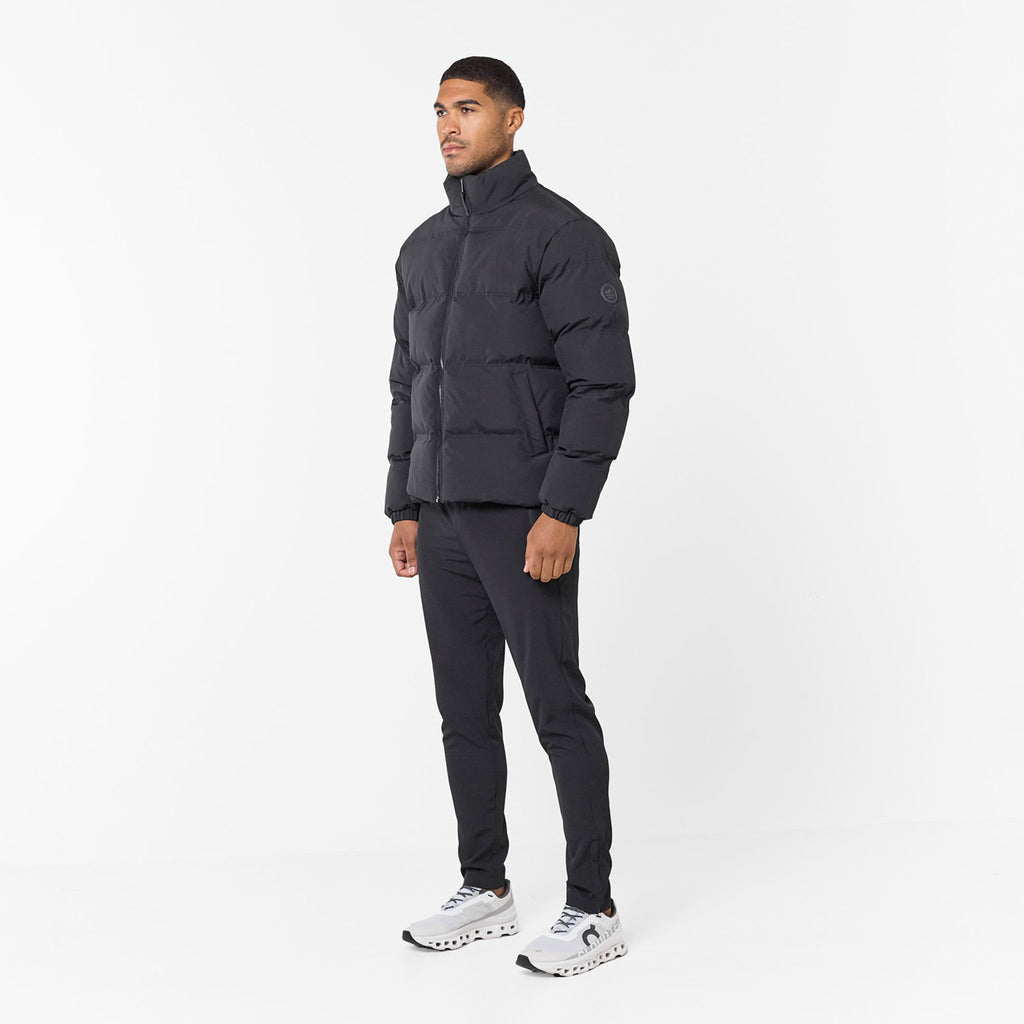 Brave the elements in our men's Ripstop Funnel Puffer Jacket in Black. This parka combines robust design with essential warmth, featuring a stylish quilted design throughout. Featuring practical details for your comfort and convenience: a Closure embossed logo zip puller on a durable chunky plastic zip ensures easy fastening. Designed with a distinctive Closure branded rubber badge on the sleeve, adding a touch of signature style. The self-fabric elasticated cuffs and bungee cord with adjuster at the hem work to seal in warmth, while welt pockets with branded press studs provide secure storage for your essentials.
