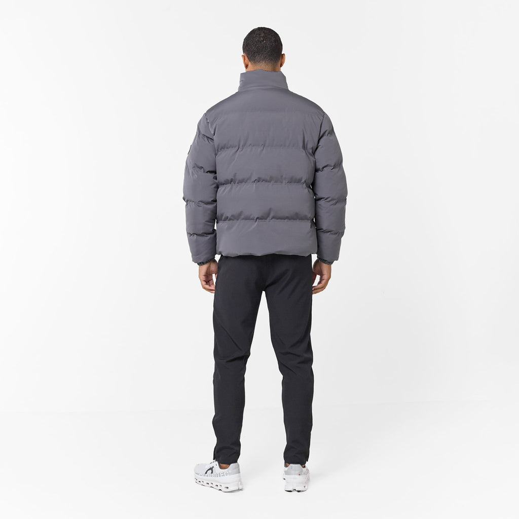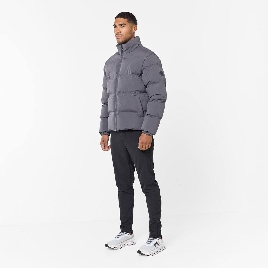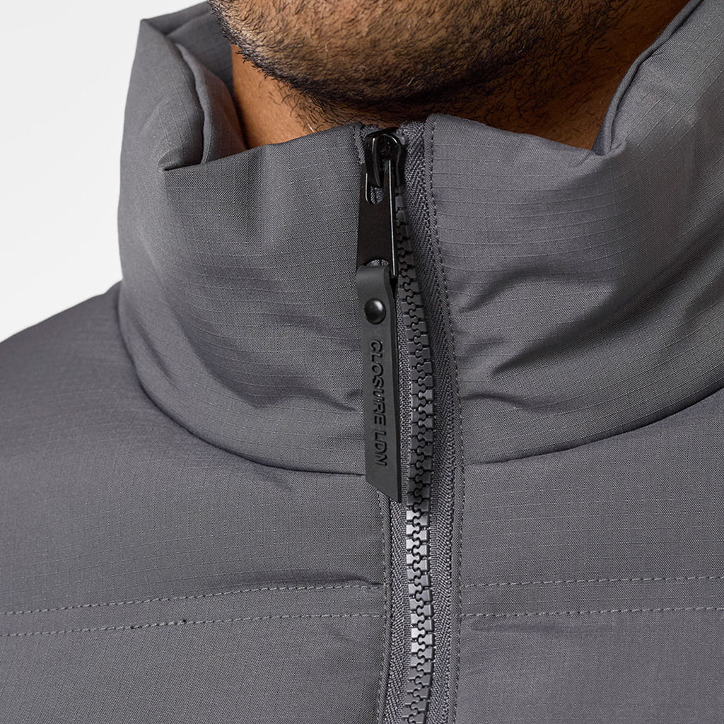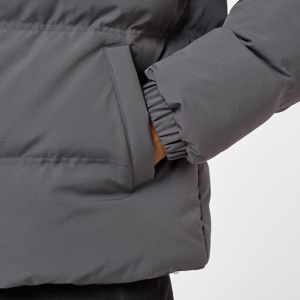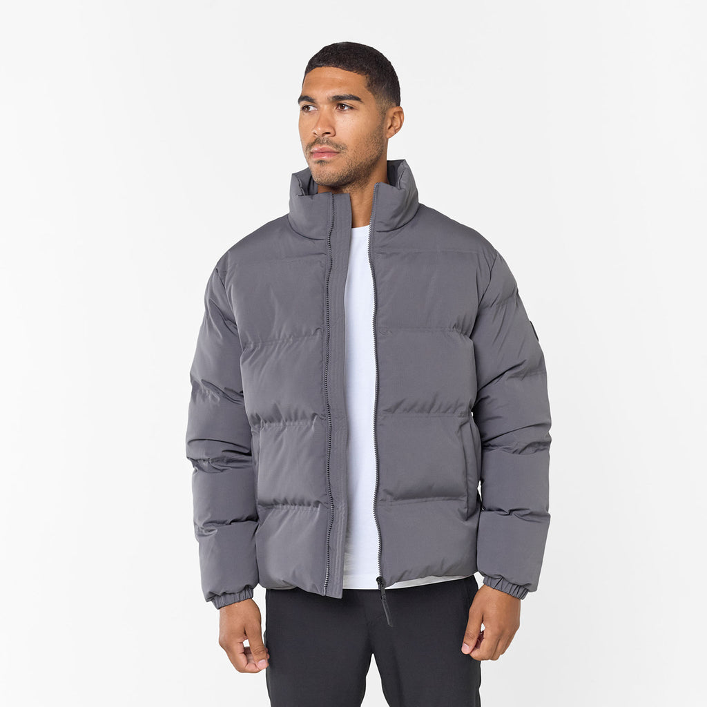 Discover the new season Ripstop Funnel Puffer in Charcoal. This parka combines robust design with essential warmth, featuring a stylish quilted design throughout. Featuring practical details for your comfort and convenience: a Closure embossed logo zip puller on a durable plastic zip ensures easy fastening. You'll find a distinctive Closure branded rubber badge on the sleeve, adding a touch of signature style. The self-fabric elasticated cuffs and bungee cord with adjuster at the hem work to seal in warmth, while welt pockets with branded press studs provide secure storage for your essentials.
