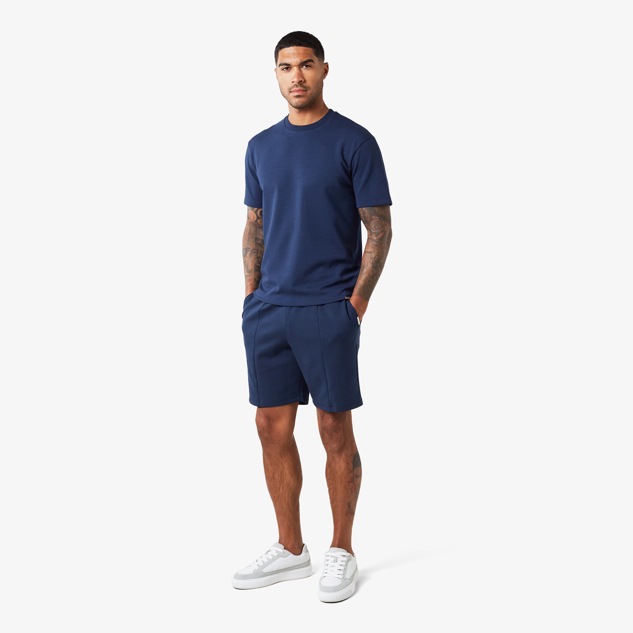 Elevate your style with the  Smart Scuba Shorts in Navy,  a must-have for any on-trend individual. Crafted from premium scuba fabric, this style offers optimum comfort without sacrificing on style.  Whether you're pairing them with a casual tee for a relaxed look or the matching button-down shirt for a more refined ensemble, these versatile shorts will elevate your casual wardrobe.