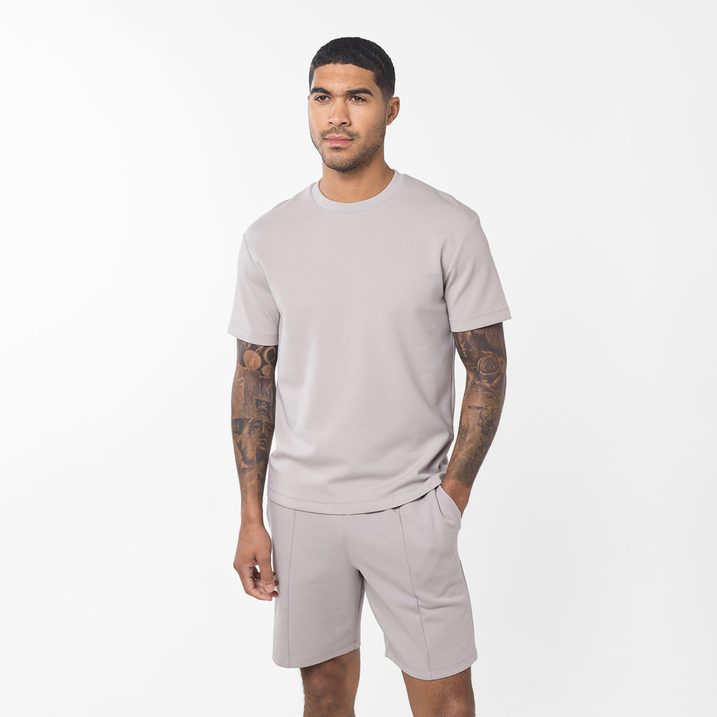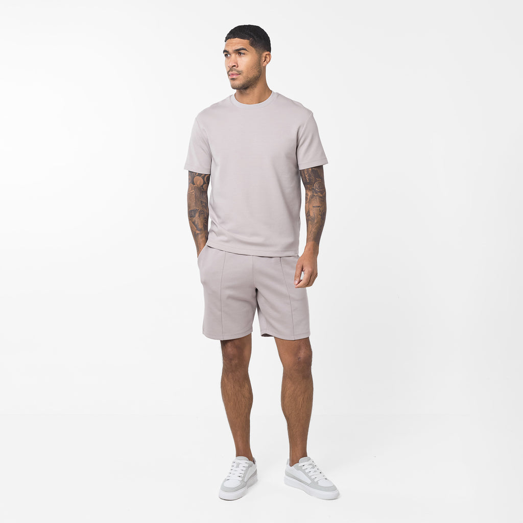 Introducing the Smart Scuba Shorts in Stone,  a must-have for any on-trend individual. Crafted from premium scuba fabric, this style offers optimum comfort without sacrificing on style.  Whether you're pairing them with a casual tee for a relaxed look or the matching button-down shirt for a more refined ensemble, these versatile shorts will elevate your casual wardrobe.