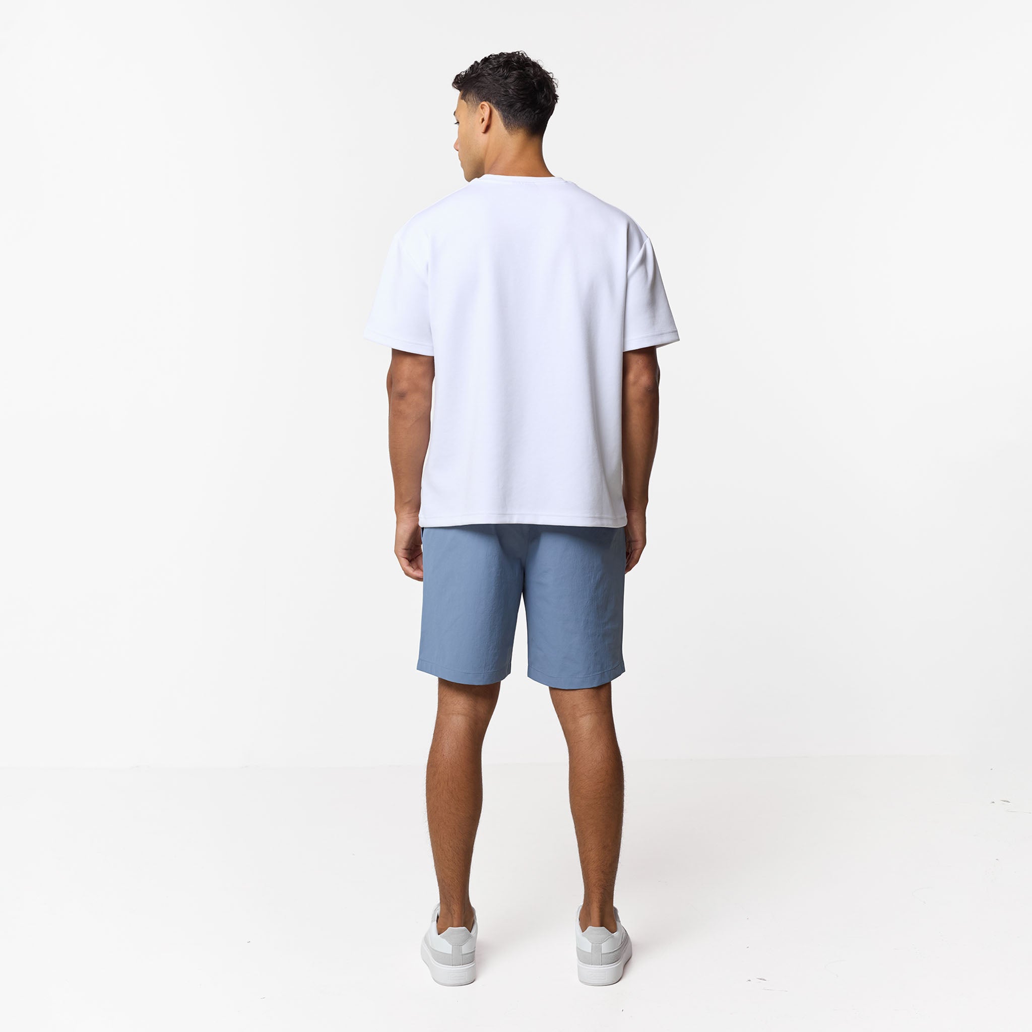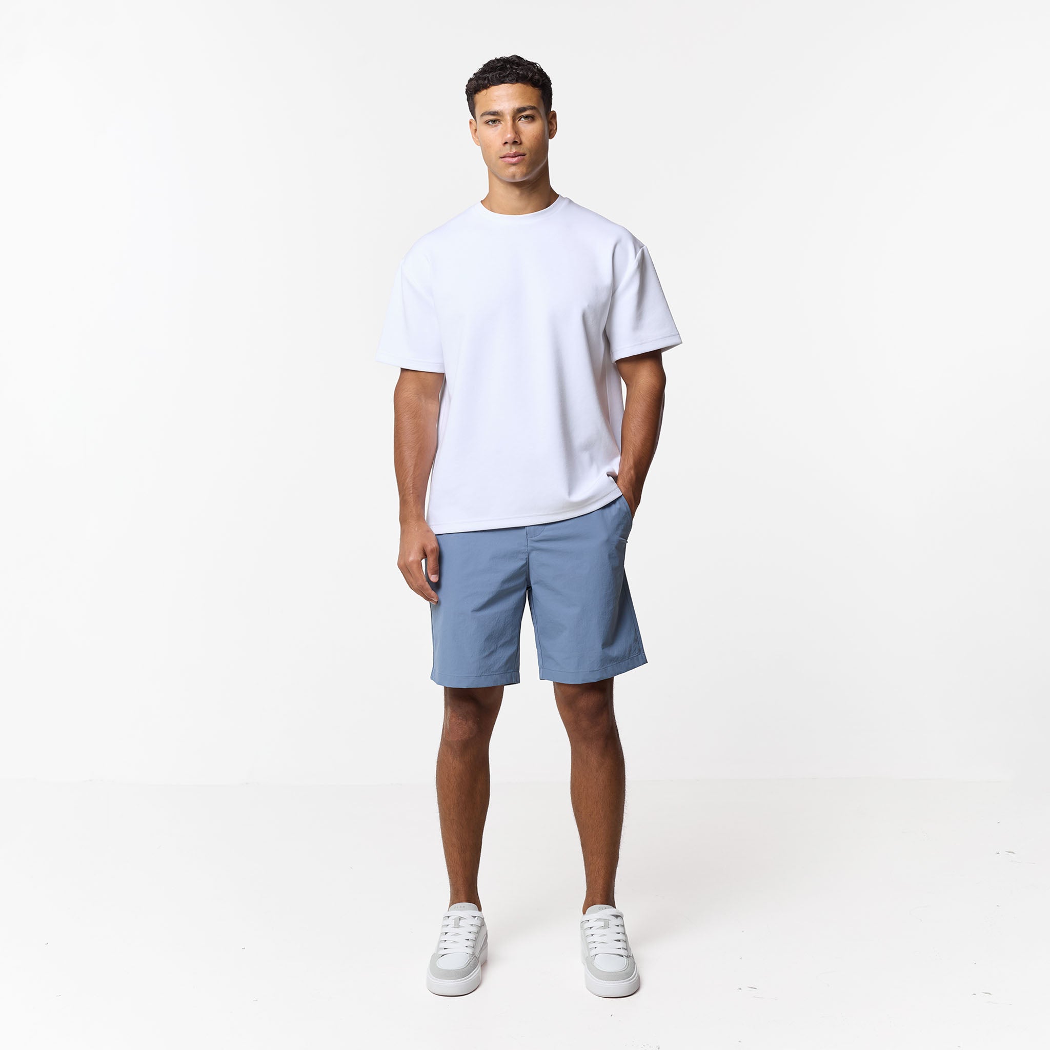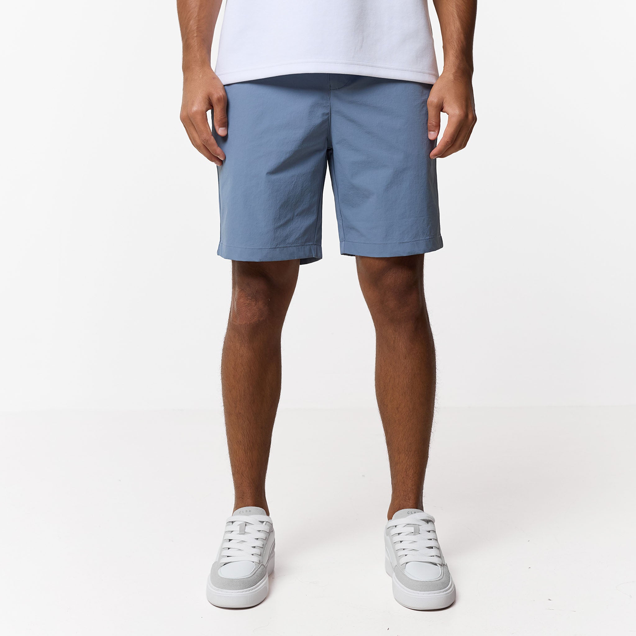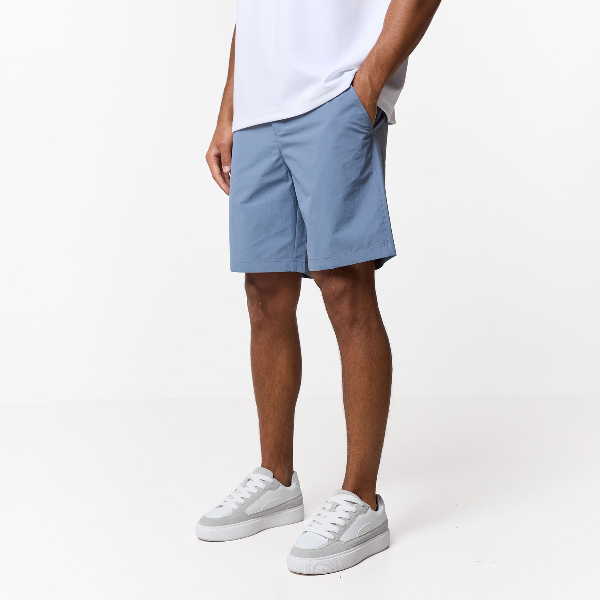 Achieve an effortless tailored silhouette with the Smart Tech Shorts in Steel Blue, built for those who demand both style and practical movement. The waistband is engineered for versatility, utilising elasticated side panels and internal flat drawcords alongside traditional belt loops for a personalised, secure fit. Every detail serves a purpose, from the reliable press stud and zip fly closure to the streamlined rear welt pocket and deep slanted side entries. A hidden autolock zip pocket offers a protected space for essentials, while the tonal stitching and signature Closure London metal hardware provide a sophisticated finish.