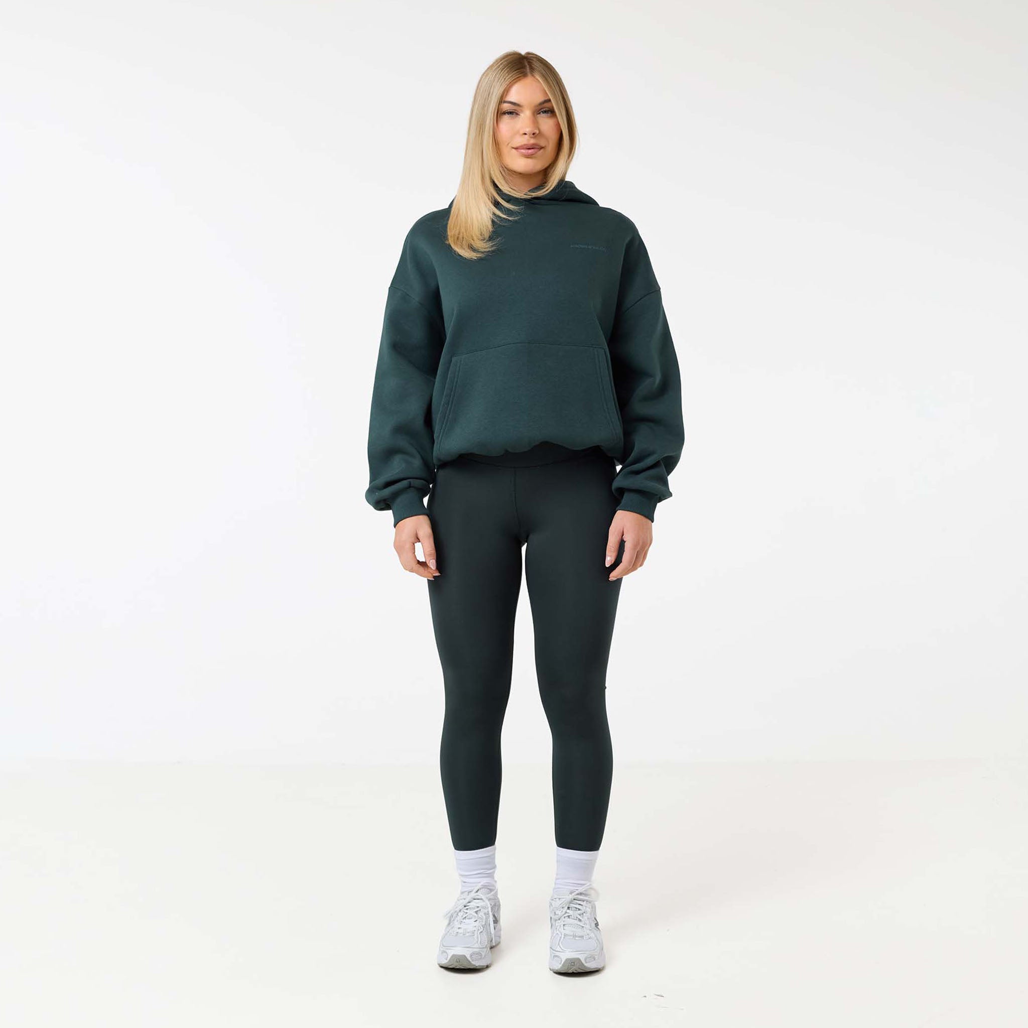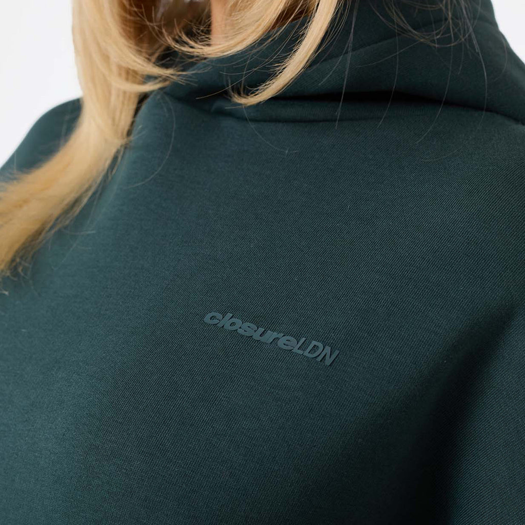 Discover the Tonal Core Logo Hoodie in a deep pine green, the essential hoodie to add to your rotation. This hoodie is designed for a perfect blend of comfort and style, featuring a relaxed fit and a cosy fleece lining. The crossover hood creates a sleek silhouette, while the subtle, tonal Closure London branding on the chest provides a minimalist accent. Complete with a convenient kangaroo pocket and soft, ribbed cuffs and hem, this hoodie is a true wardrobe staple. Team it with the matching open-hem joggers for an effortlessly cool look.