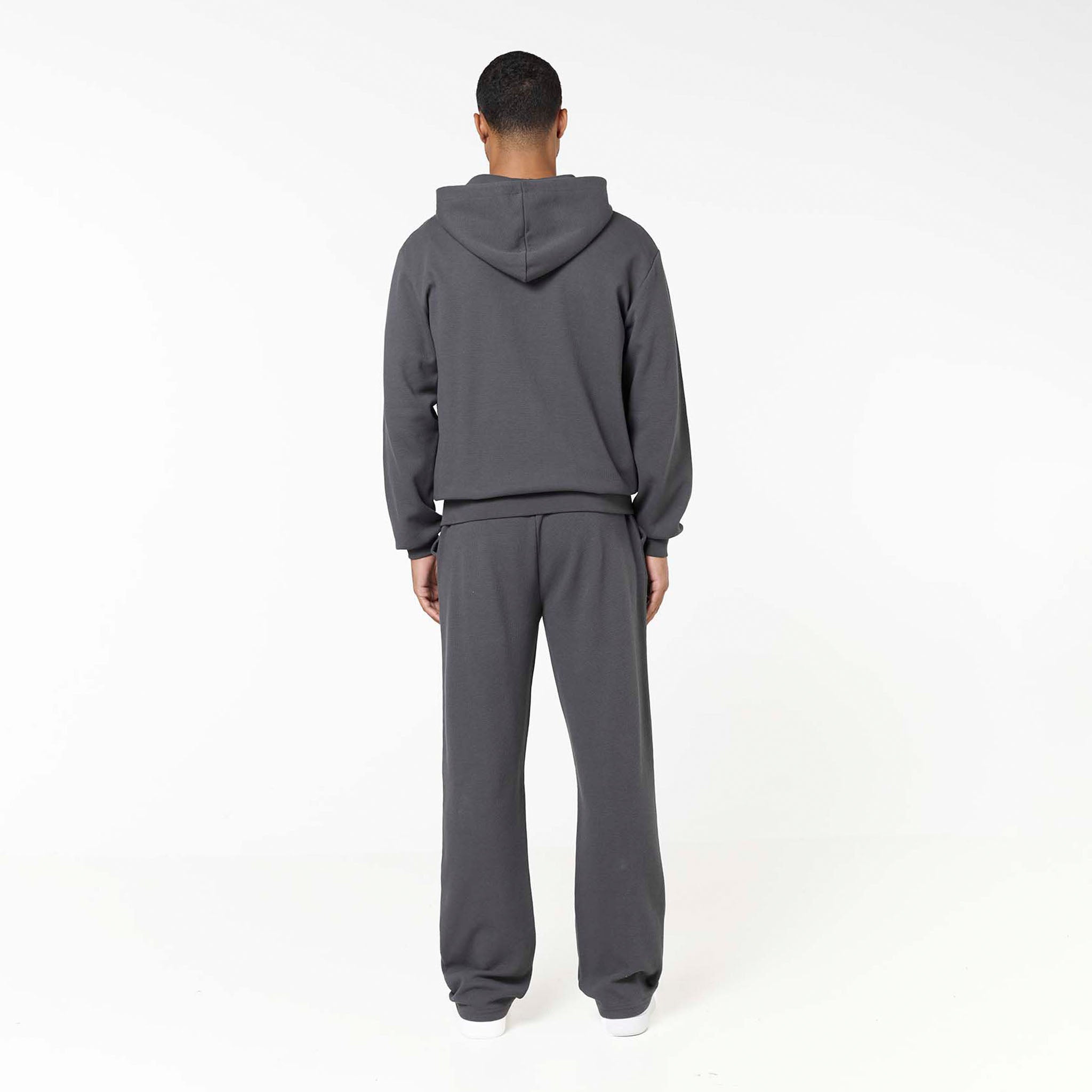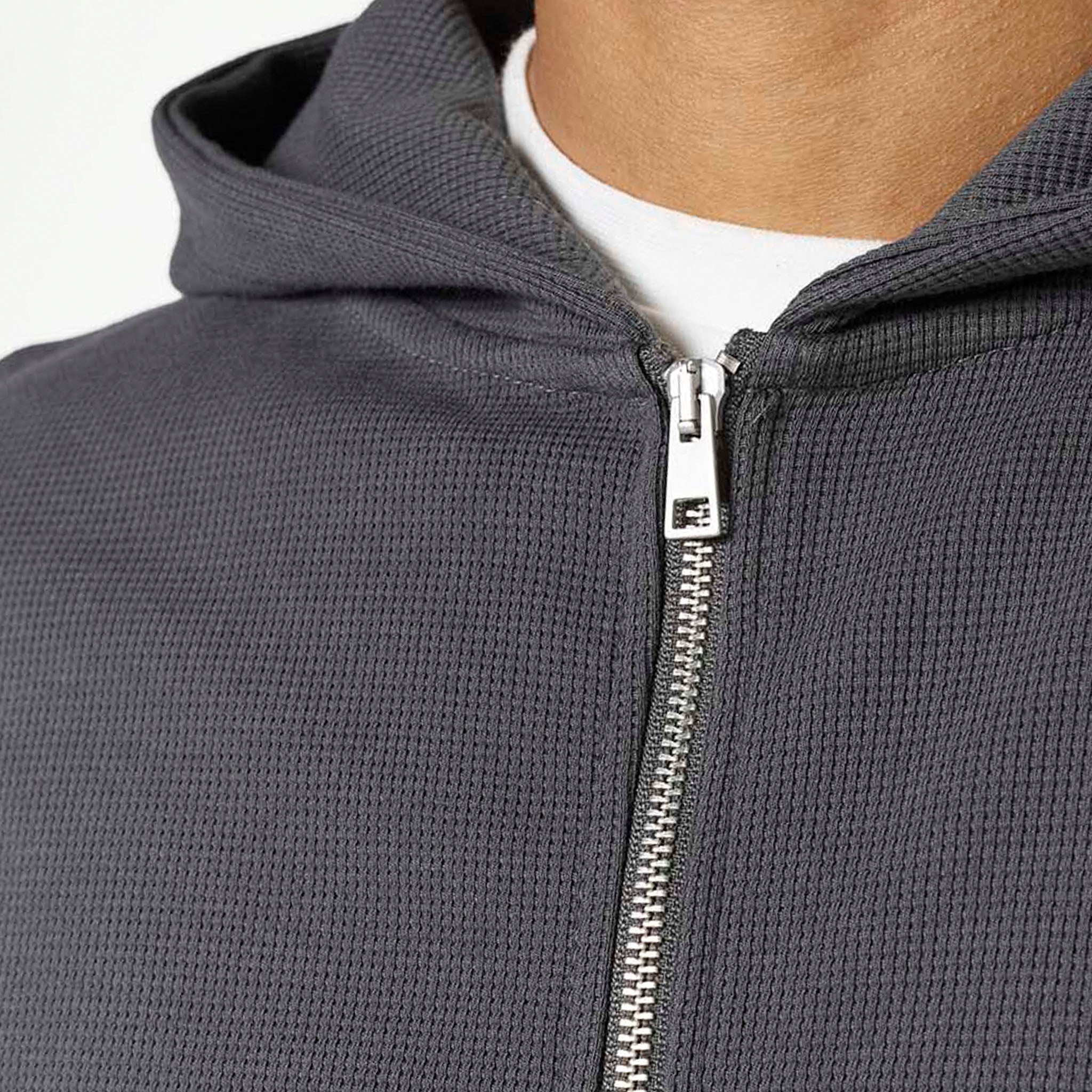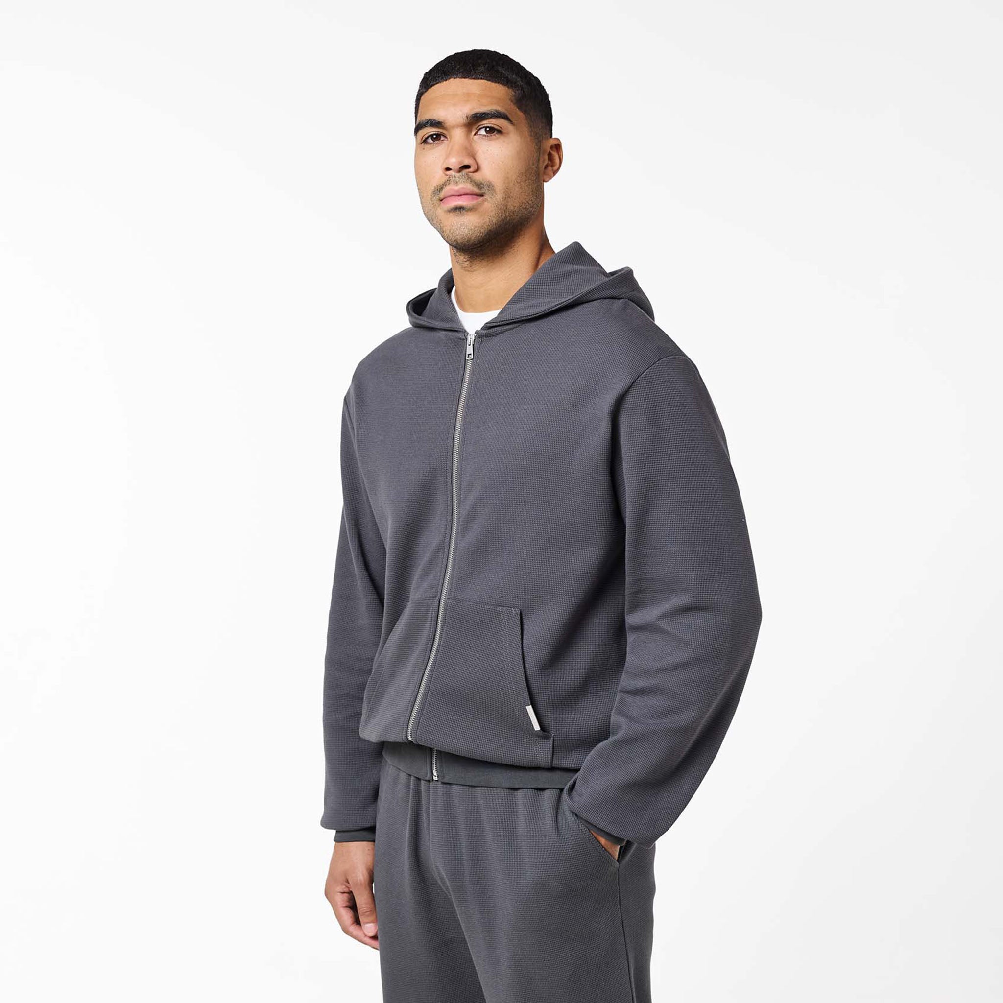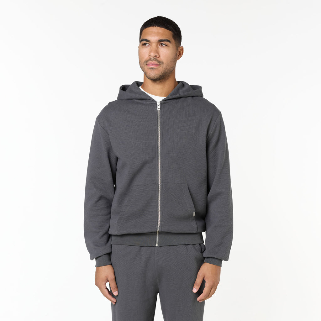Waffle Knit Full Zip Hoodie | Charcoal