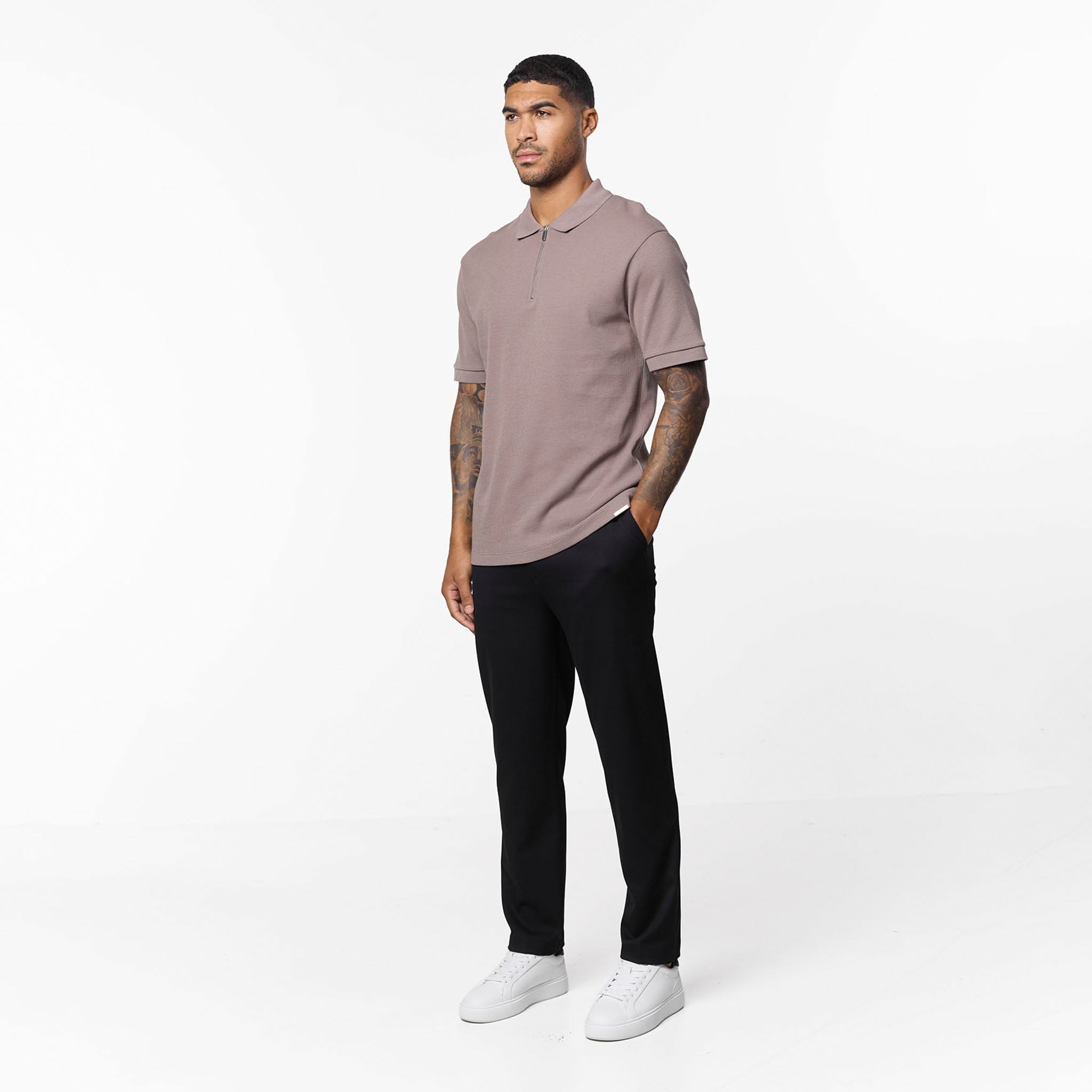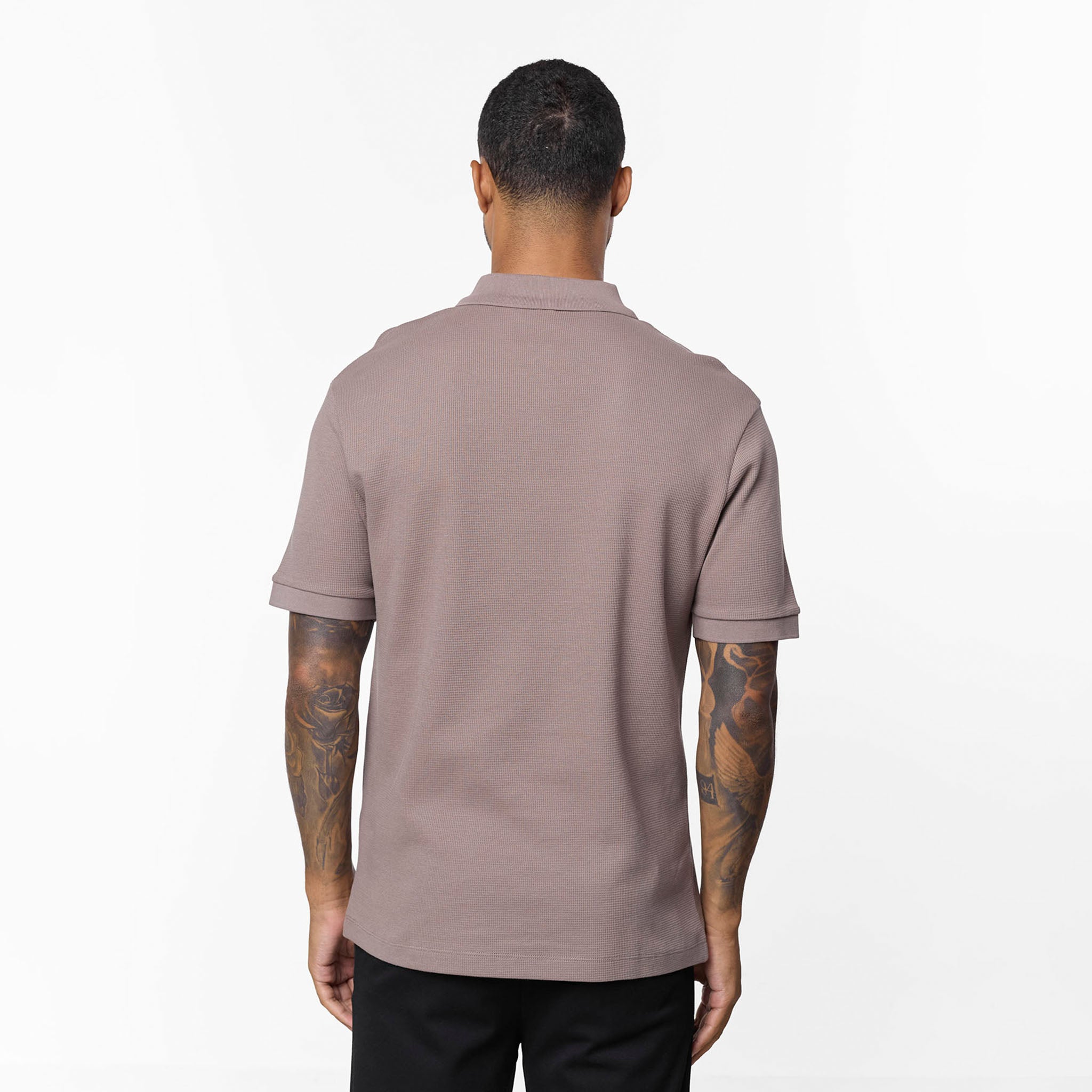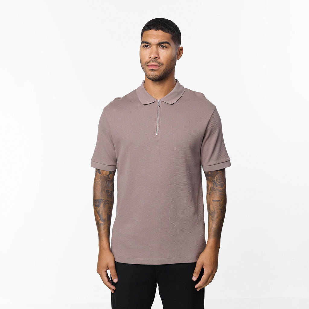 Introducing the Waffle Zipped Polo in brown, a contemporary take on a timeless design. This piece seamlessly merges comfort with practical features, making it an indispensable addition to your casual wardrobe. Meticulously crafted from a premium waffle knit fabric, it not only offers a distinctive tactile experience but also provides a relaxed silhouette that moves with you. The deep brown hue adds a touch of rustic sophistication, while the soft feel ensures all-day comfort. The addition of a sleek zip closure elevates this polo beyond the traditional, offering a modern twist on a classic staple.