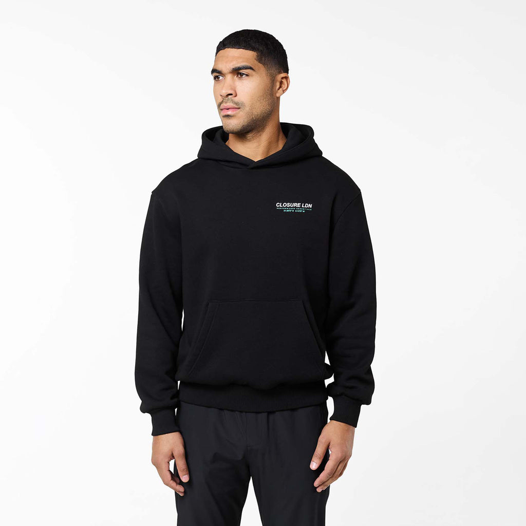 Discover signature comfort with the new season CLSR Outdoor Graphic Hoodie in classic black. Crafted for everyday wear, this piece boasts a practical hood with lining and a stylish crossover detail, offering a modern aesthetic and extra warmth. Its durable design is complemented by ribbed cuffs and hem for a consistently snug fit. A crisp Closure Outdoors flat print logo at the chest delivers clear branding, while a large, impactful rear graphic logo print ensures a distinctive look from behind.