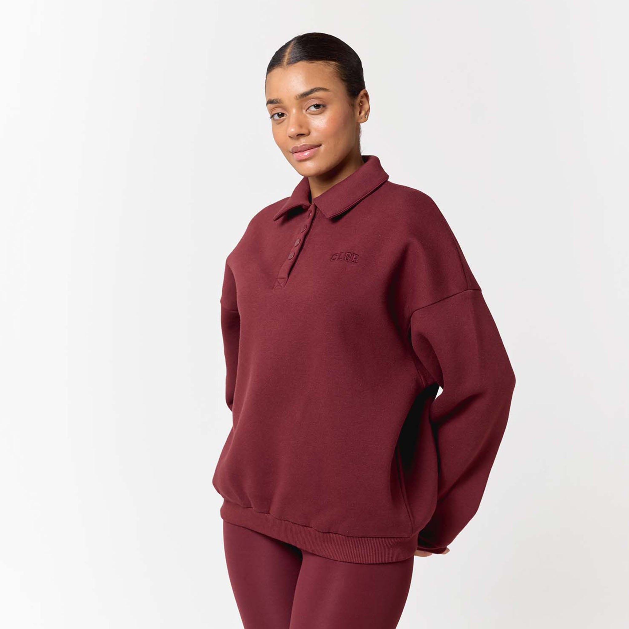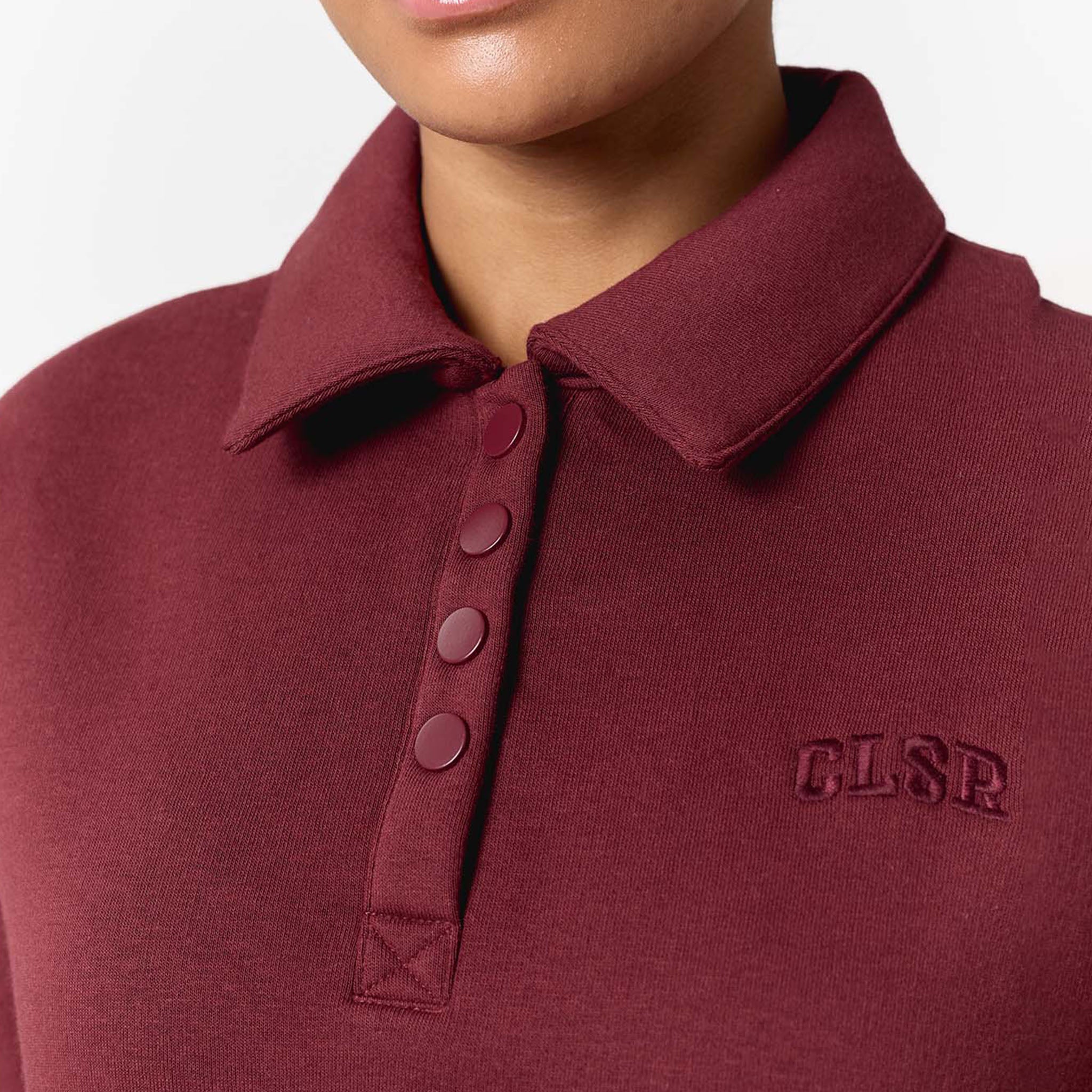Refresh your everyday attire with the CLSR Button-Up Sweatshirt, offered in a deep burgundy. It's the ultimate marriage of plush comfort and streamlined sophistication. Constructed from substantial 300GSM brushback fleece, this layer delivers a supremely soft texture and warmth without feeling heavy. Its distinctive design incorporates a smart collared neckline and a slick, quick-fastening popper placket, giving the classic fleece a modern, tailored feel. This go-to sweatshirt effortlessly moves from quick coffee stops to laid-back socialising, ensuring you remain both cosy and impeccably styled. The piece is completed with our CLSR logo, rendered in premium, textured raised embroidery on the chest.