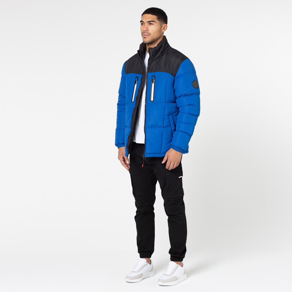 Contrast Zipped Funnel Neck Puffer Jacket | Cobalt Blue
