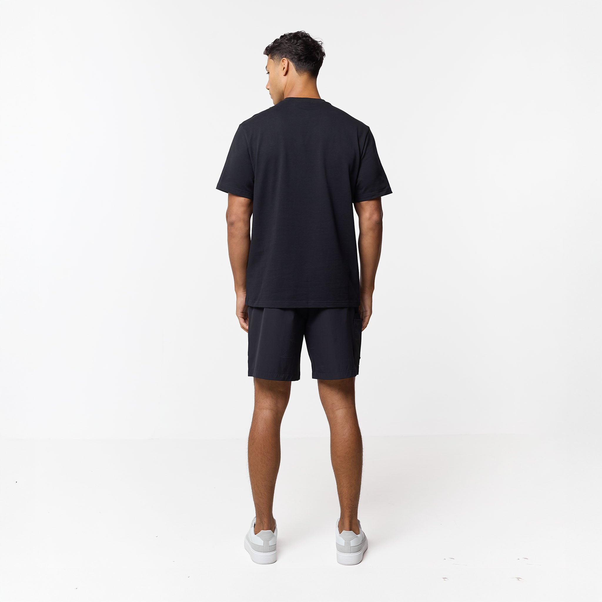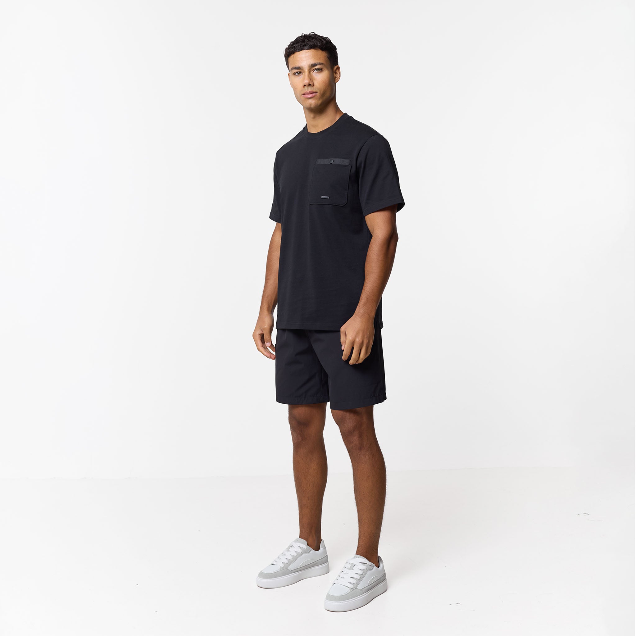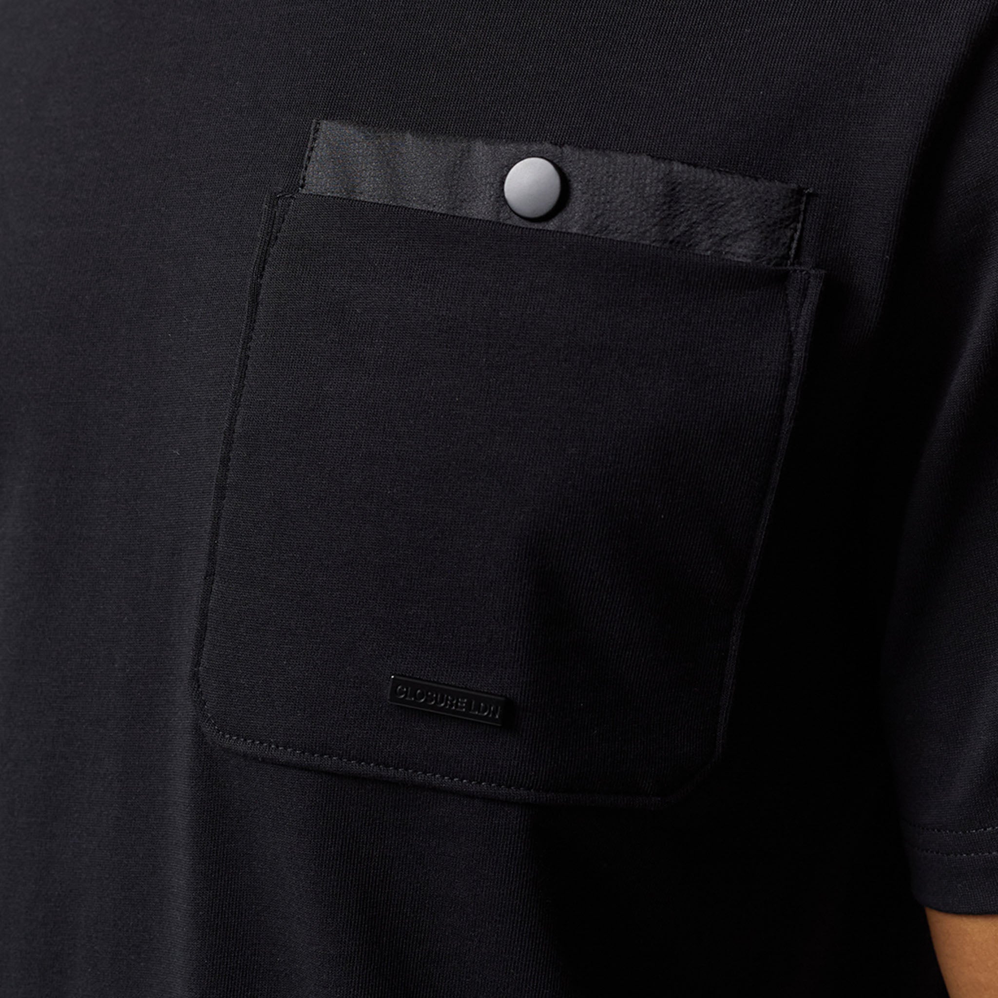 Step up your everyday rotation with this essential yet elevated Double Pocket Tech T-Shirt in black. Designed in a timeless regular fit with a comfortable crew neck and short sleeves, this piece effortlessly blends casual ease with structured utility. The defining feature is the striking double layered chest patch pocket, which secures your essentials with a reliable press stud fastening and is subtly complimented by our Closure branded metal badge. Expertly constructed for lasting comfort, details like the internal neck tape and clean neck trim ensure a premium feel against the skin. A core piece of our collection, designed to perfectly coordinate with the matching Double Pocket Tech overshirt and shorts for a streamlined look. Or switch up your look and pair with your the matching pants.