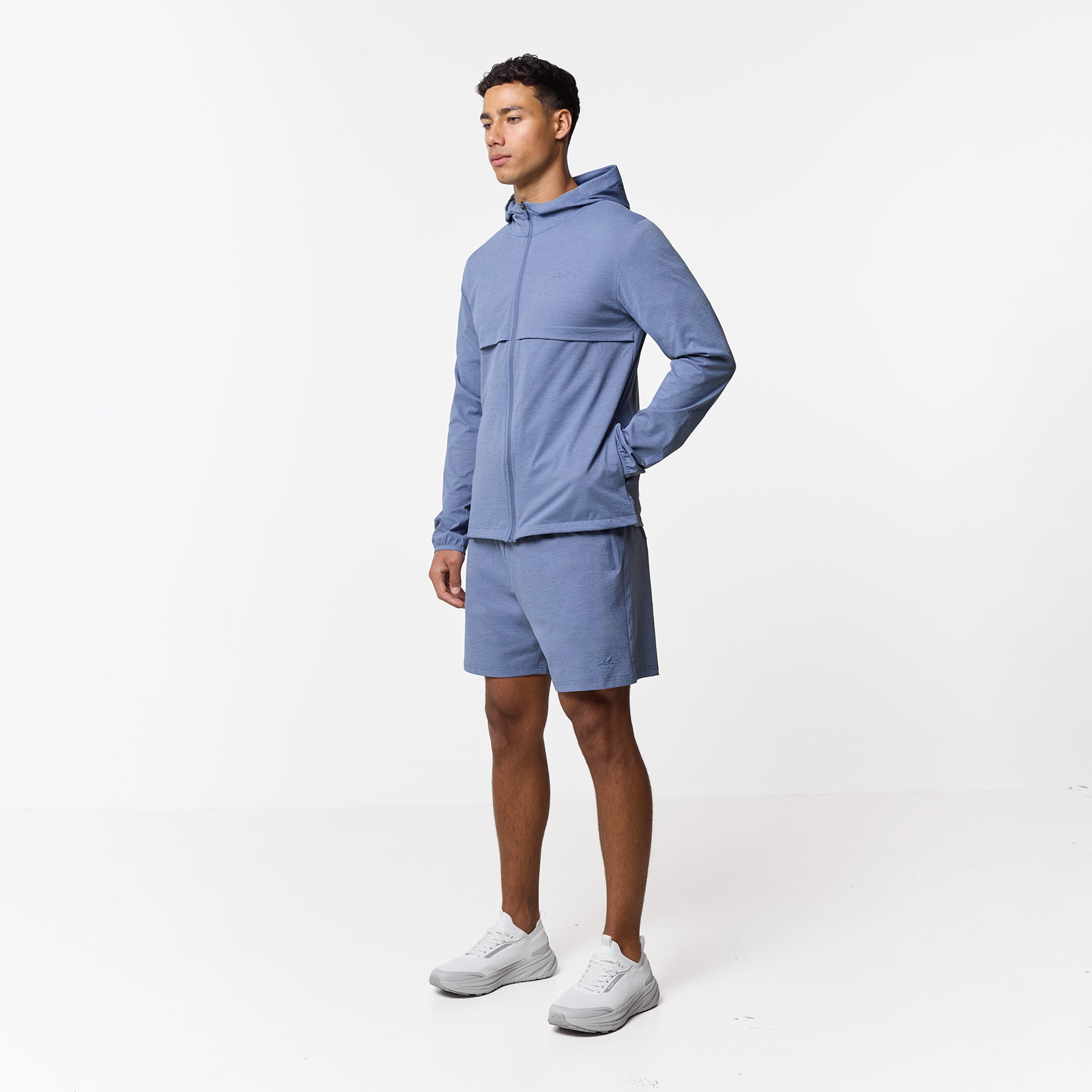 Elevate your active rotation with the Endurance Full Zip Hoodie, now available in Steel Blue, a vibrant new season shade. This technical essential combines a high-performance silhouette with elevated detailing, featuring a structured self-fabric three-piece hood and integrated bungee adjusters for an adaptable fit. Designed with a minimalist aesthetic, it incorporates concealed in-seam pockets for sleek storage and a premium high-build textured logo on the chest. The garment is finished with elasticated binding at the cuffs and a reliable auto-lock zip to ensure a secure, streamlined profile during movement. Team with the matching shorts to complete the ultimate high-performance twinset.