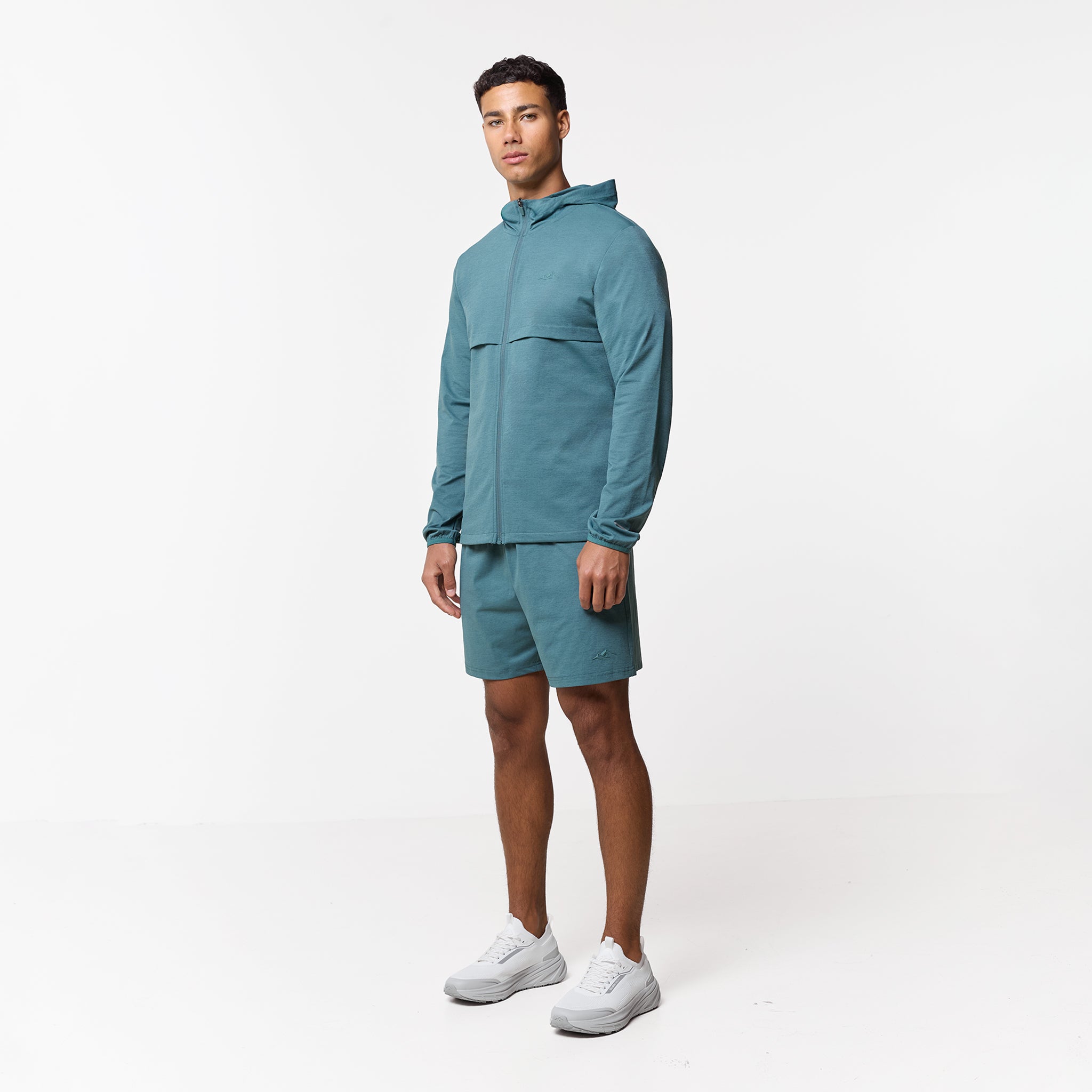 Upgrade your performance wardrobe with the Endurance Full Zip Hoodie in a bold, new-season Teal shade. This technical essential is engineered for a streamlined fit, featuring a structured self-fabric three-piece hood and integrated bungee adjusters that allow for a fully personalised fit. The clean aesthetic is maintained by concealed in-seam pockets for low-profile storage, while the chest is elevated with a high-build textured Closure logo for a premium finish. Designed to move with you, the garment is finished with elasticated binding at the cuffs and a dependable auto-lock zip to ensure a secure, stay-put feel during any activity. Pair this hoodie with our matching shorts to forge a high-impact, tonal twinset that bridges the gap between urban style and athletic performance.