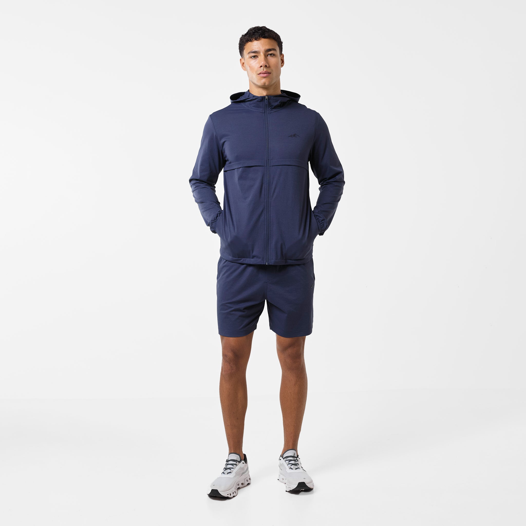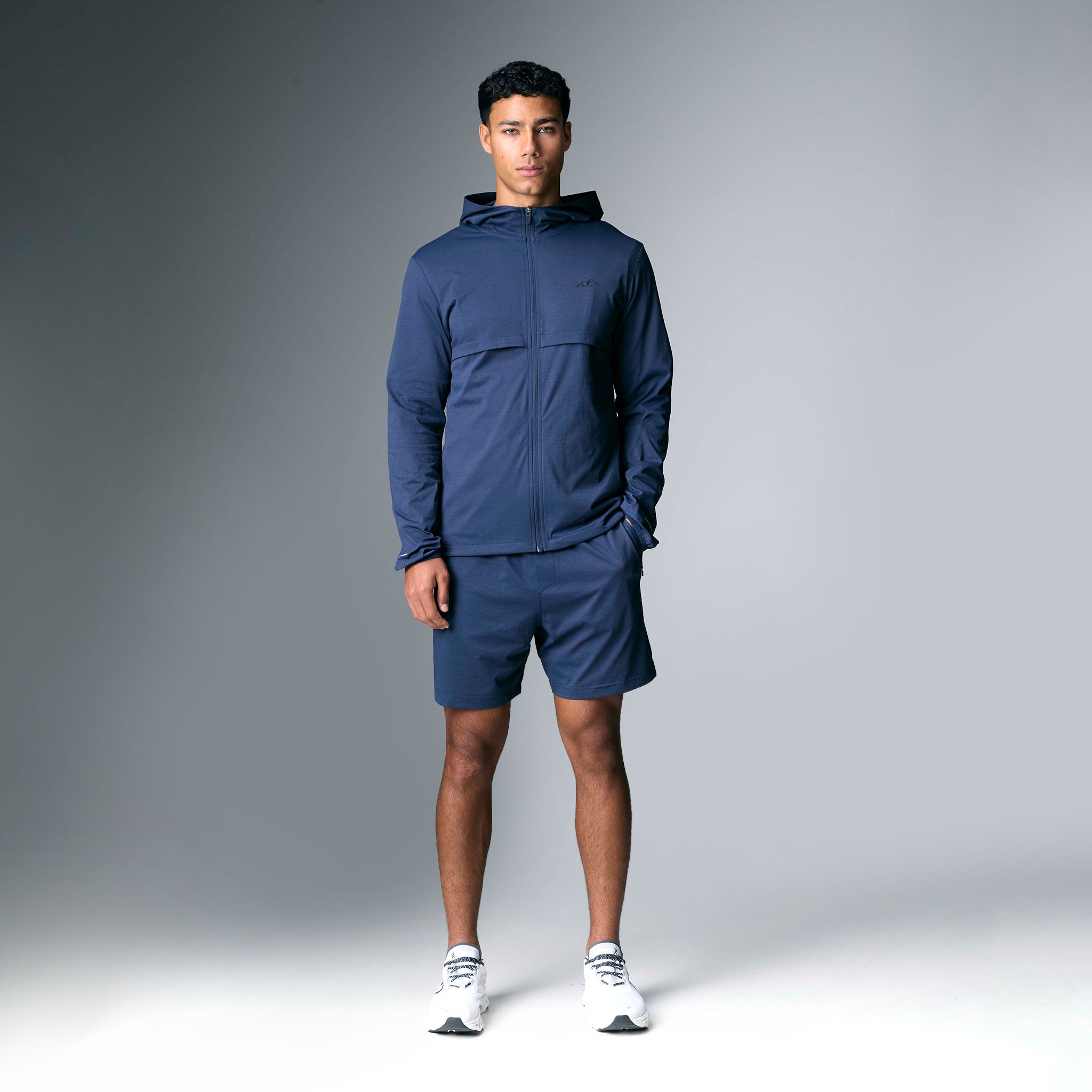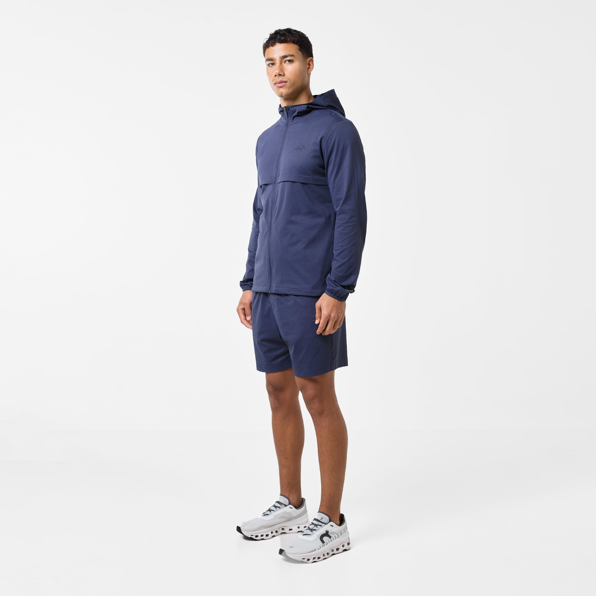 Introducing the Endurance Twinset in navy, offering both comfortable practicality and unrestricted movement. The Endurance Full Zip Hoodie features a three-piece hood with bungee adjusters for excellent coverage, plus concealed inseam pockets for a clean look. You'll find high-build Closure branding on the chest, elasticated binding cuffs for security, and a dependable autolock zip. Complementing this, the Endurance Shorts are designed for workouts with an elasticated waistband and internal drawcords for a secure fit. They include zip pockets for valuables and a side split hem for full range of motion. The shorts are finished with a quality twin needle hem stitch and the signature high-build Closure London branding.