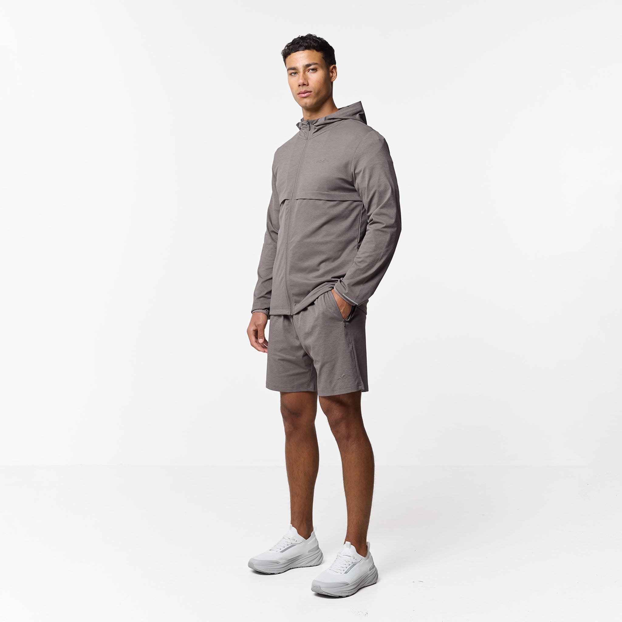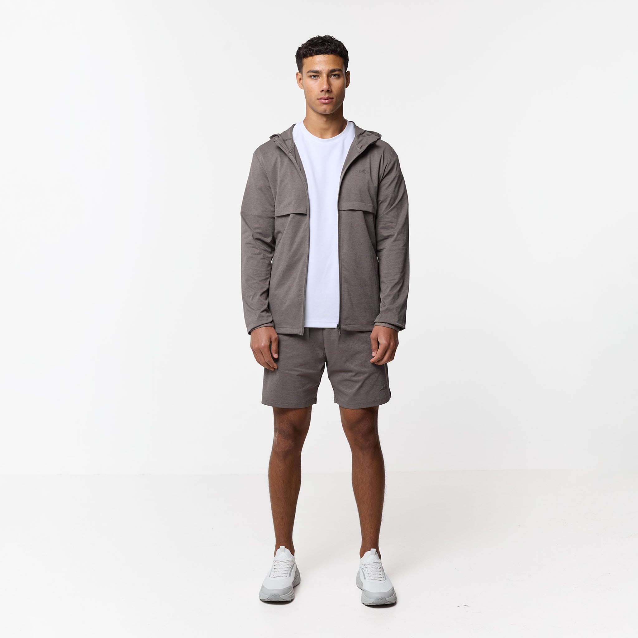 Elevate your training rotation with the Endurance Twinset, engineered for the ultimate high-performance aesthetic. This technical duo pairs a streamlined full-zip hoodie, featuring a structured three-piece bungee hood and concealed in-seam pockets with matching shorts for a cohesive, minimalist look. Built for motion, the set incorporates premium details like auto-lock zips, internal drawcords, and elasticated binding to ensure a secure fit during intense activity. Finished with signature high-build textured branding, this twinset seamlessly blends precision engineering with a sleek, modern profile to maximize your training potential.