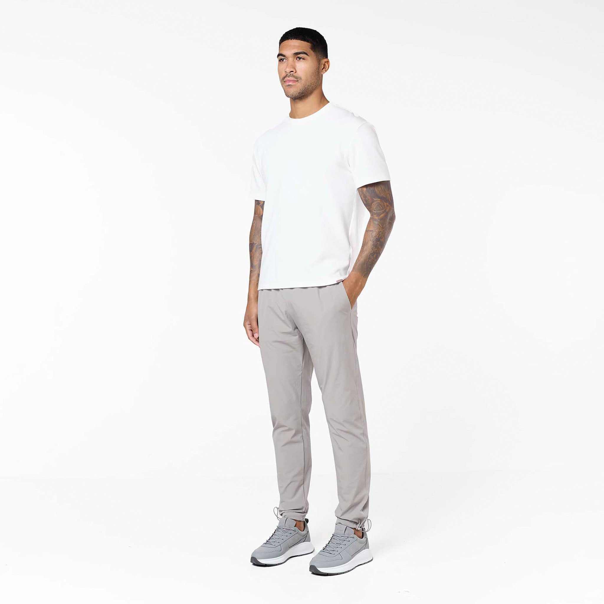 Discover the ultimate blend of comfort and utility with our the Essential Open Hem Tech Pant in stone. Designed for a relaxed fit and modern style, these cargos are a versatile staple. They feature a comfortable elasticated waistband complemented by a drawcord with rubber-dipped ends for a secure, adjustable fit. Practicality is key, with easy-access slanted pockets finished with subtle single stitching. The open hem design provides a contemporary silhouette, further enhanced by a self-turn hem with an adjuster bungee cord, allowing you to customise the fit around your ankles. These cargo pants are perfect for your dynamic lifestyle, offering both style and functionality.