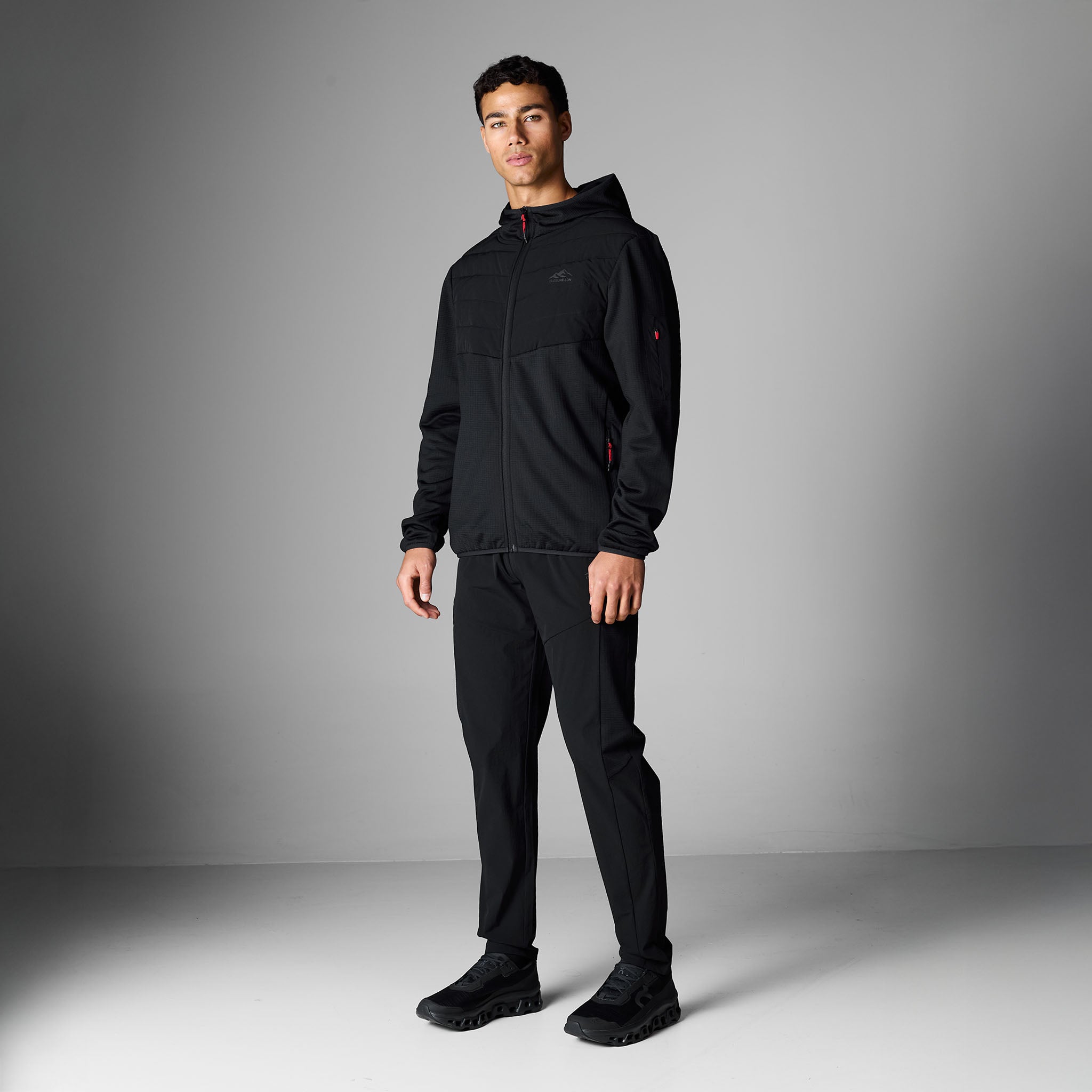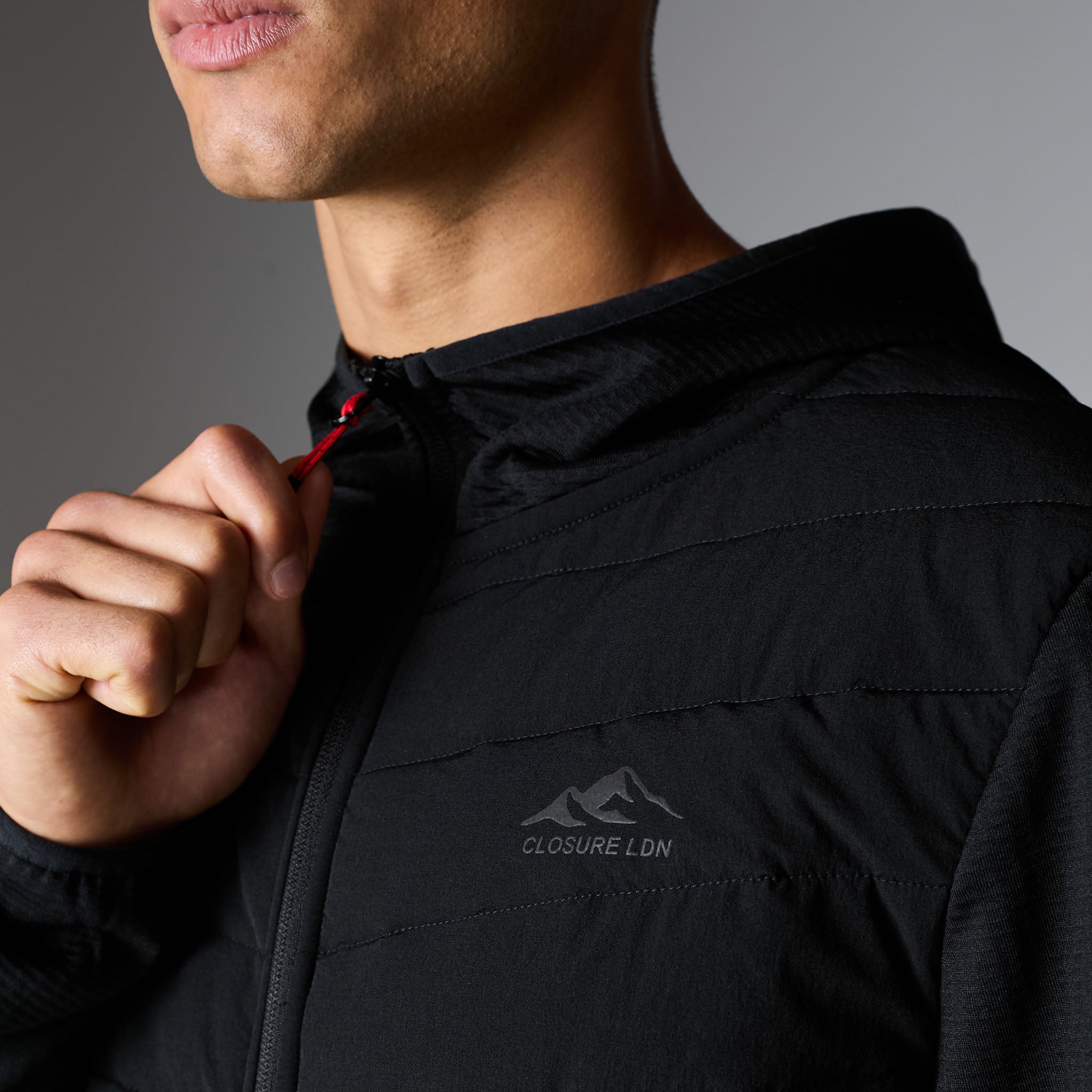Unwind in ultimate comfort and modern style with our men's Quilted Fleece Tracksuit in versatile black. Perfect for relaxed days or active wear, this tracksuit combines soft fleece with distinctive details. Designed for warmth and style, the fleece hoodie features a plush body and a comfortable self-fabric hood. Stand out with unique quilted poly panelling and secure your fit with the zip down fastening, complete with a bungee puller. The matching joggers are crafted for comfort with fleece fabric and feature self-fabric cuffs for a clean finish. They boast a comfortable ribbed self-fabric waistband with drawcords that have rubber dipped ends for a custom fit. A Closure branded transfer print on the chest and bottoms adds signature style, complemented by a contrast cut and sew panel for a modern look.