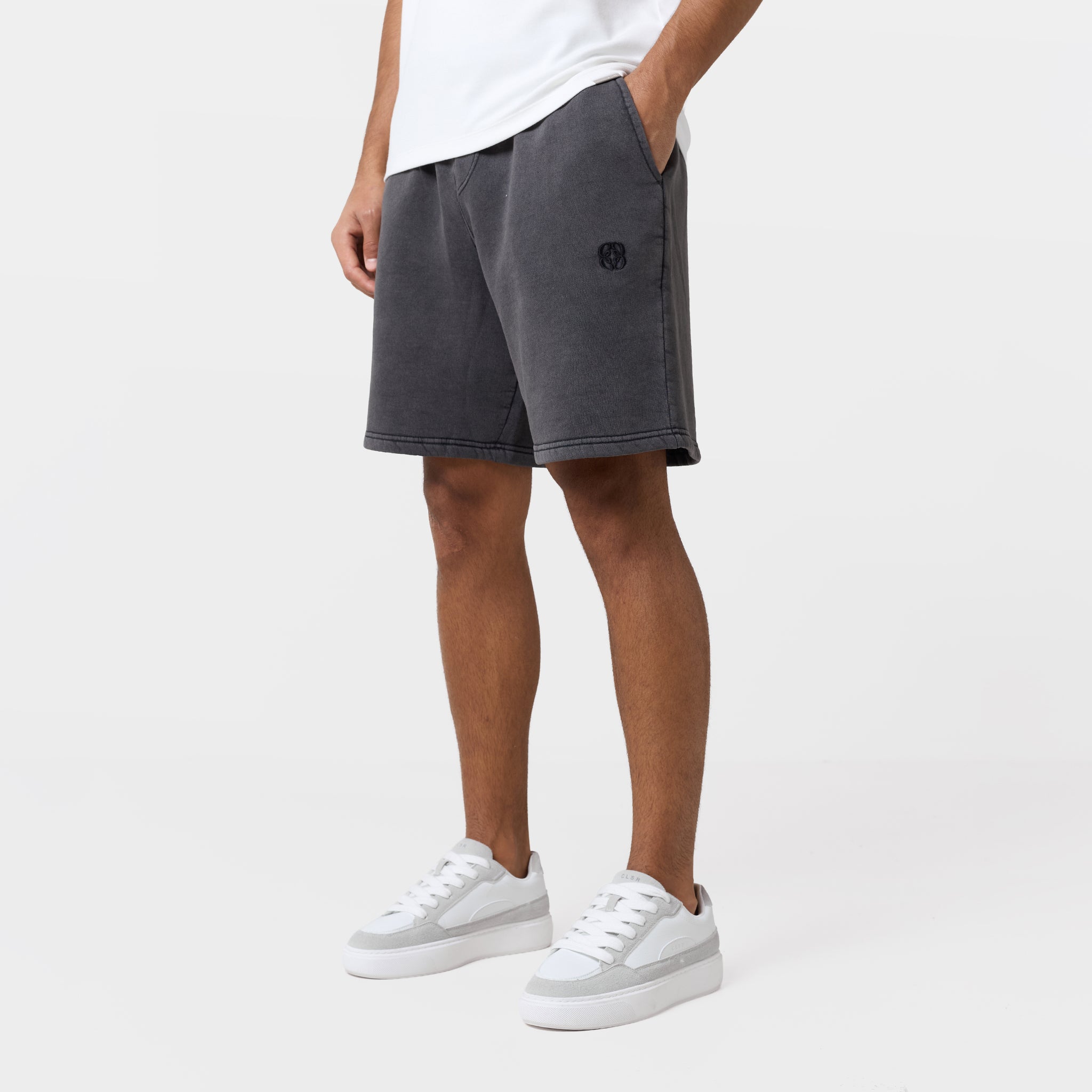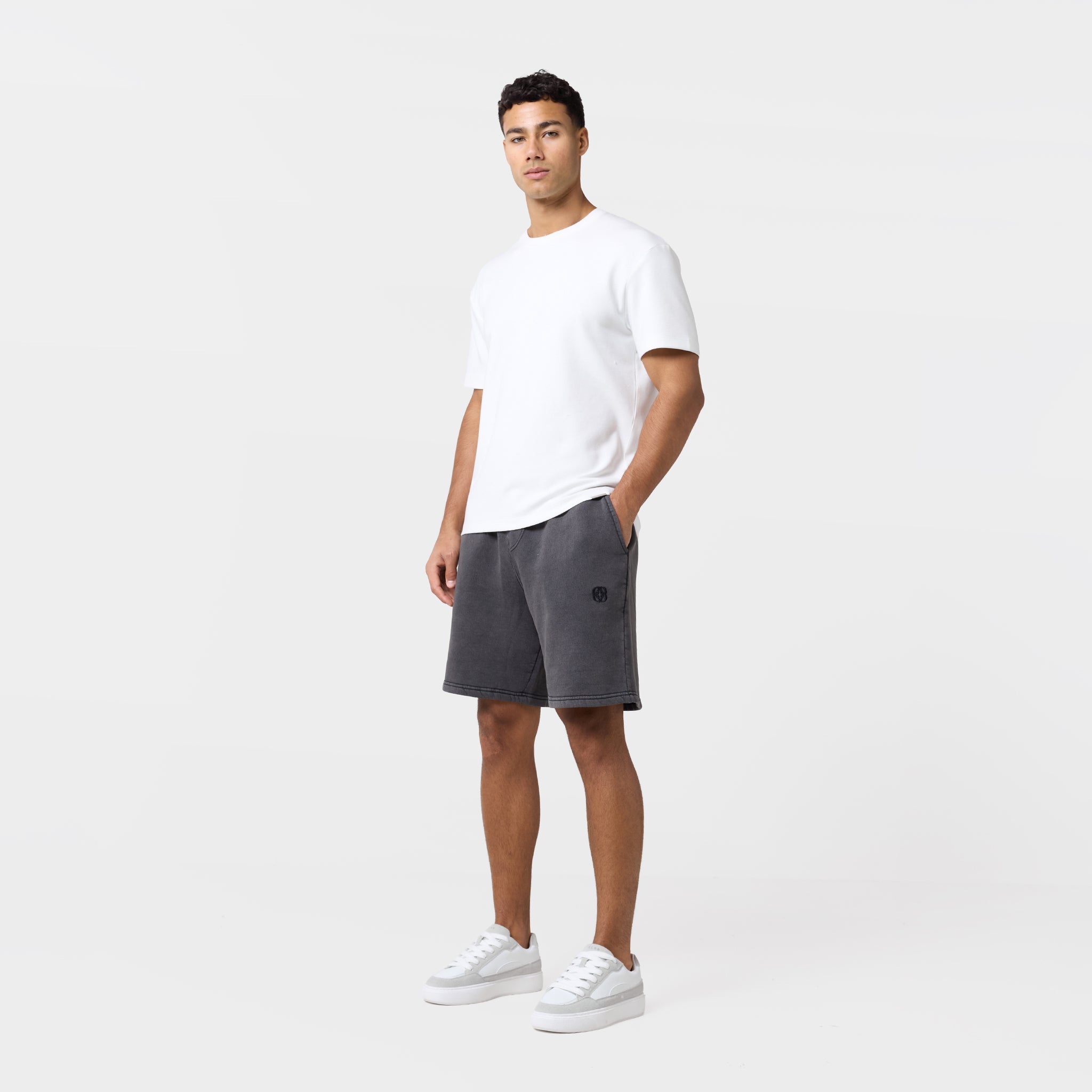 Elevate your off-duty rotation with the Icon Shorts in washed black. These shorts strike the perfect balance between a relaxed feel and a tailored look, featuring a ribbed waistband for a secure, flexible fit and a faux fly stitch that adds a sophisticated, classic touch. Crafted with high-quality finishes, they feature flat cotton drawcords with self-turn ends and straight buttonhole stitch eyelets for a clean, minimalist aesthetic. The slant pockets offer easy access for your essentials, while the subtle embroidered icon logo adds a signature premium detail. Finished with a durable self-turn hem and twin-needle stitching, these shorts are built to maintain their shape and style through every wear. Pair with the matching hoodie or full zip for the full look.