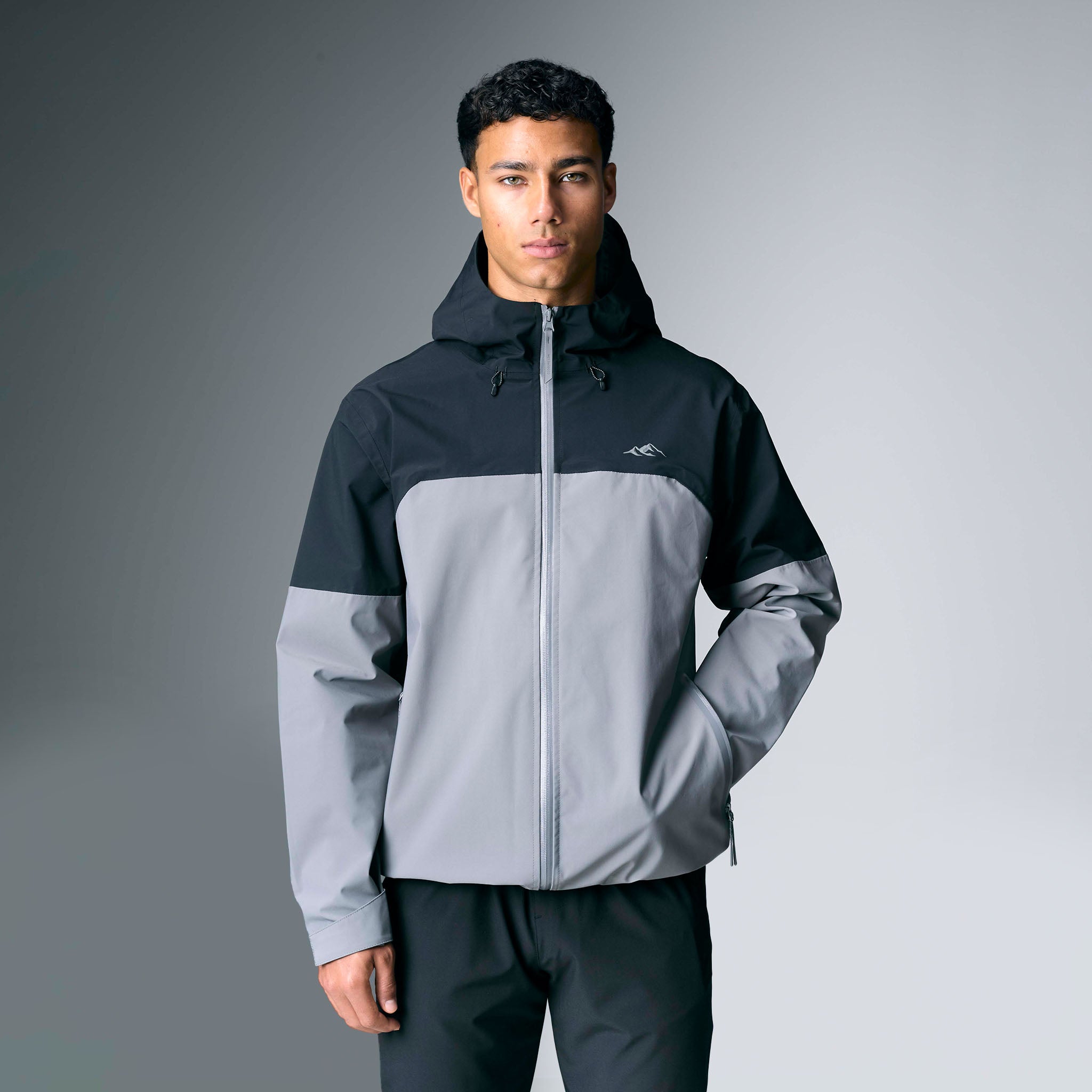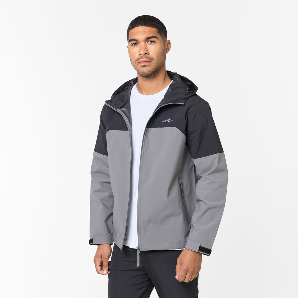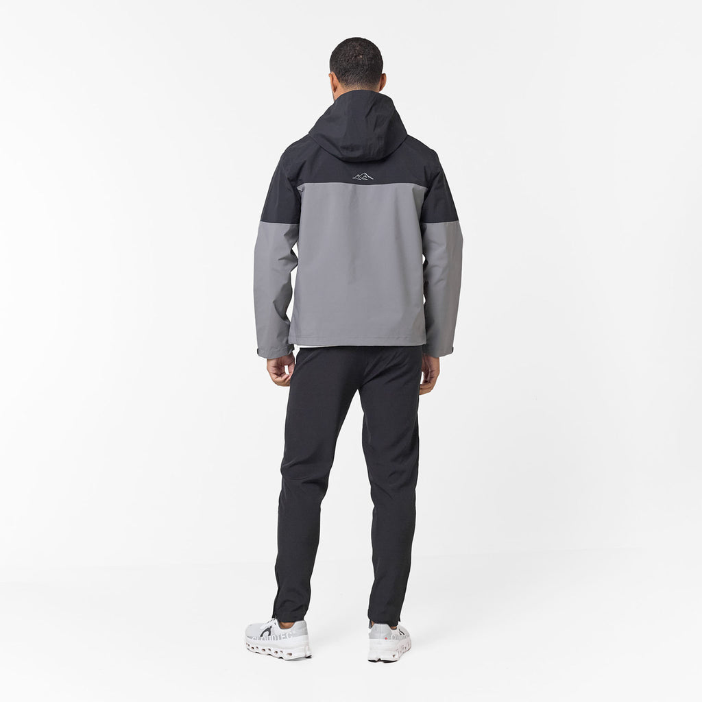 Embrace superior performance and conquer any weather in undeniable style with the Men's Layered Shell Sport Jacket 2.0 in Black/Charcoal. Designed for the contemporary individual,  this jacket masterfully fuses advanced functionality with a sleek look. Experience optimal protection and comfort thanks to its lined hood, effortlessly tailored to your preference with the integrated bungee cord adjuster, while your valuables stay safe and dry within the waterproof heat seal zip pockets. The striking cut and sew contrast colour panelling in Black/Charcoal creates a bold, athletic statement. Achieve a precision fit and effectively seal out the elements using the adjustable bungee cords with plastic adjusters at the hem, paired with self-fabric cuff velcro straps for a secure wrist closure. Finalised with a distinguished closure branded high build logo, this jacket is an essential for peak performance and style.