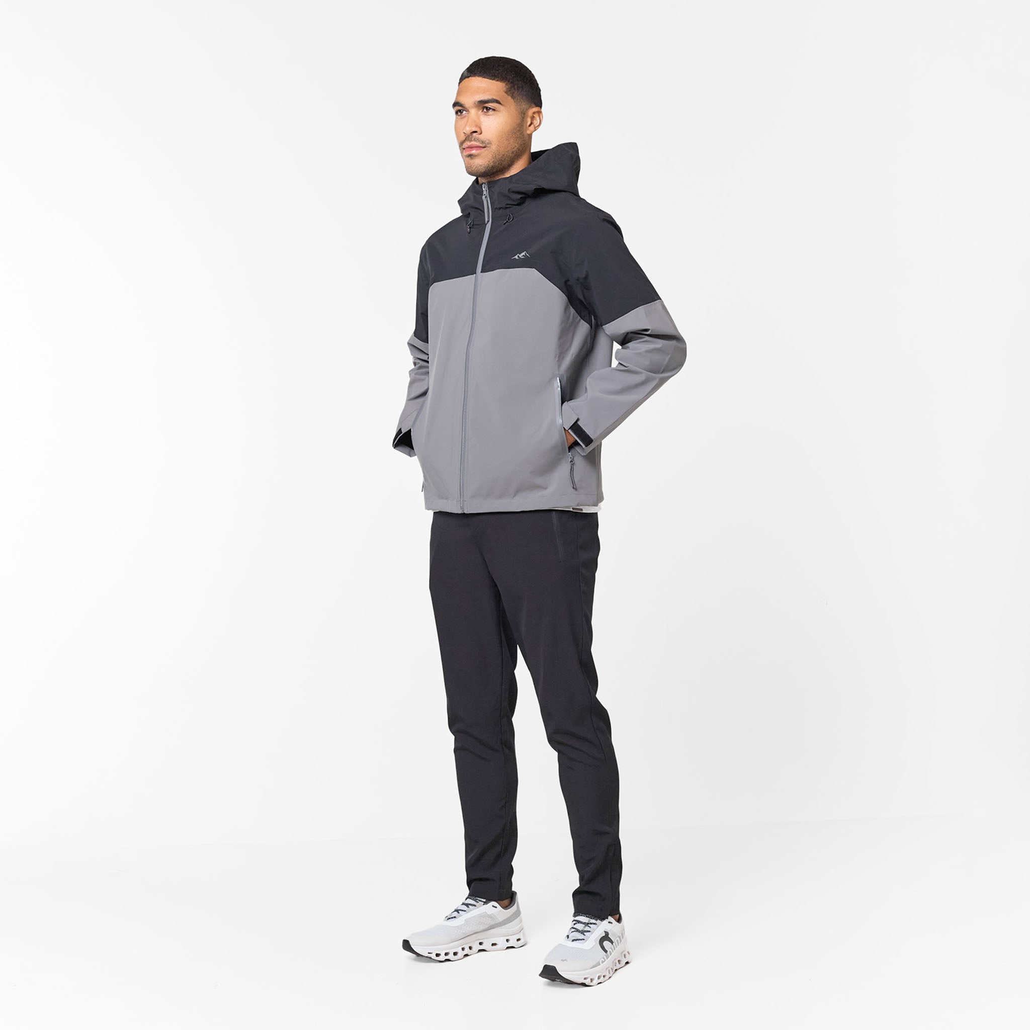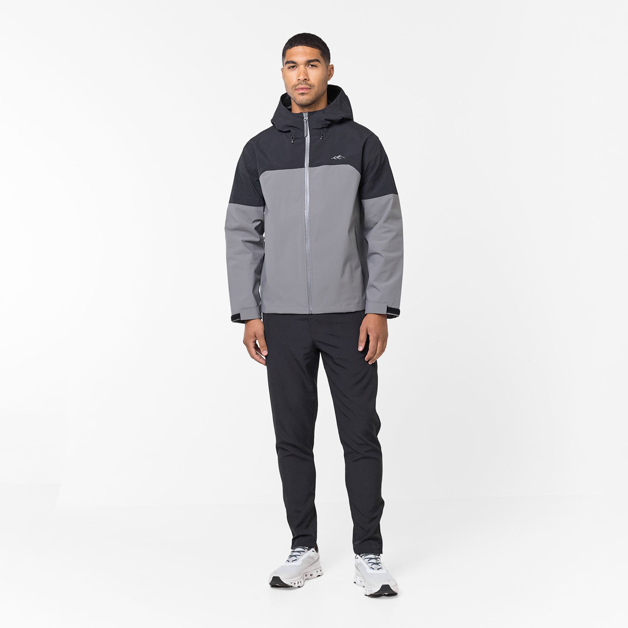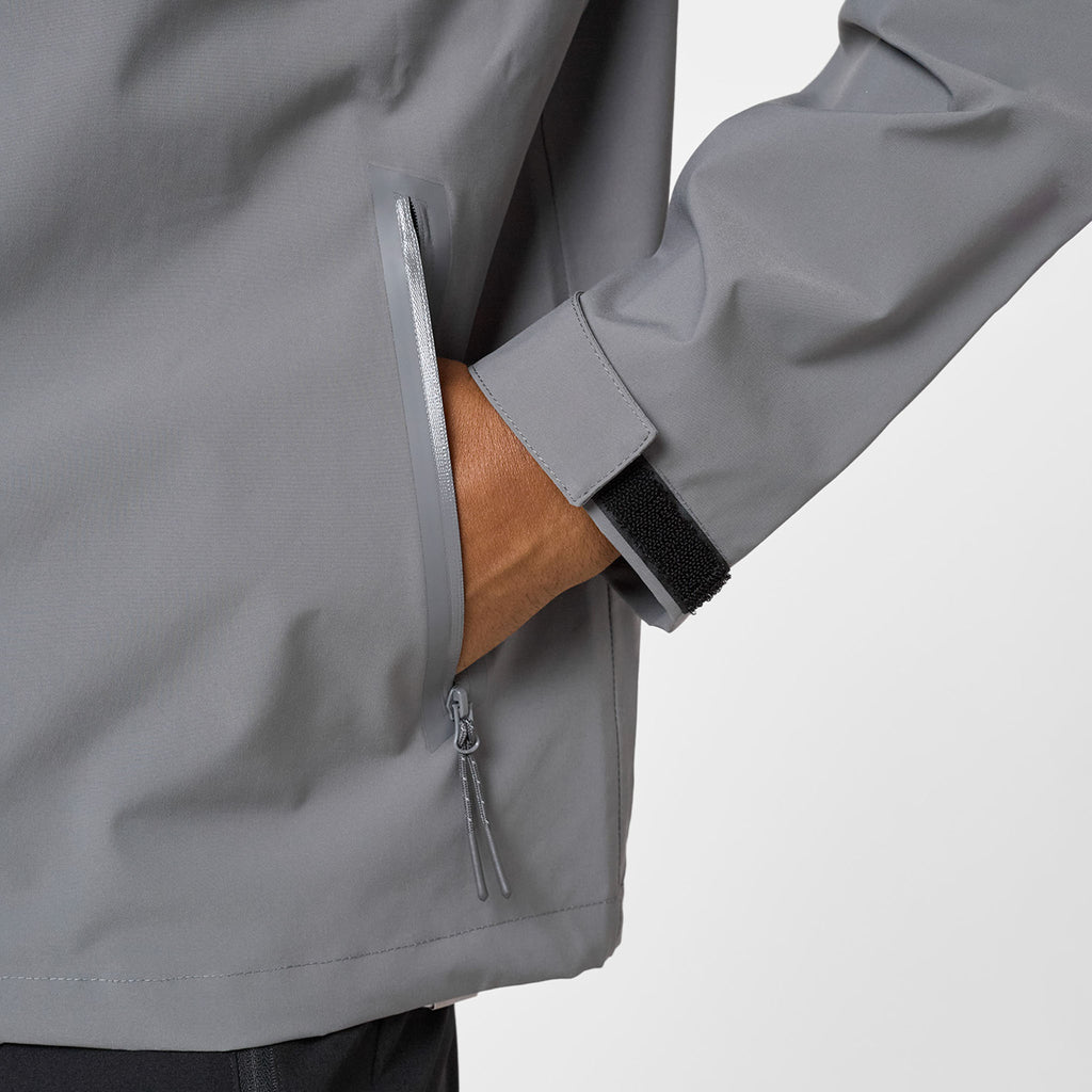 Embrace superior performance and conquer any weather in undeniable style with the Men's Layered Shell Sport Jacket 2.0 in Black/Charcoal. Designed for the contemporary individual,  this jacket masterfully fuses advanced functionality with a sleek look. Experience optimal protection and comfort thanks to its lined hood, effortlessly tailored to your preference with the integrated bungee cord adjuster, while your valuables stay safe and dry within the waterproof heat seal zip pockets. The striking cut and sew contrast colour panelling in Black/Charcoal creates a bold, athletic statement. Achieve a precision fit and effectively seal out the elements using the adjustable bungee cords with plastic adjusters at the hem, paired with self-fabric cuff velcro straps for a secure wrist closure. Finalised with a distinguished closure branded high build logo, this jacket is an essential for peak performance and style.
