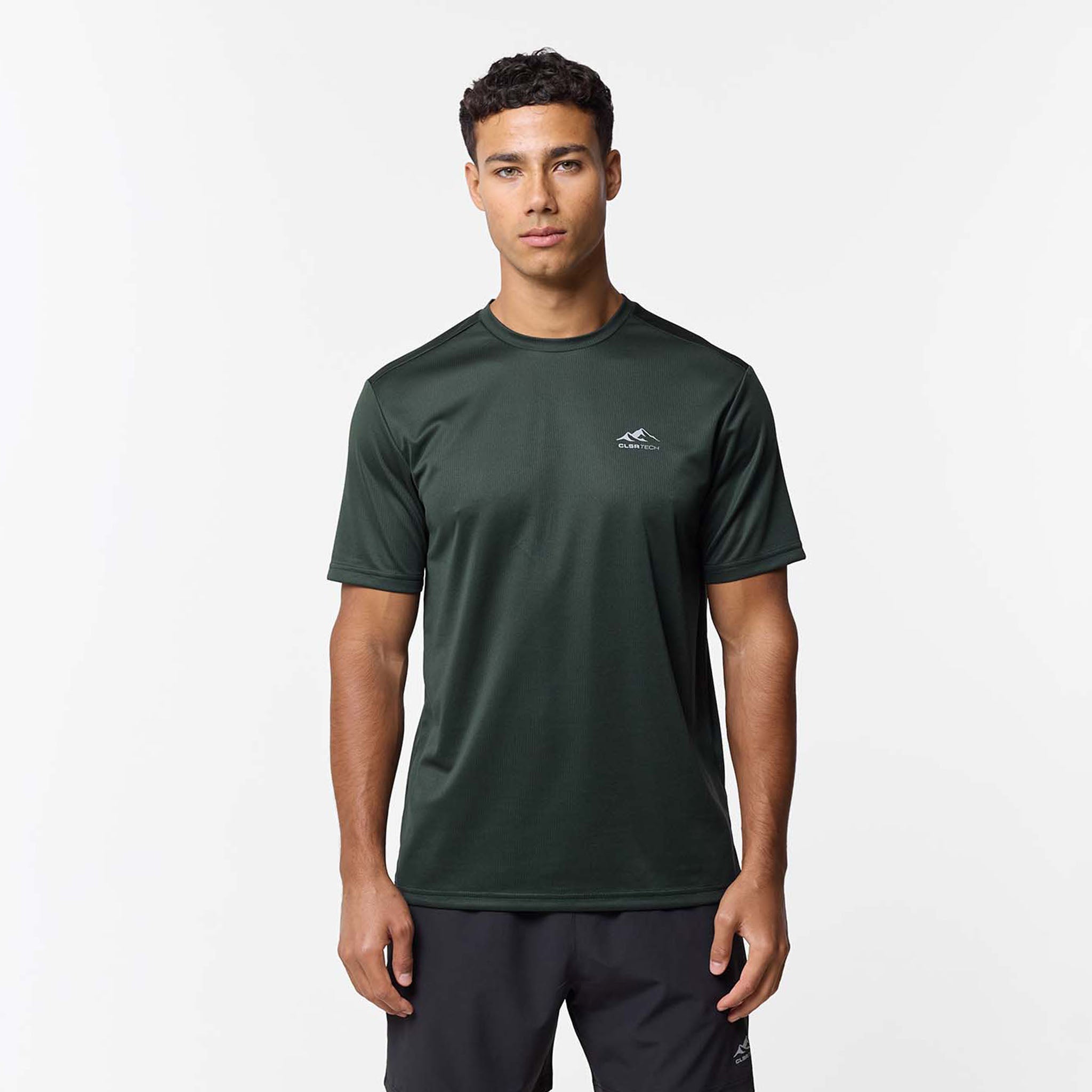 Engineered for the athlete who demands more from their basics, the Pace Performance T-Shirt in Forest Green is a high-performance essential designed to handle your most intense sessions. Crafted from a premium, lightweight poly fabric, this tee prioritises maximum breathability and air circulation to keep you cool when the heat rises. Featuring advanced moisture-wicking and quick-drying technology, it efficiently draws sweat away from the skin, ensuring you stay dry and focused from start to finish.The regular fit and classic crew neck provide a versatile, athletic silhouette that offers a natural range of motion without distraction. Finished with the signature CLSR Tech logo on the chest, this tee combines technical innovation with a clean, modern aesthetic.