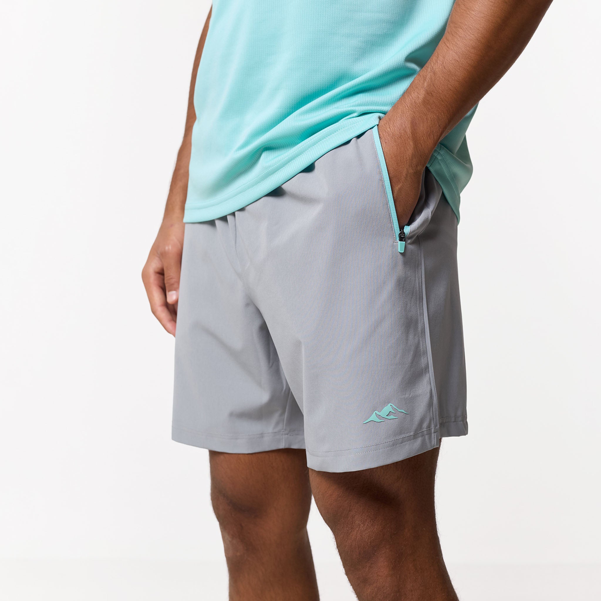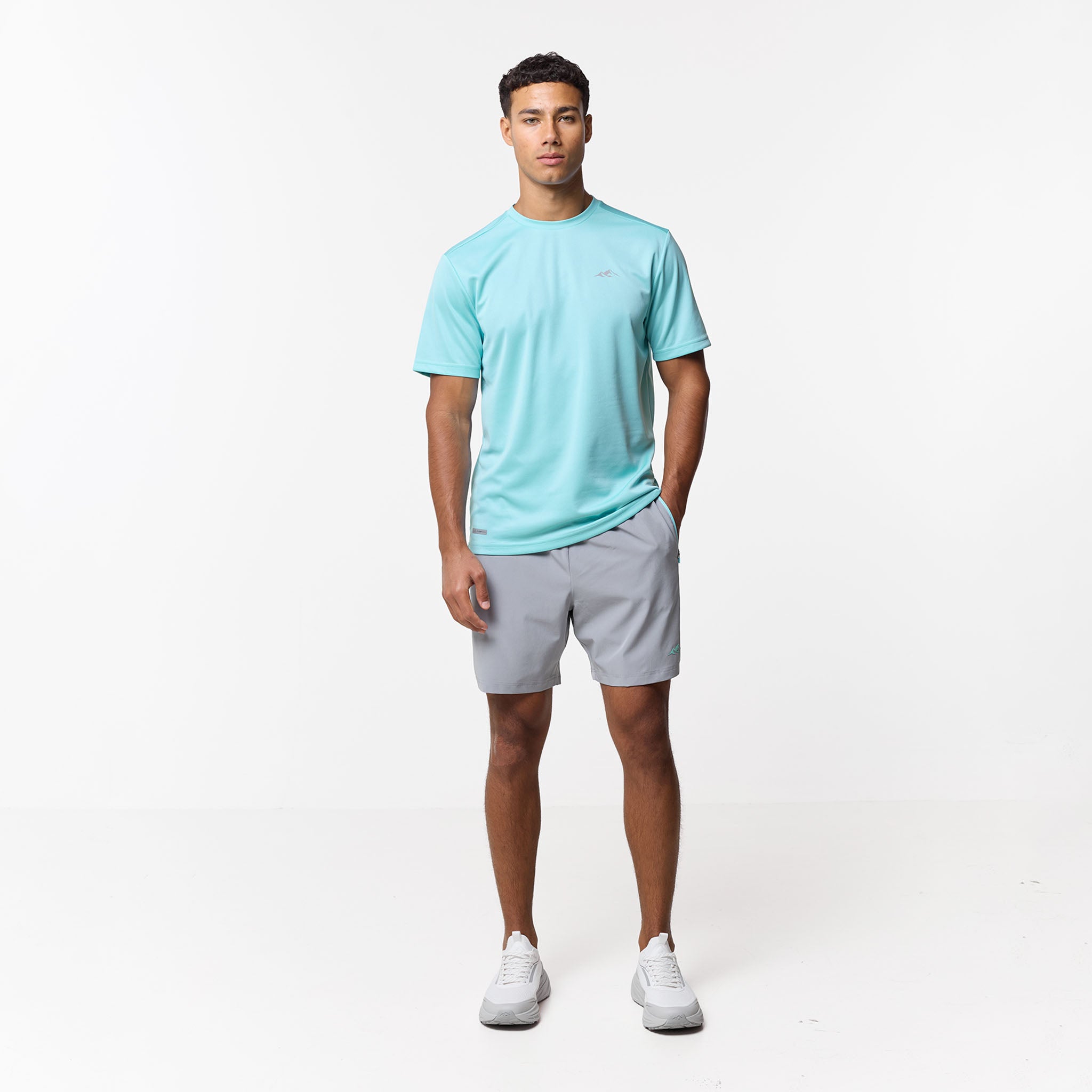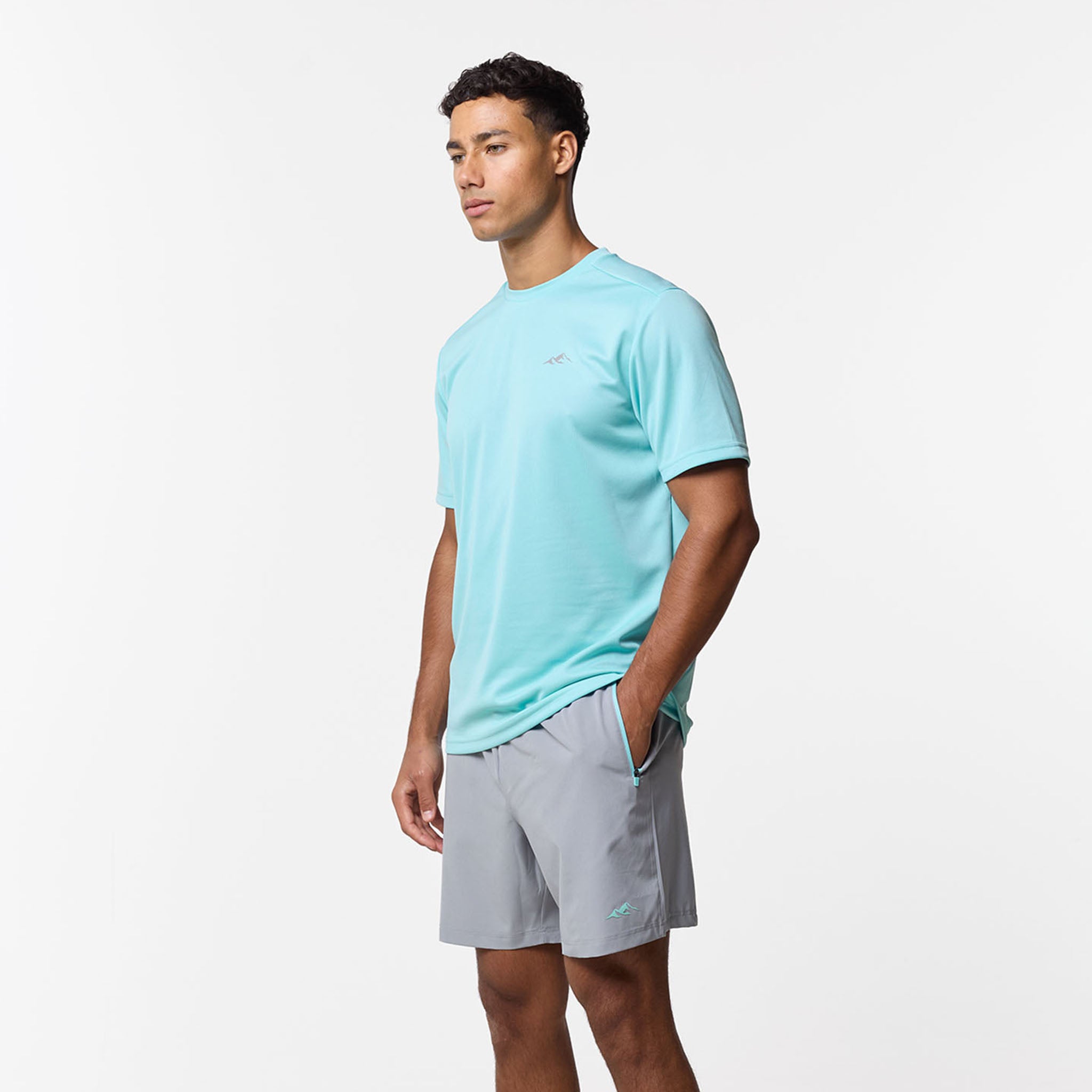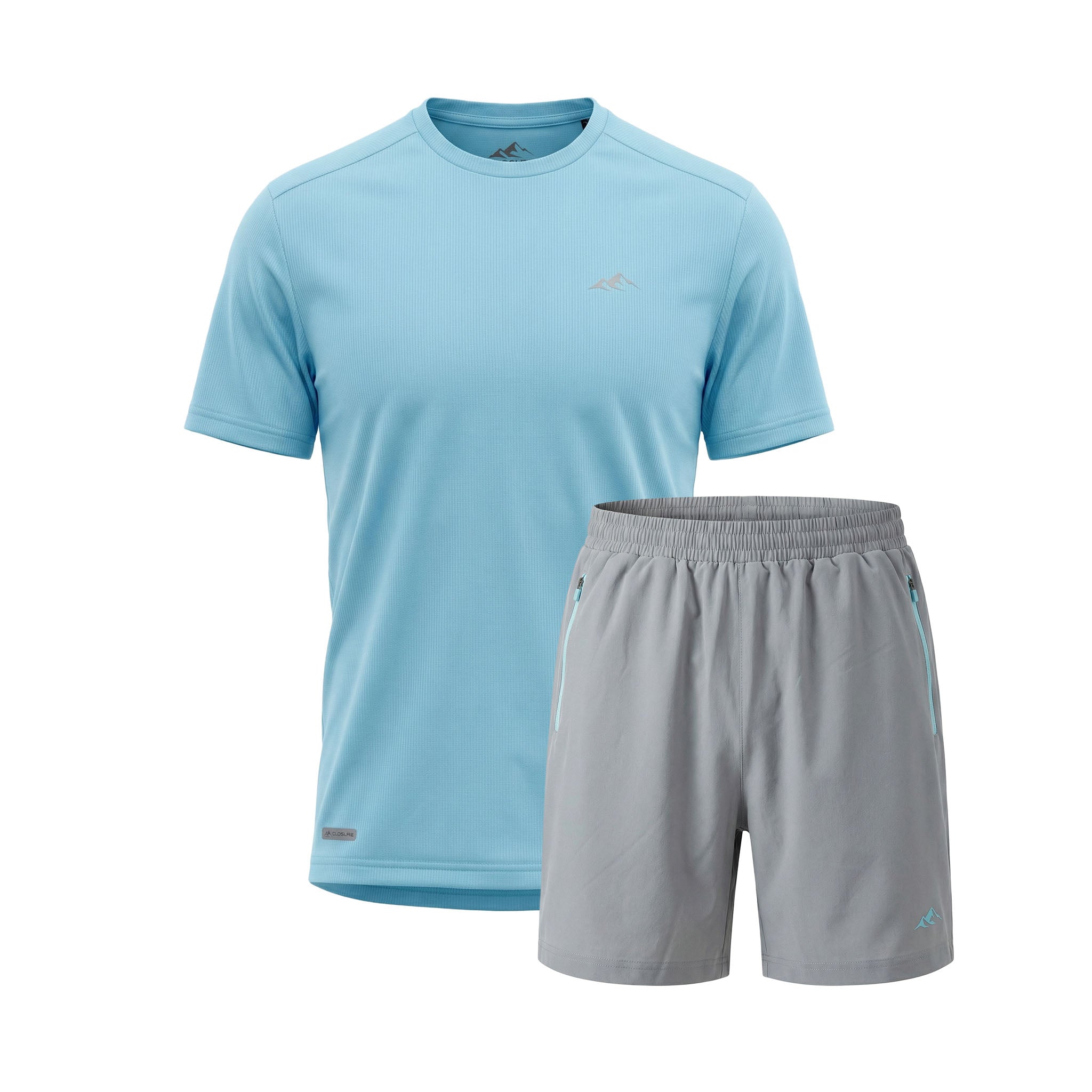 Refresh your workout rotation with the Pace Performance Twinset in Aqua Blue/ Ice Grey, a high-performance pairing designed to blend technical aesthetics with a cool, sharp aesthetic. This set leads with a regular-fit tee engineered from an elite poly-mesh that serves as a high-speed moisture-management system; its rapid-dry fabric keep you locked in and dry, while the striking Aqua Blue tone provides a vibrant look. Matched with Ice Grey performance shorts, built for a secure, custom feel with a flexible elasticated waistband and internal drawcords finished with rugged, rubber-dipped toggles. To maximise utility, the contrast pockets are fitted with reverse nylon coil zippers and auto-lock pulls to keep your essentials secure, while the industrial twin-needle hem stitching ensures a durable, premium finish that stands up to the rigours of daily training.