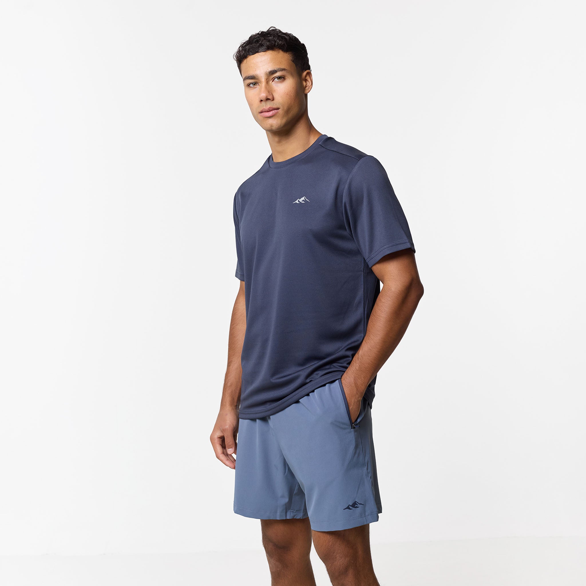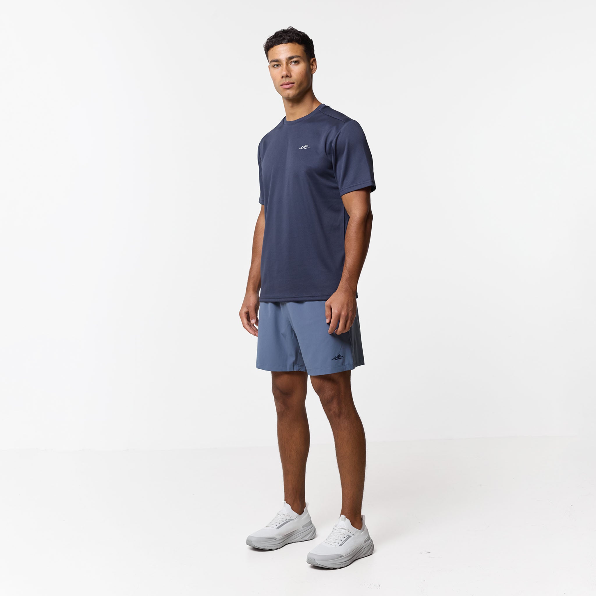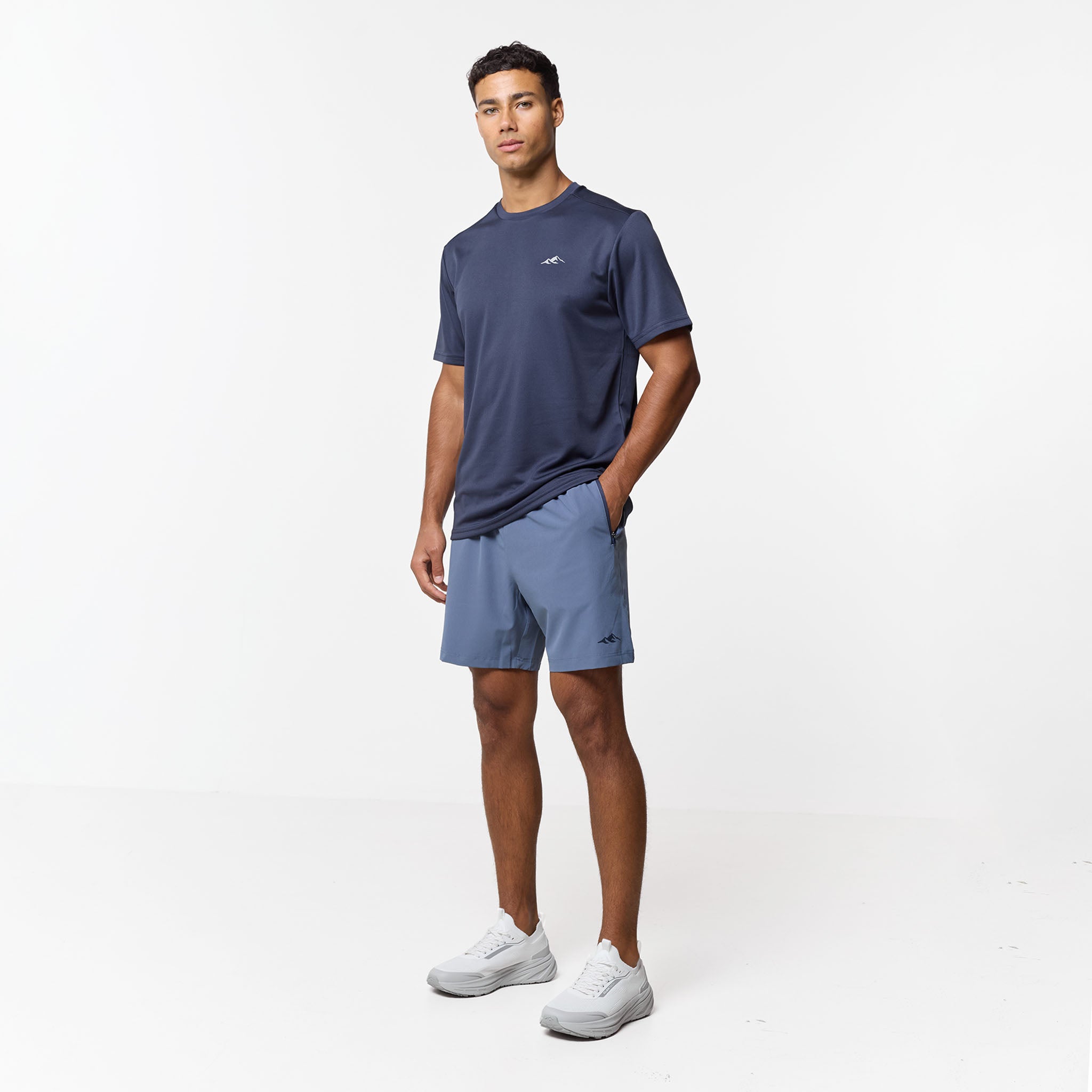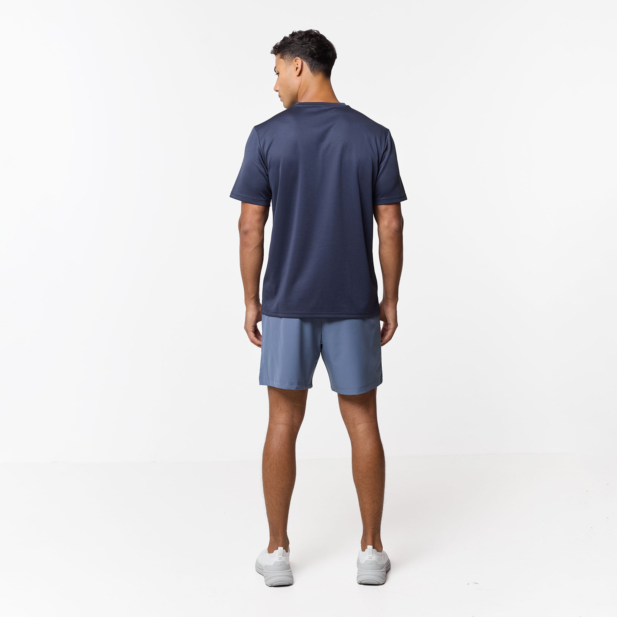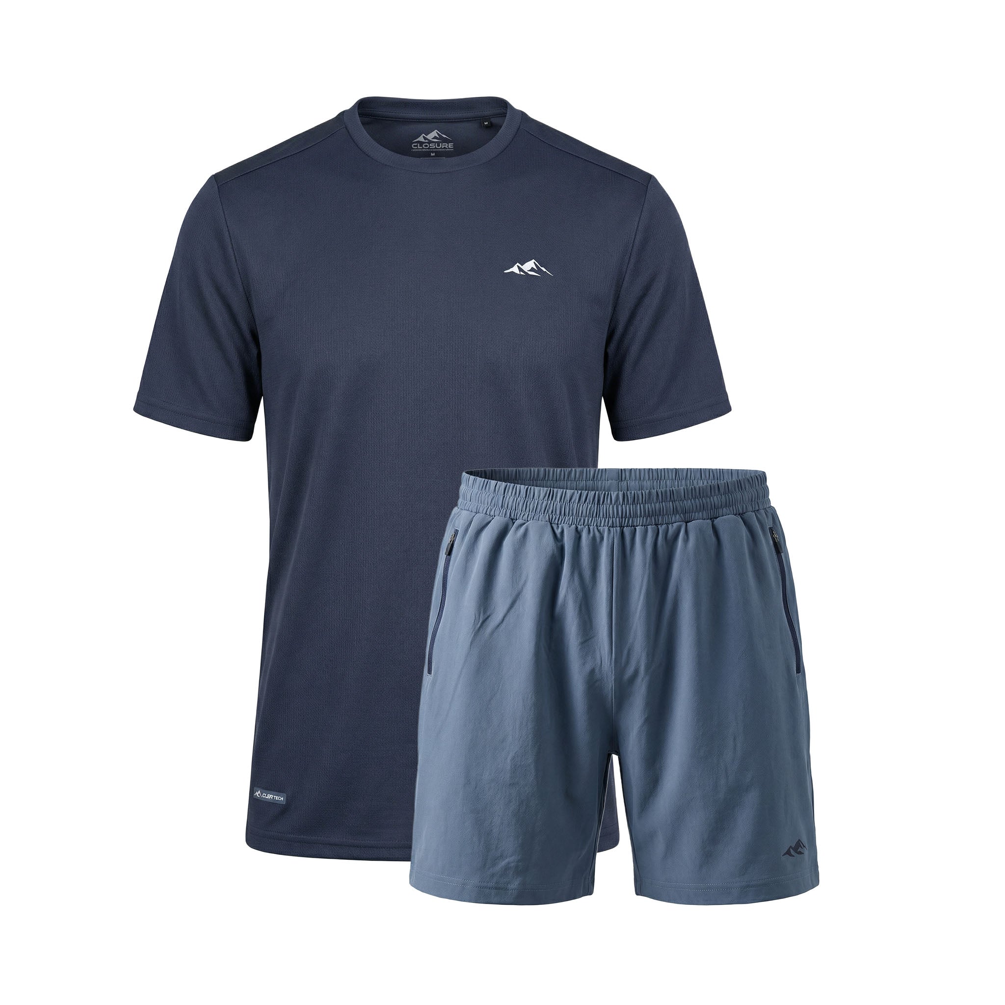 Enhance your performance with the Pace Performance Twinset, presented in a sophisticated Navy and Slate Blue palette designed for the athlete who values a sleek, tonal aesthetic. This twinset features a technical crew neck tee composed of high-grade, airy poly-fabric that masters temperature regulation; its specialised sweat-wicking weave keeps you feeling fresh and lightweight through every rep. Minimalist CLSR Tech branding at the chest signals professional quality, flowing seamlessly into the Slate Blue utility shorts. These are built for total movement, featuring a flexible elasticated waist anchored by internal drawcords with rugged, rubber-dipped toggles for a non-slip fit. Functional contrast pockets are upgraded with auto-locking reverse zippers to keep your valuables secure, while the reinforced twin-needle stitching delivers a sharp, durable edge that handles high-friction training with ease.