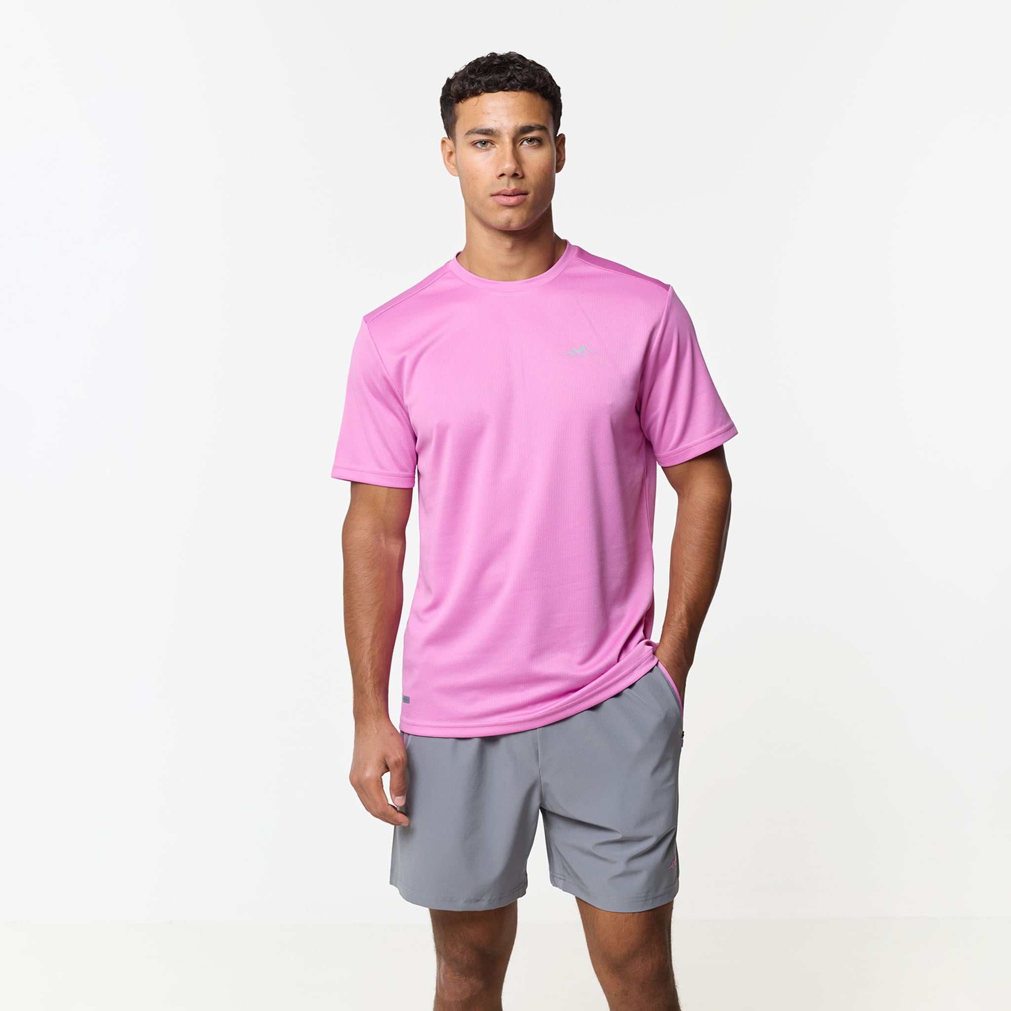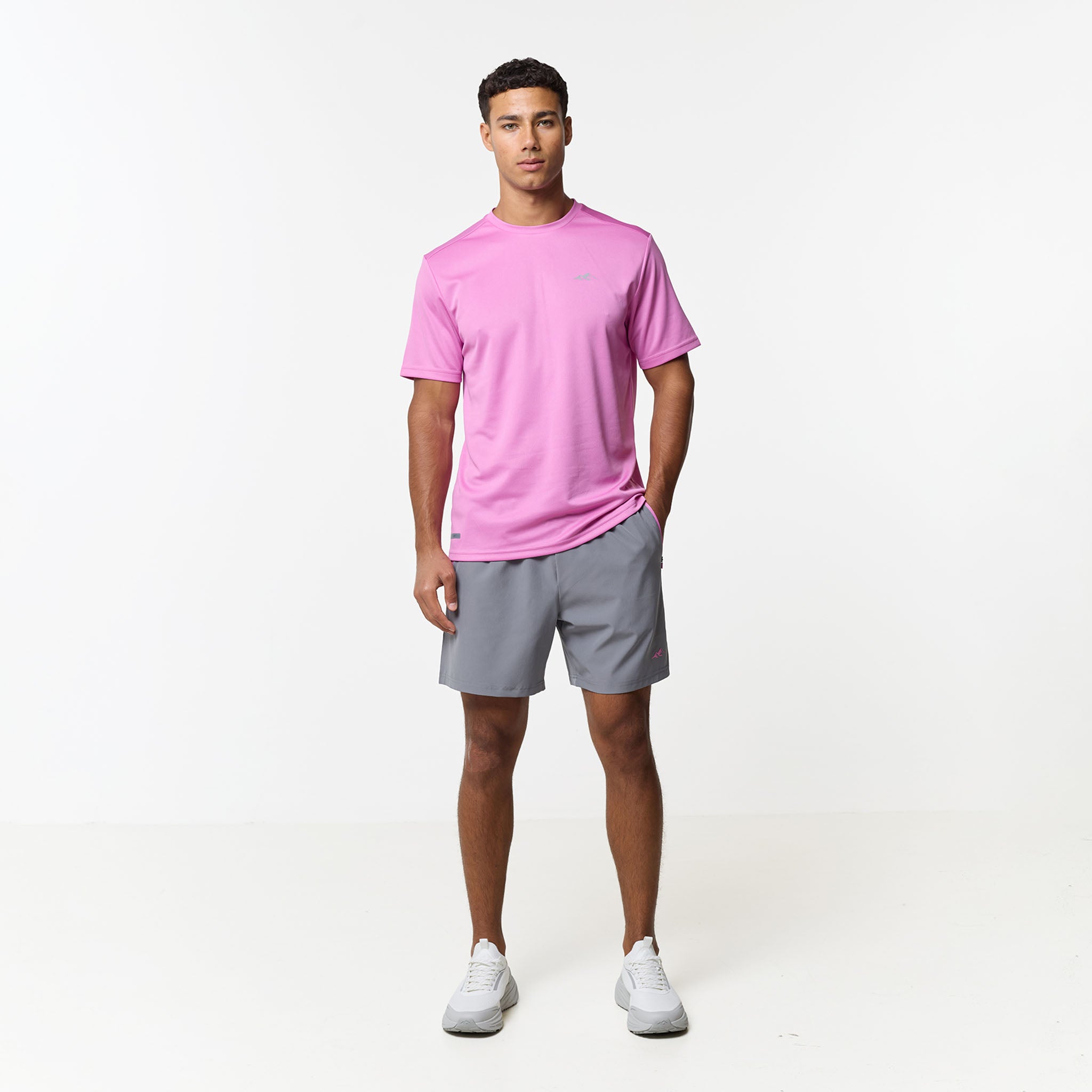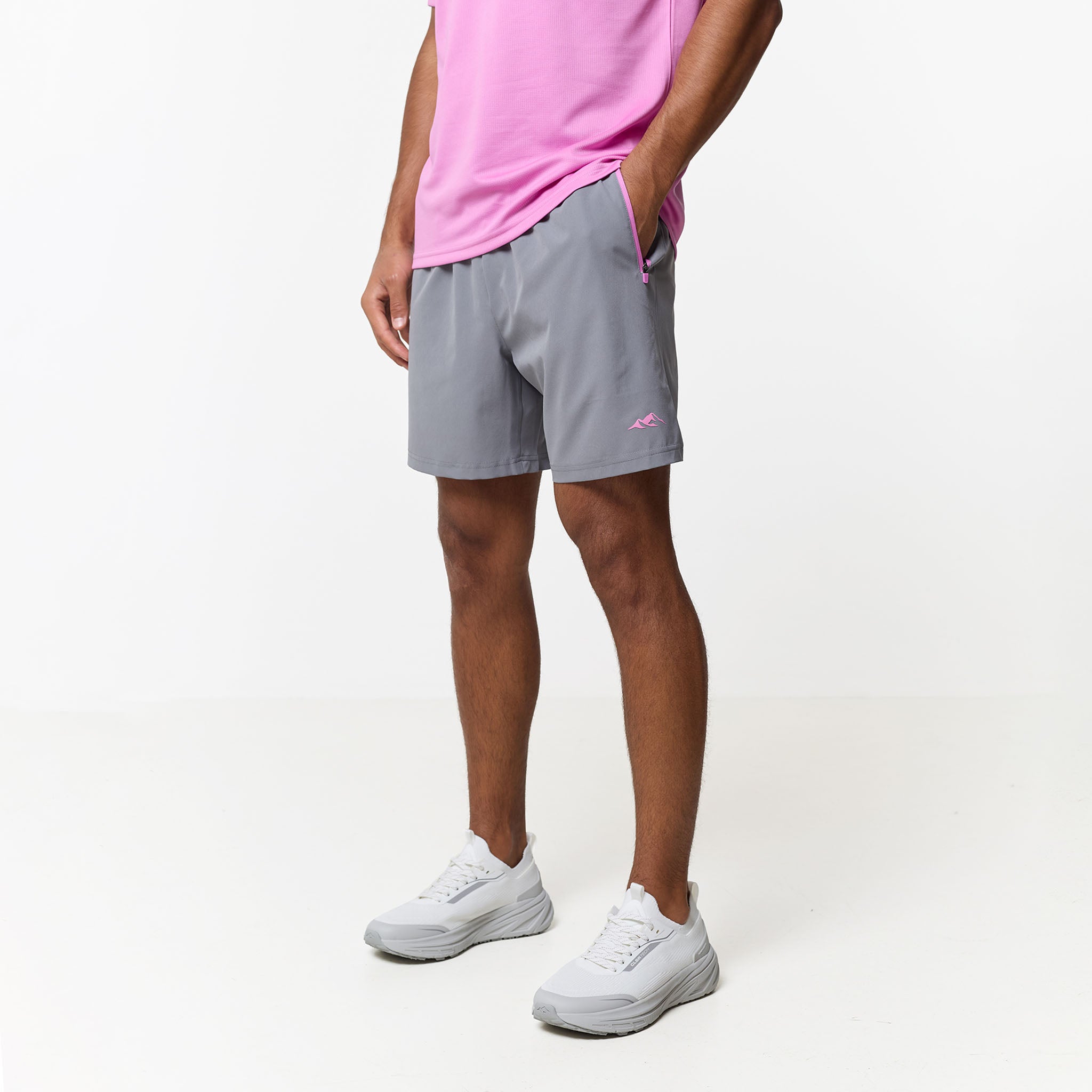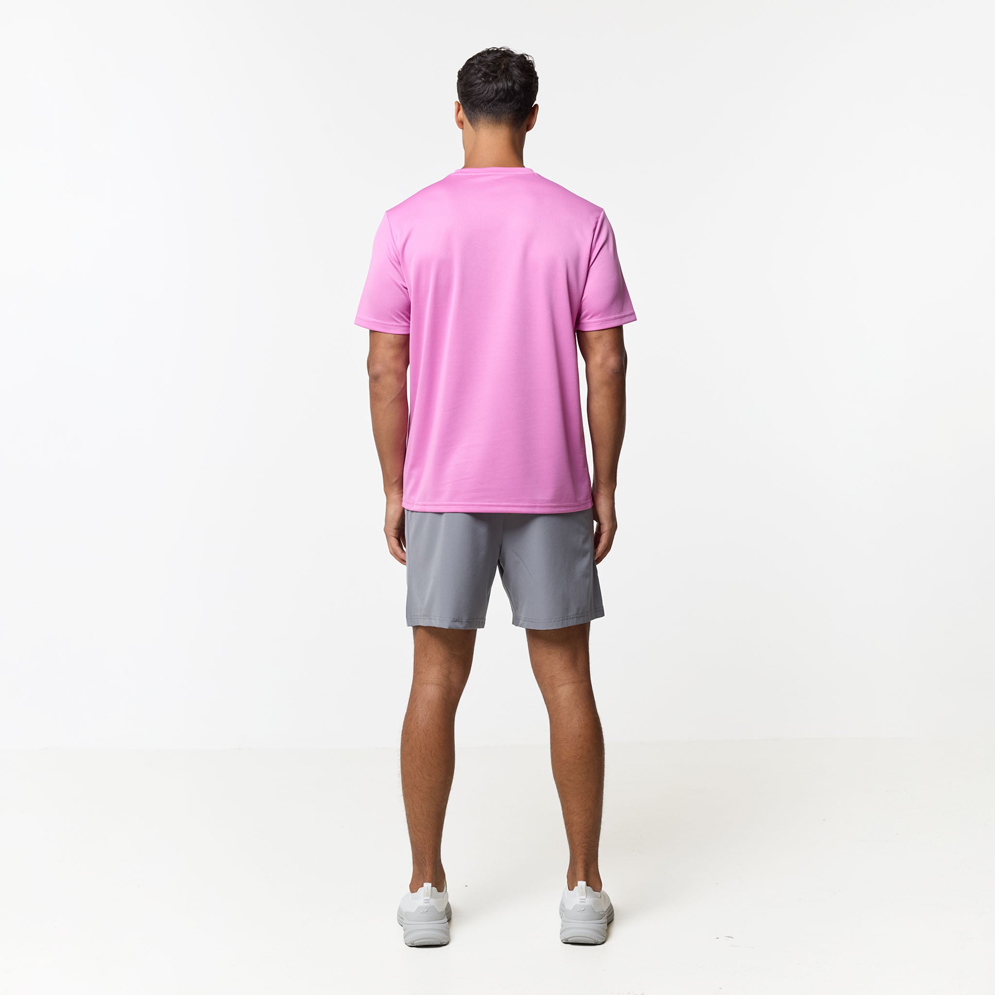Redefine your training aesthetic with the CLSR Tech Twinset in a bold Pink and Iron Grey, built to bridge the gap between workouts and elevated everyday wear. The set features a regular-fit tee cut from an elite, poly-mesh with advanced moisture-management and rapid-dry ensure you stay focused while the vibrant pink hue makes a statement. Completing the set is the Iron Grey performance shorts, engineered for a locked-in feel with an elasticated waist and internal drawcords capped with heavy-duty rubber tips. Designed with a focus on utility, the contrast-panelled pockets feature reverse nylon coil zippers and auto-lock pulls, while the twin-needle stitching guarantees a resilient finish that outlasts your toughest sessions.