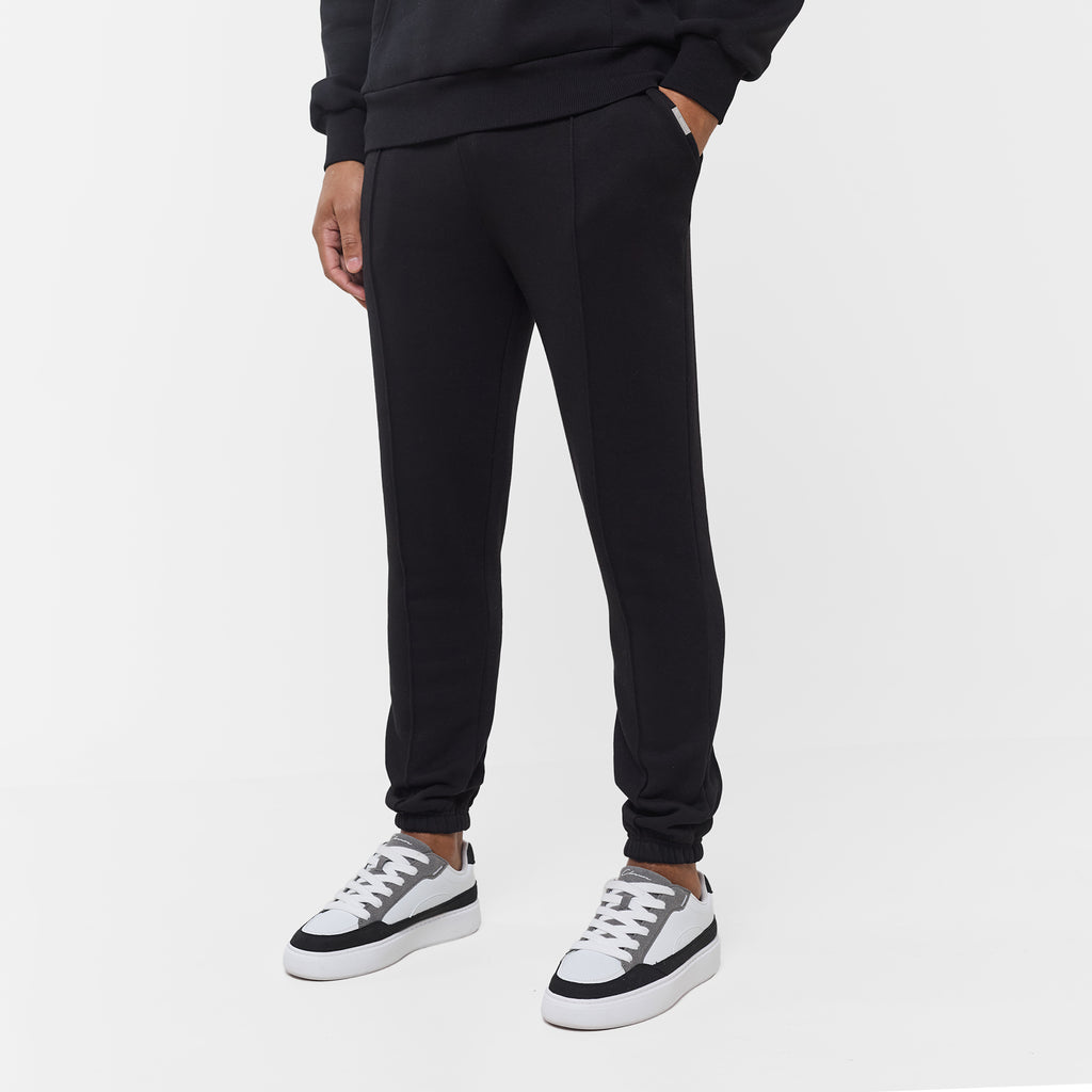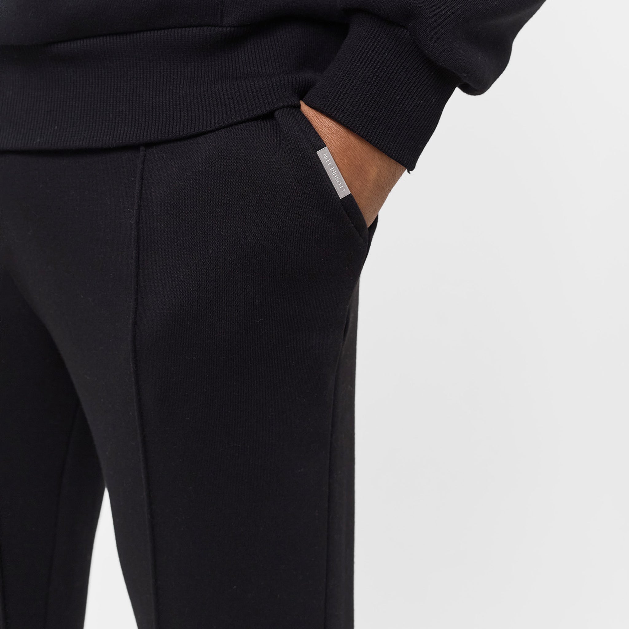 Elevate your casual wear with the Closure Pleated Cuffed Tracksuit in black. This essential set offers the perfect blend of comfort and statement-making style. Crafted from a luxurious 300GSM brushed fleece cotton, this tracksuit feels incredibly soft against your skin, keeping you warm and cozy. The hoodie features a relaxed, boxier fit for a contemporary silhouette, while the matching joggers boast a distinctive centre pleat and a premium metal clasp detail for a refined touch. Experience unified comfort and modern style.