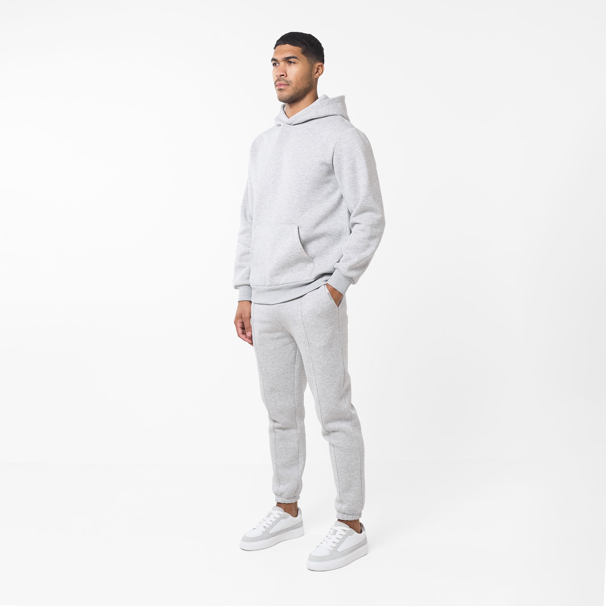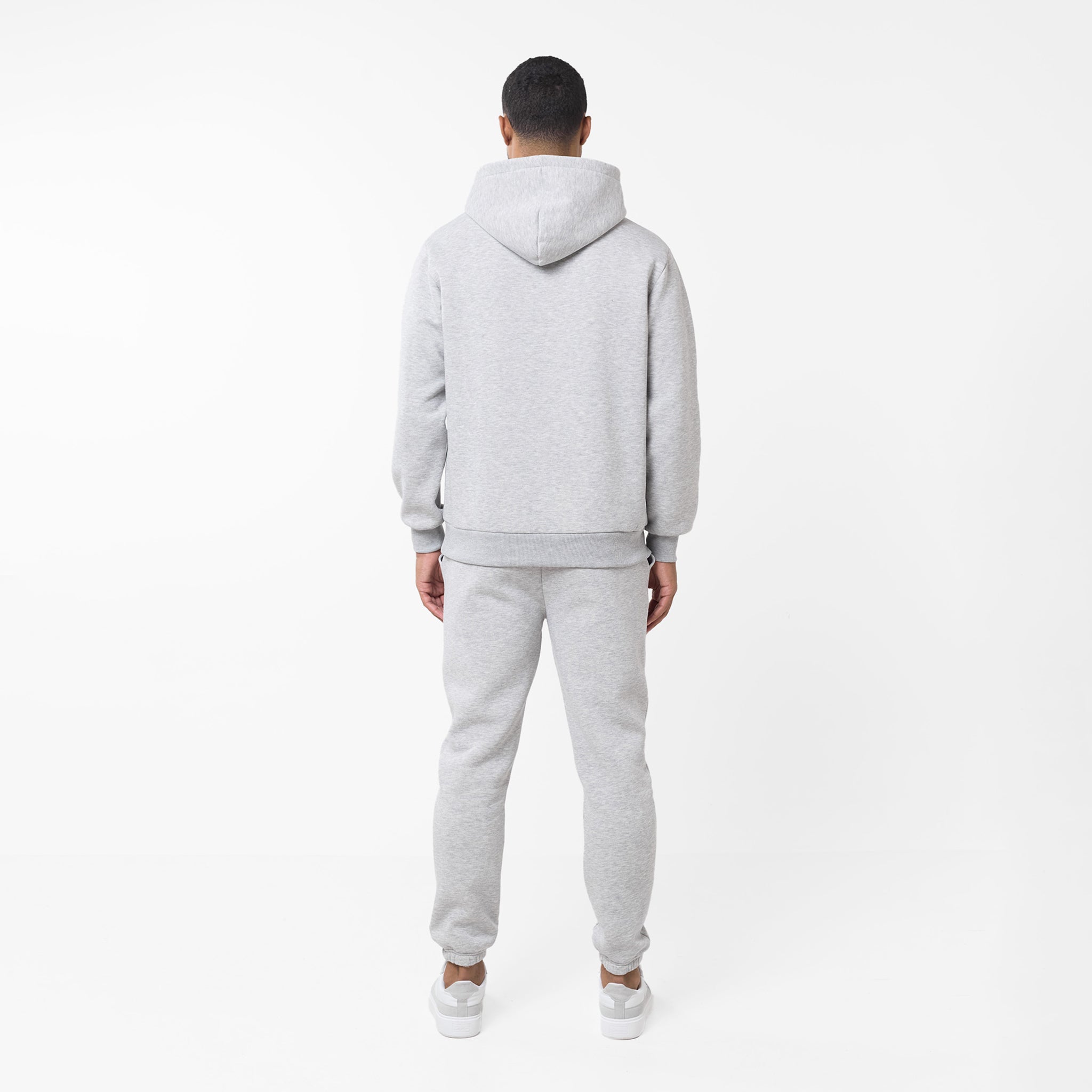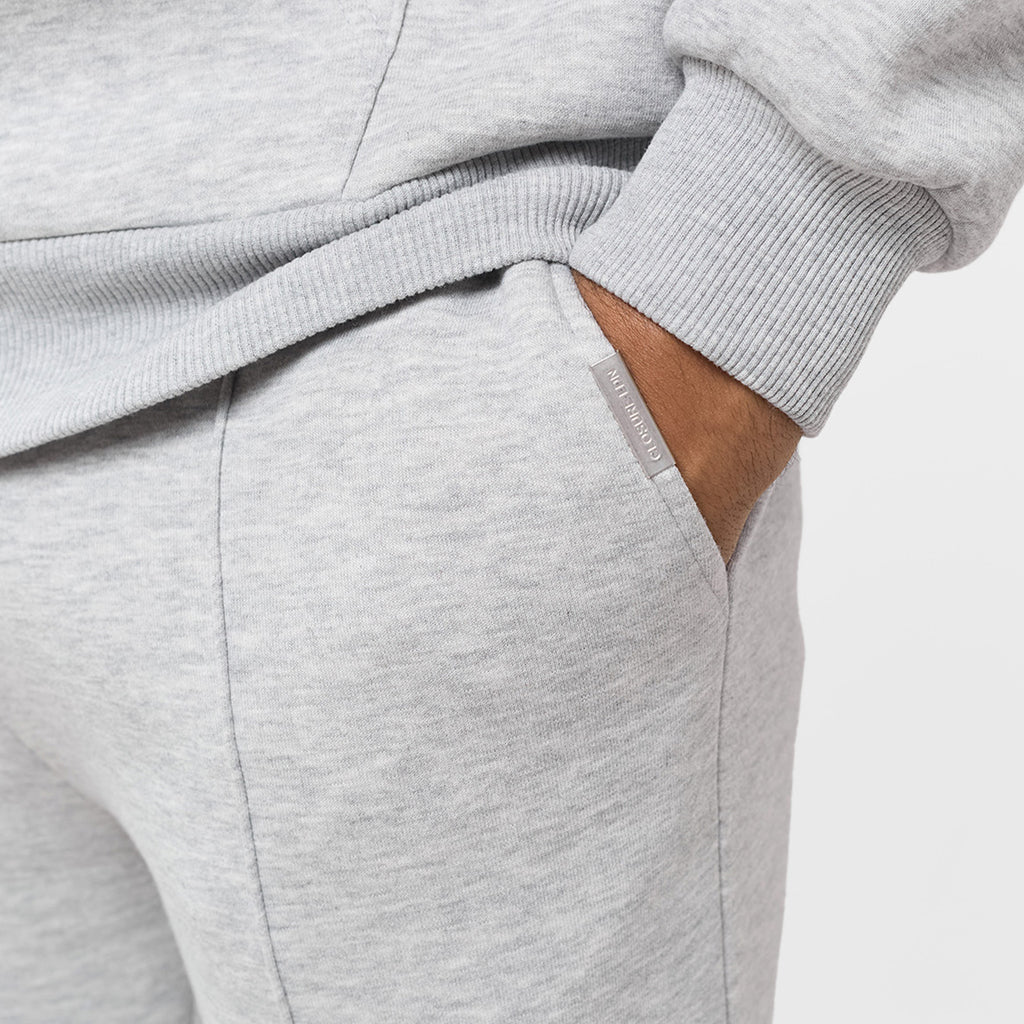 Discover the Closure Pleated Cuffed Tracksuit in Grey Marl. This essential set offers the perfect blend of comfort and statement-making style. Crafted from a luxurious 300GSM brushed fleece cotton, this tracksuit feels incredibly soft against your skin, keeping you warm and cosy. The hoodie features a relaxed, boxier fit for a contemporary silhouette, while the matching joggers boast a distinctive centre pleat and a premium metal clasp detail for a refined touch. Experience unified comfort and modern style in a timeless grey marl.