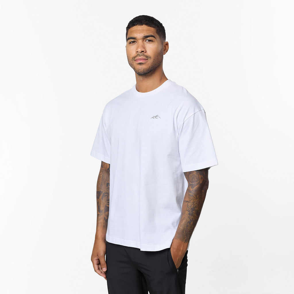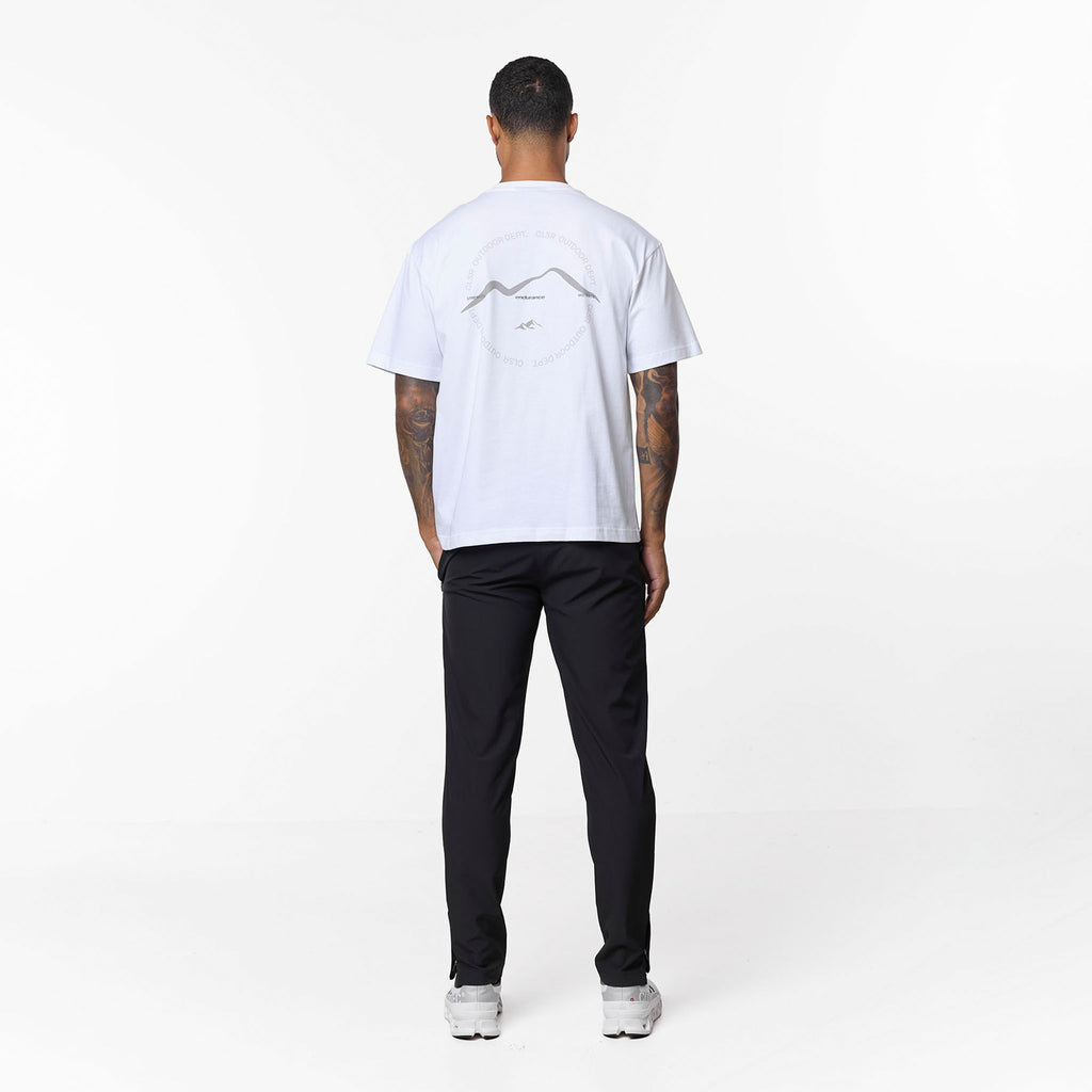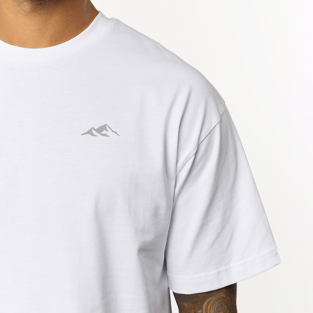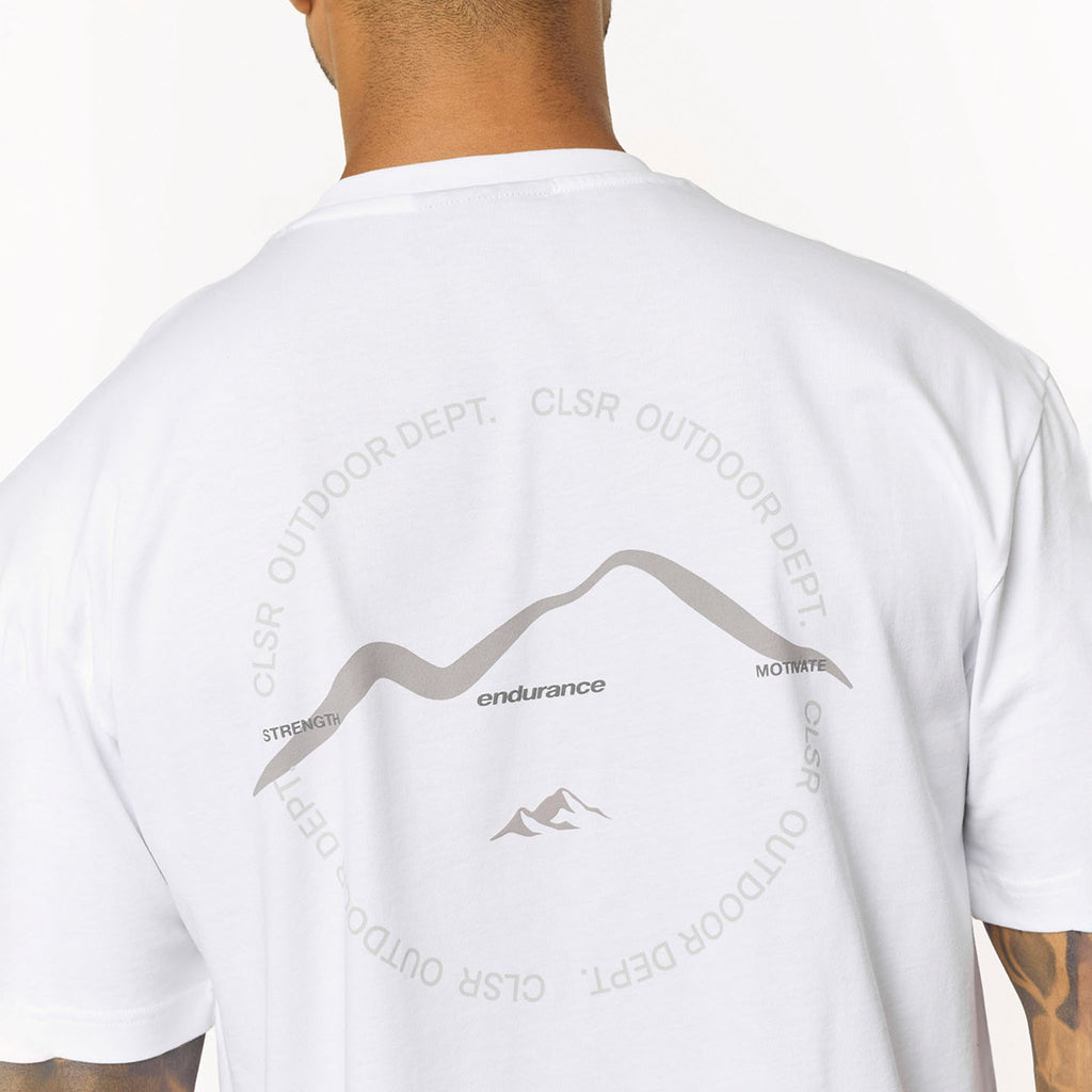 Discover sharp style and premium comfort with the White Premium Mountain Tee. This short-sleeved top is made for those who appreciate quality, featuring a classic crew neck and a soft self-fabric neck trim. It offers a smooth feel from the neck tape with a woven back neck label. A striking Closure signature print on the chest adds an instant branded touch, powerfully echoed by an impactful Closure print across the rear. Completed with clean self-turn cuffs and hem, this tee is a perfect fusion of premium quality and distinctive, everyday appeal.