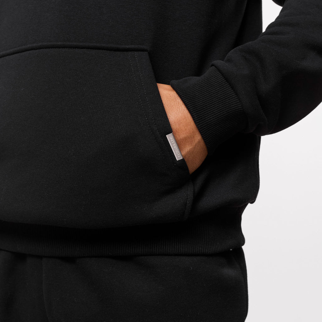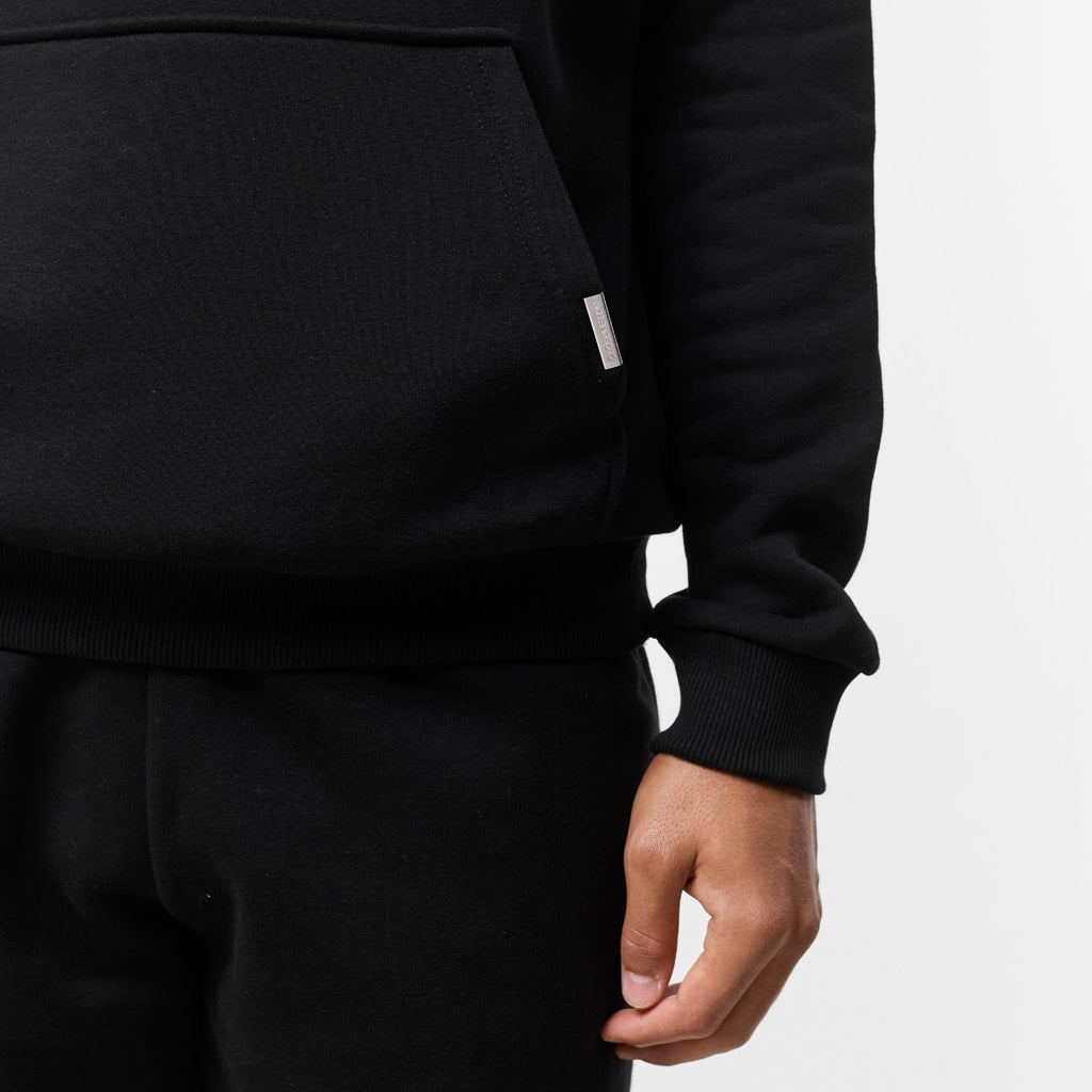 Experience unparalleled comfort and sophisticated style with our Relaxed Fit 1/4 Zip Open Hem Tracksuit in black, crafted from luxurious 300GSM brushed fleece cotton. This ensemble features a relaxed fit fleece top with a funnel neck, durable metal 1/4 zip closure, kangaroo pocket, ribbed cuffs and hem, and a premium branded metal clasp on the pocket, paired with relaxed fit open hem joggers that boast a heavy rib elasticated waistband, concealed side seam pockets, a back welt slip pocket, and matching premium metal clasp branding. This tracksuit seamlessly blends premium materials with thoughtful design details, offering exceptional warmth, softness, and a modern, laid-back silhouette perfect for lounging or casual outings.