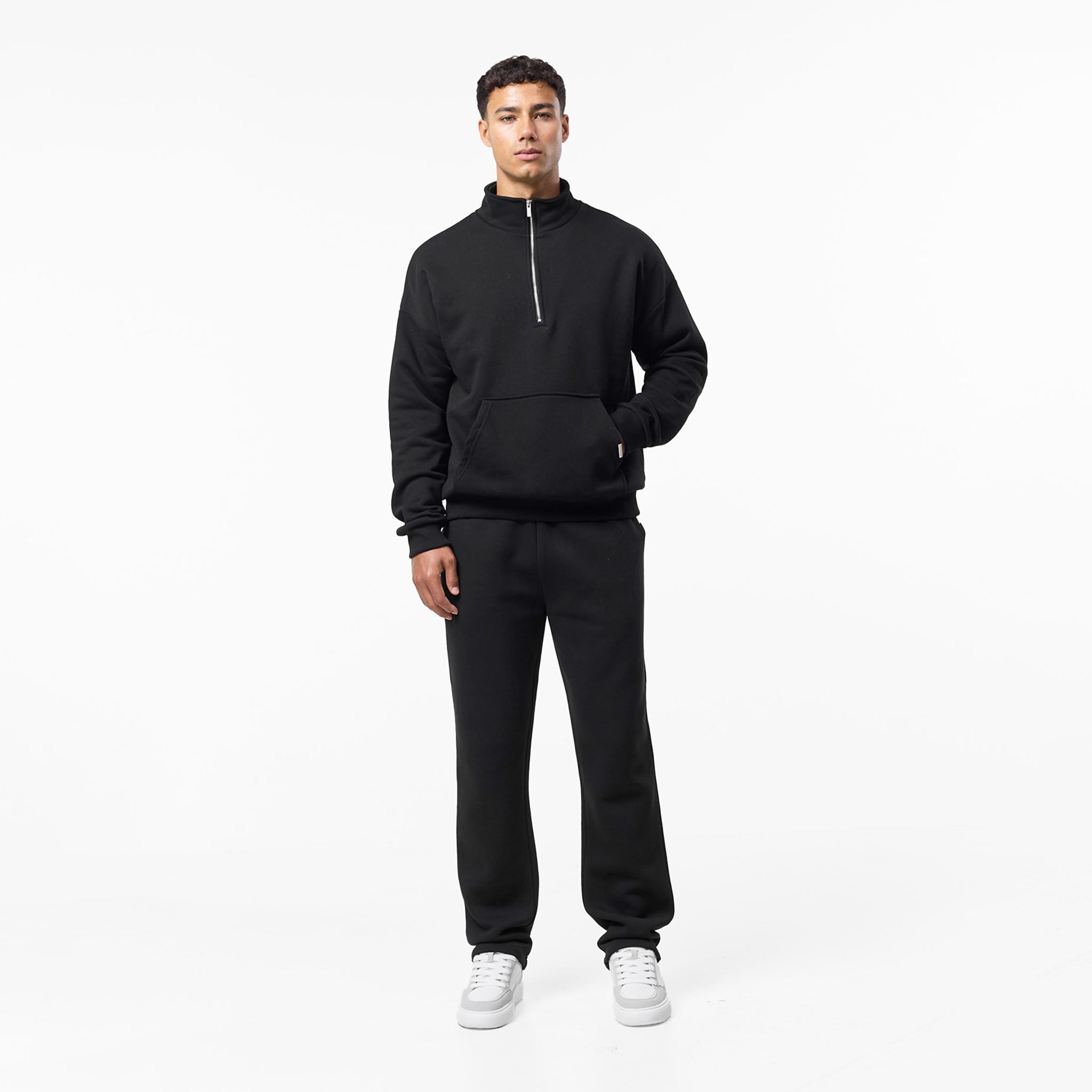 Relaxed Fit 1/4 Zip Open Hem Tracksuit | Black