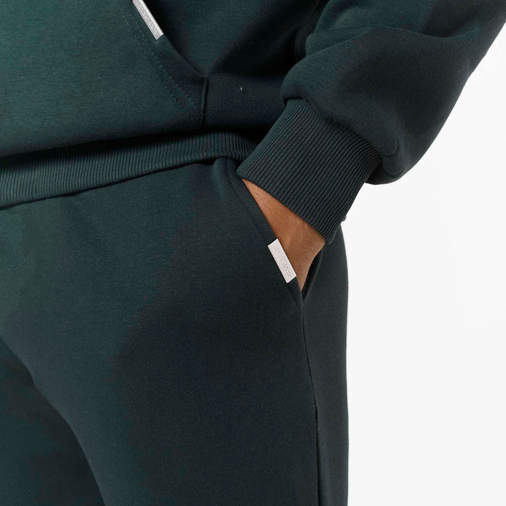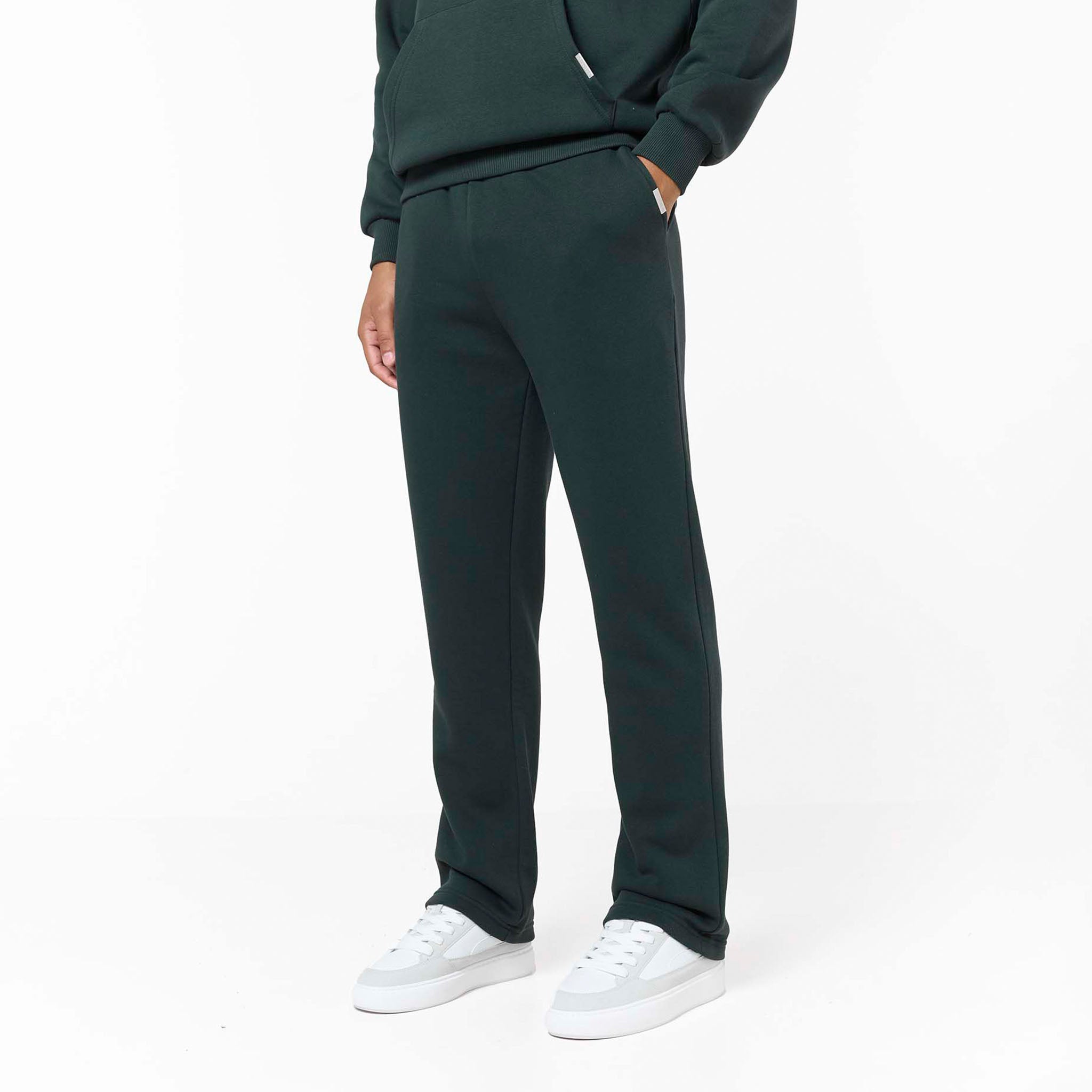 Discover the new season Forest Green Open Hem Joggers. These essential relaxed-fit joggers, now in a rich forest green, are designed for effortless style. Crafted from a substantial 300GSM brushed fleece cotton, they offer an incredibly soft feel against your skin, providing warmth and cosiness without compromising on breathability. The heavy ribbed elasticated waistband ensures a secure yet comfortable fit, while concealed side seam pockets offer discreet storage for your essentials. A back welt slip pocket adds extra utility, subtly finished with premium metal clasp branding for a touch of elevated style.