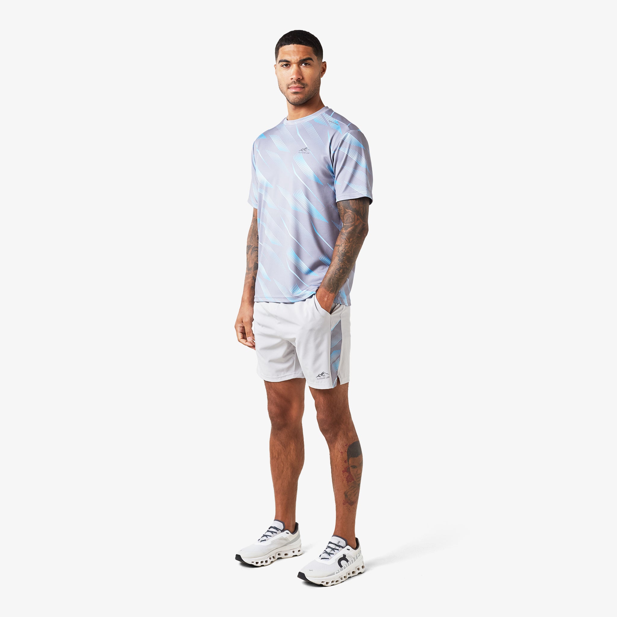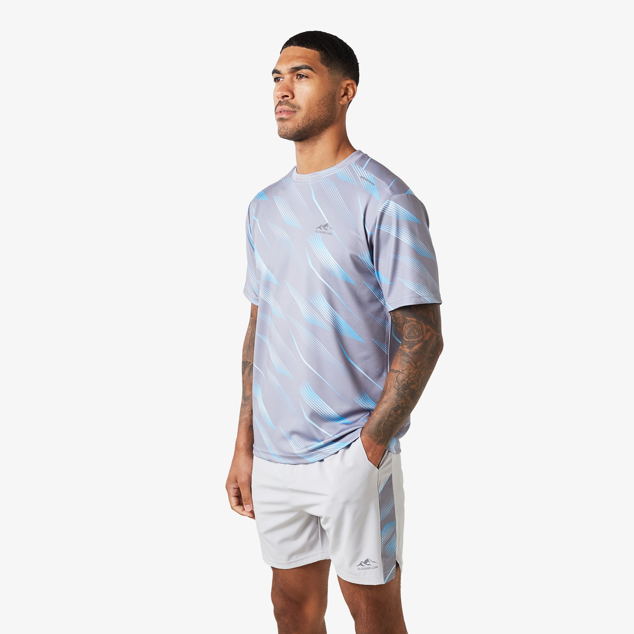The Speed Print Twinset in grey is your ultimate companion for an active lifestyle. Crafted from premium fabrics, this set delivers exceptional comfort, breathability, and unrestricted movement. The contemporary design of this twinset is elevated by a bold graphic print, making a statement wherever you go. Its versatile styling options and comfortable fit make it perfect for everything from intense workouts to casual outings.