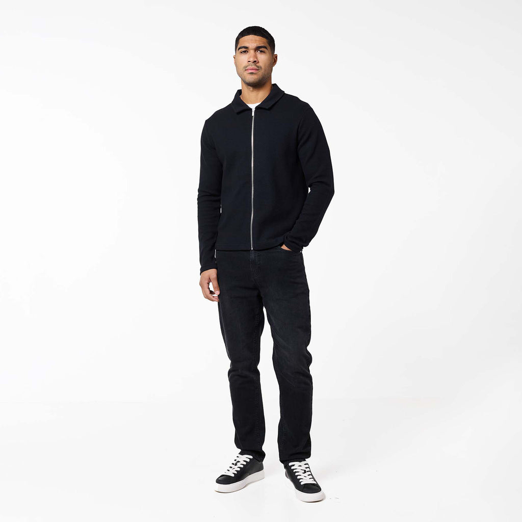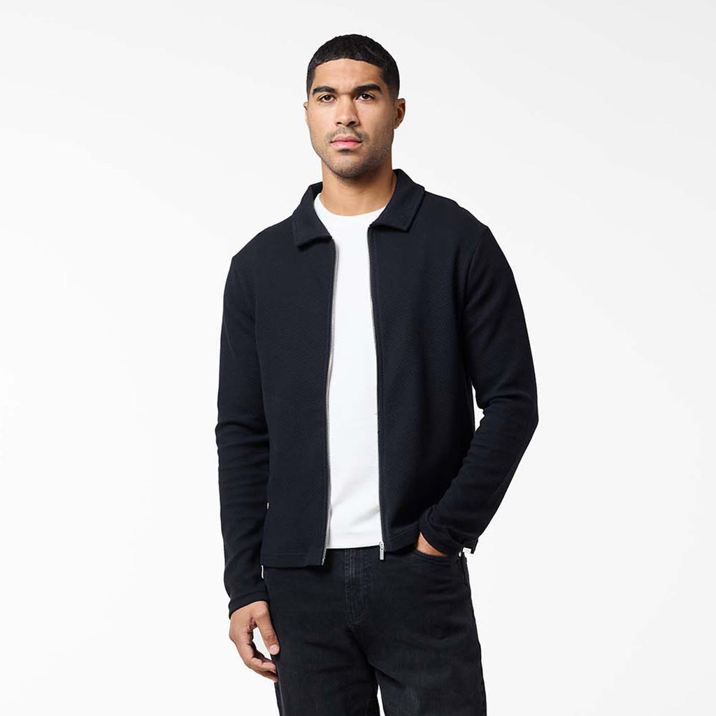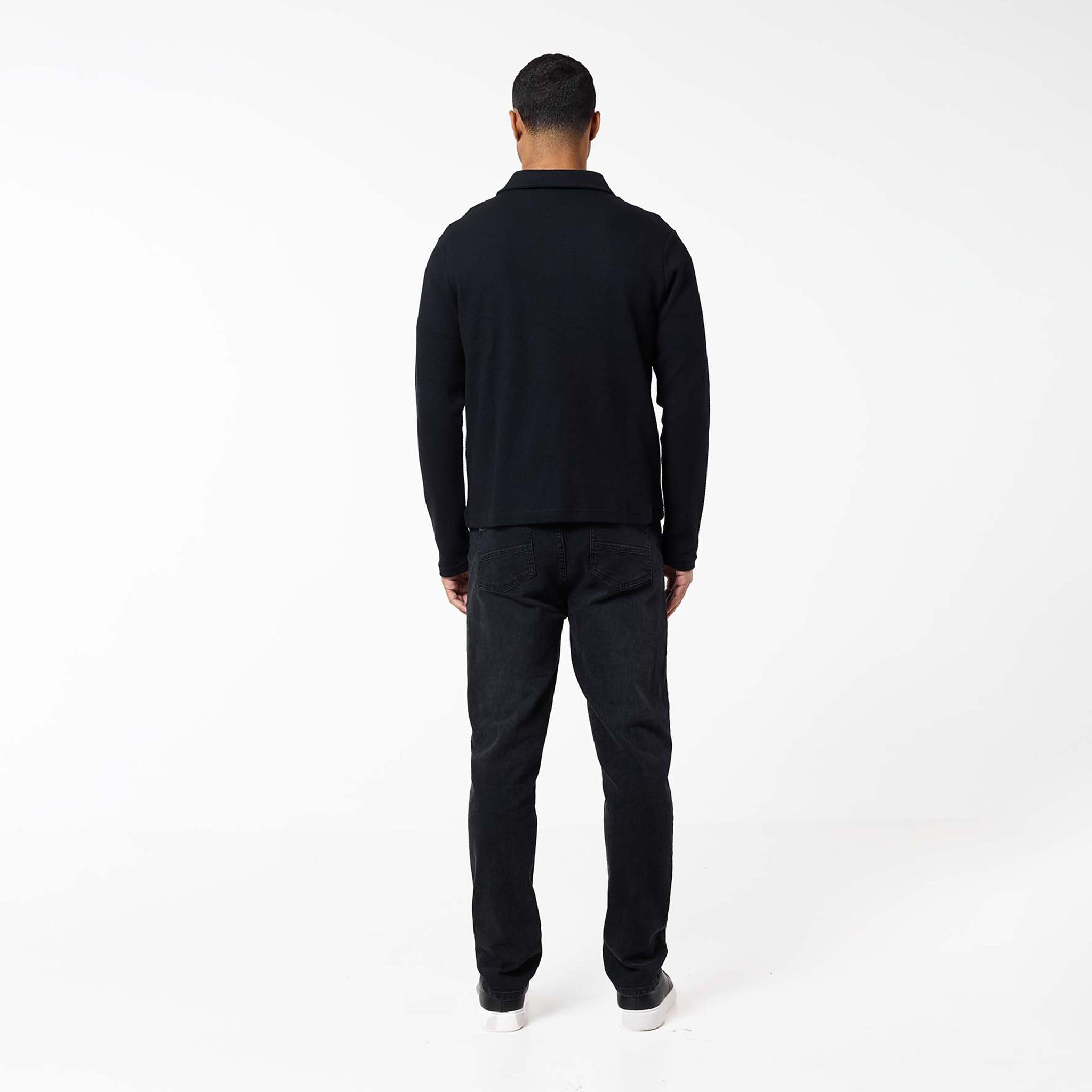 Elevate your casual style with our new Men's Black Jacquard Full Zip Overshirt. This versatile layering piece is crafted from a unique 270GSM cotton jacquard fabric, offering a distinctive textured finish that adds depth to any ensemble. Features a crisp self-fabric collar and a sleek exposed metal zip, ensuring a refined aesthetic. Subtle Closure London metal badge branding provides a premium, understated touch. Perfect as a lightweight jacket alternative or worn open over your favourite classic tee, this black overshirt is an essential for any contemporary wardrobe.