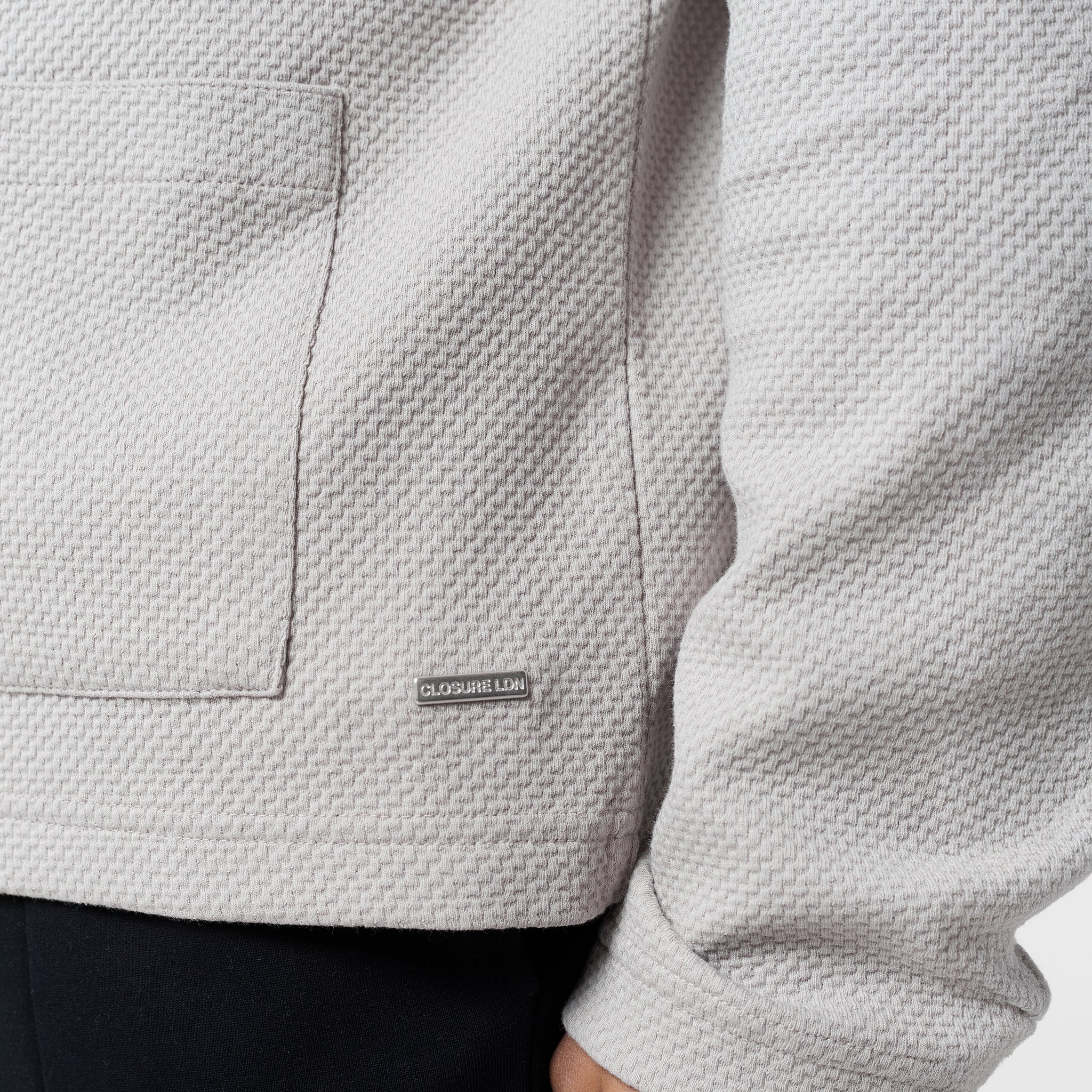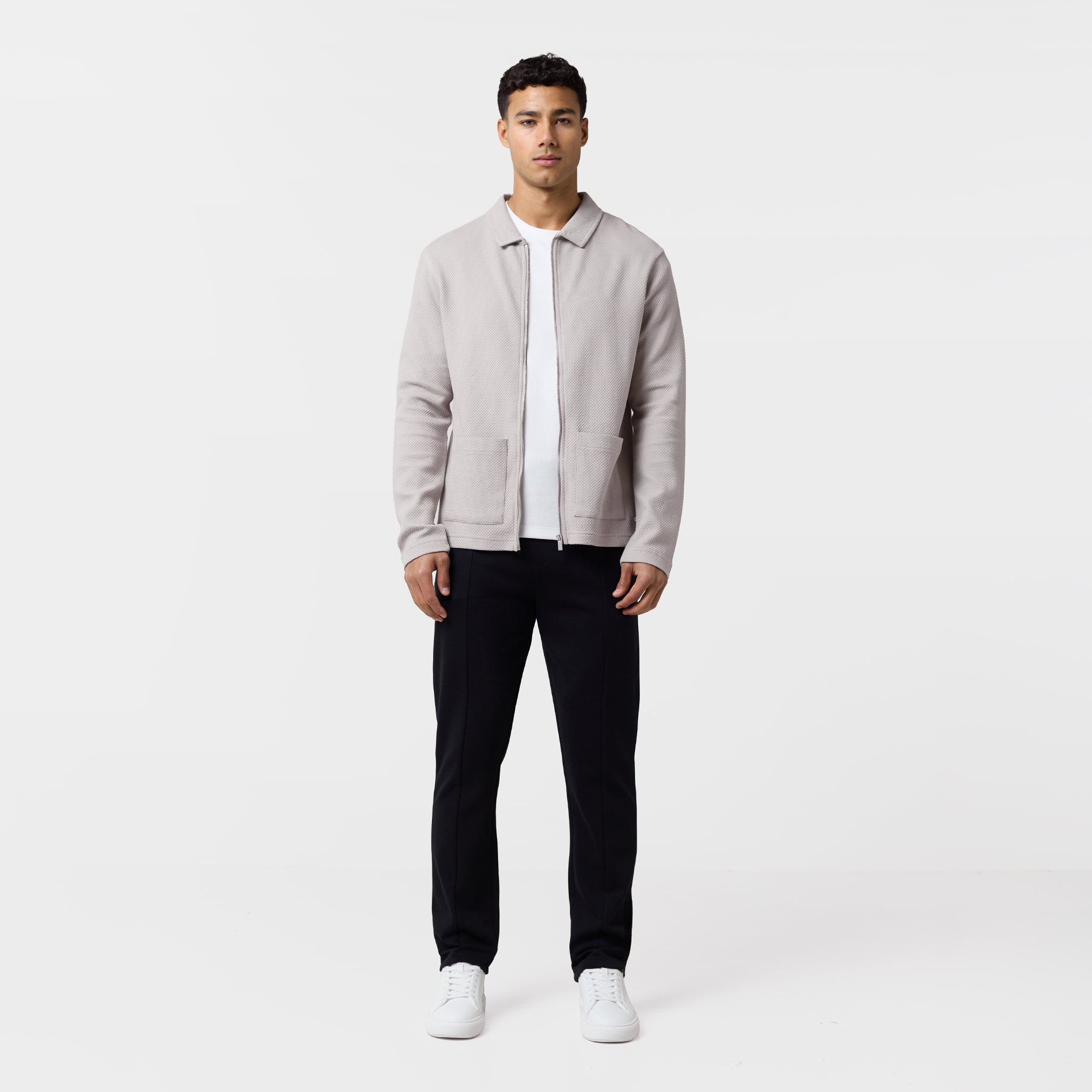 Elevate your casual rotation with the new season Closure London Textured Full Zip Overshirt in a stone shade. A versatile long-sleeved layer that masterfully bridges the gap between a shirt and a lightweight jacket. The design features a self-fabric collar reinforced with internal neck tape for lasting structure, while a sleek metal zip front closure adds a modern, industrial edge. Functional yet stylish, the lower front is detailed with spacious top-stitched patch pockets, perfectly complemented by the clean lines of the self-turn cuffs and hem. Finished with the signature metal brand badge near the bottom hem, this piece offers a premium, tactile upgrade to your smart-casual wardrobe.