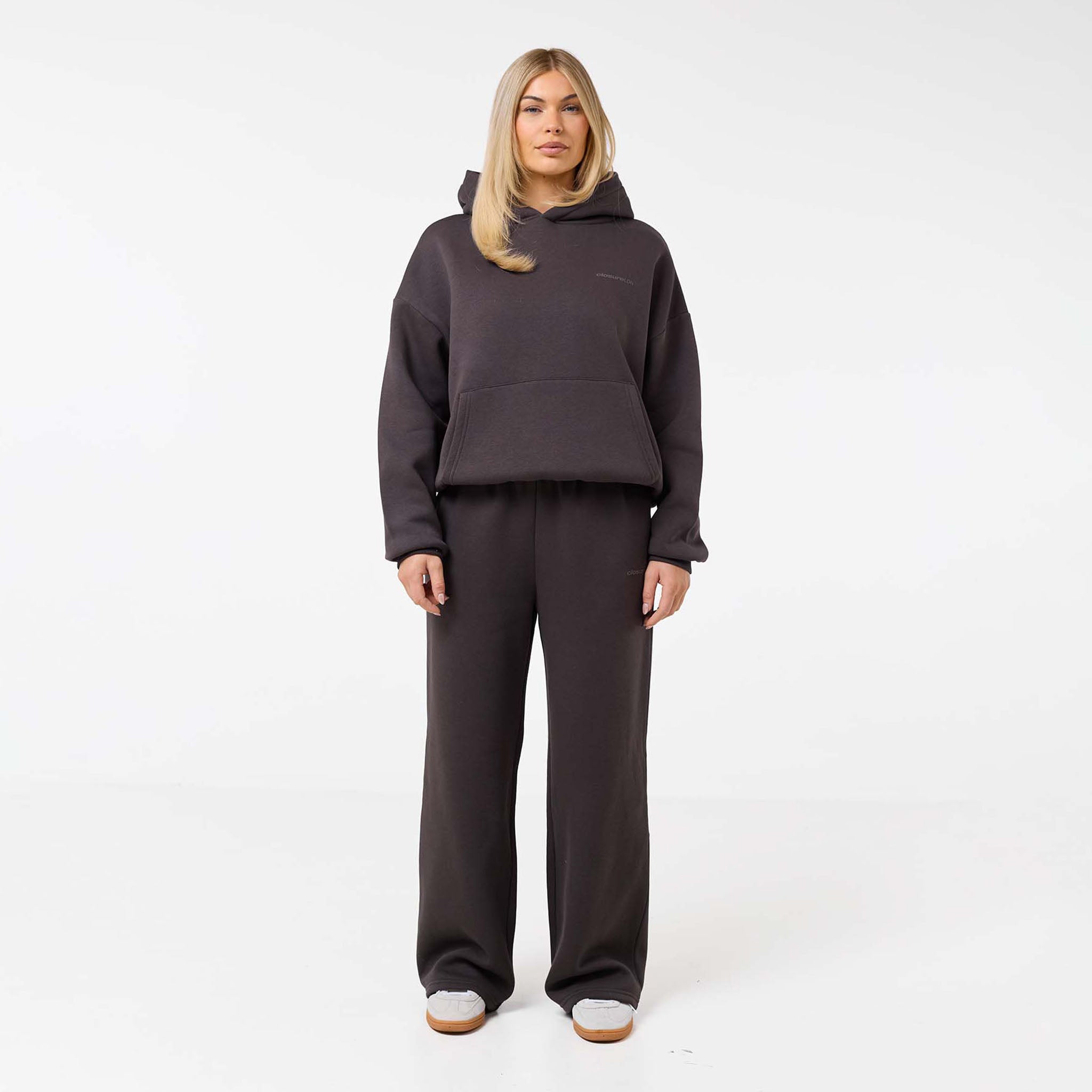 Elevate your casual wear with the Tonal Core Logo Tracksuit in an on-trend espresso shade. This two-piece set is designed for effortless, laid-back style. The Tonal Core Logo Hoodie is crafted with a relaxed fit and a soft, fleece-lined interior for ultimate comfort. It features a contemporary crossover hood, a classic kangaroo pocket, and ribbed cuffs and hem. The tonal Closure London logo on the chest provides a clean, understated finish. The coordinating Tonal Core Logo Open Hem Joggers are made from a plush 300GSM brushed fleece. They offer a comfortable, relaxed fit with a modern open-hem silhouette. Functional details include a cut-and-sew waistband with internal drawcords for a customisable fit and practical slant pockets. A minimalist Closure LDN logo makes this tracksuit a versatile staple. Perfect to pair with a tote bag and cap for a polished, on-the-go look.
