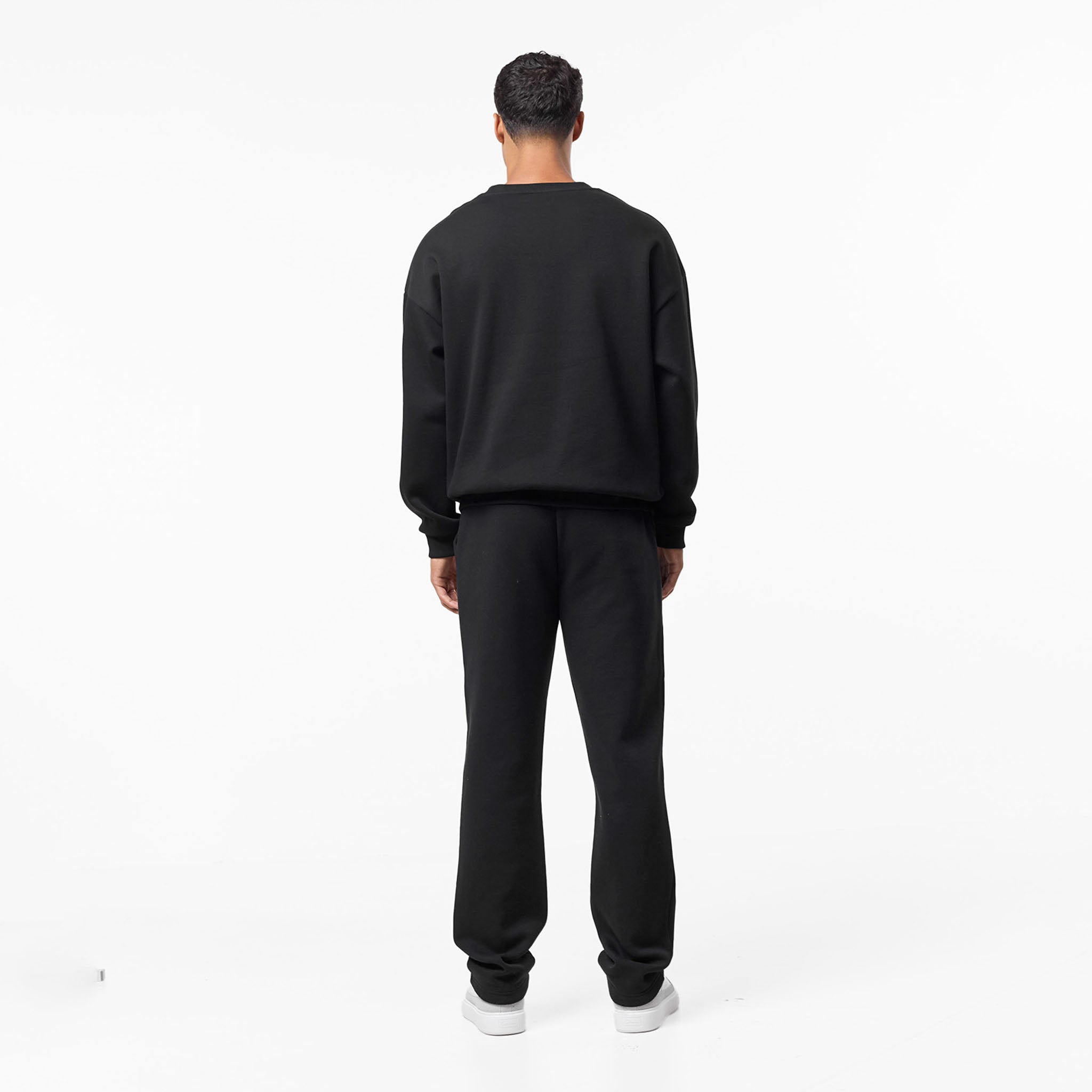 Experience unparalleled comfort and effortless style with the Tonal Signature Tracksuit in black. This set combines our luxuriously soft Tonal Signature Sweatshirt and the Relaxed Fit Cuffed Joggers, creating the perfect contemporary aesthetic. The crewneck sweatshirt, crafted from a 300GSM blend of cotton and polyester, provides exceptional warmth and a sumptuously soft feel. Complementing this is the relaxed fit cuffed joggers, designed for ultimate comfort for lounging or relaxed outings. Subtle design details and premium fabrics elevate this tracksuit beyond basic loungewear, making it the ideal choice for those who appreciate both comfort and refined style.