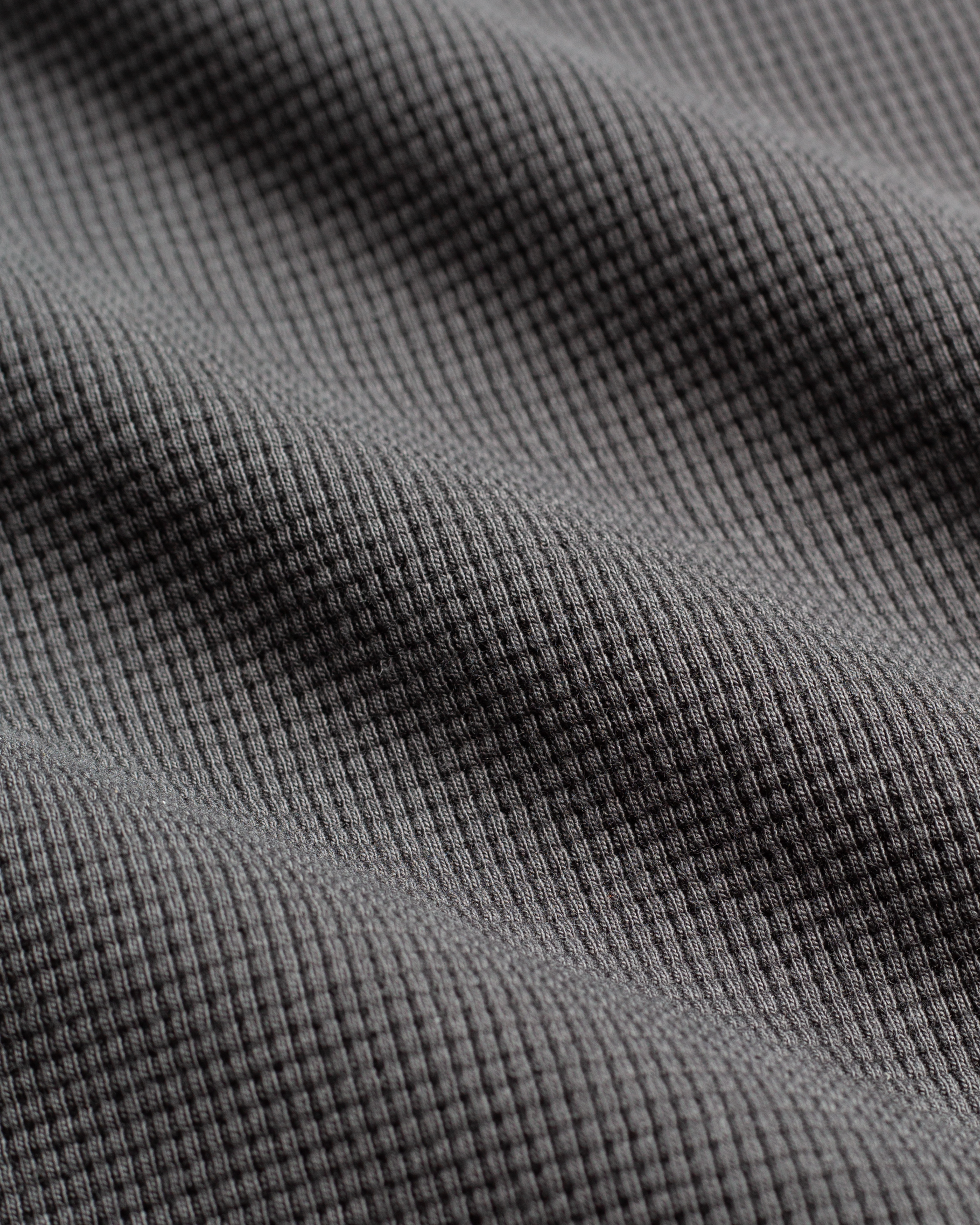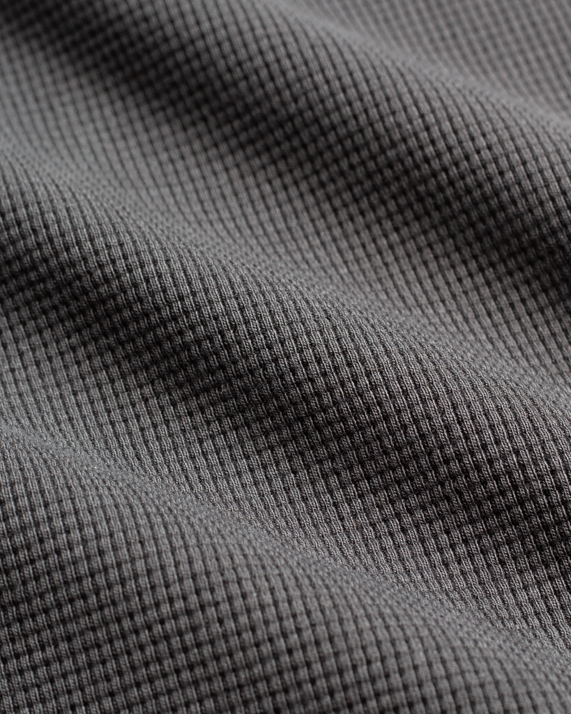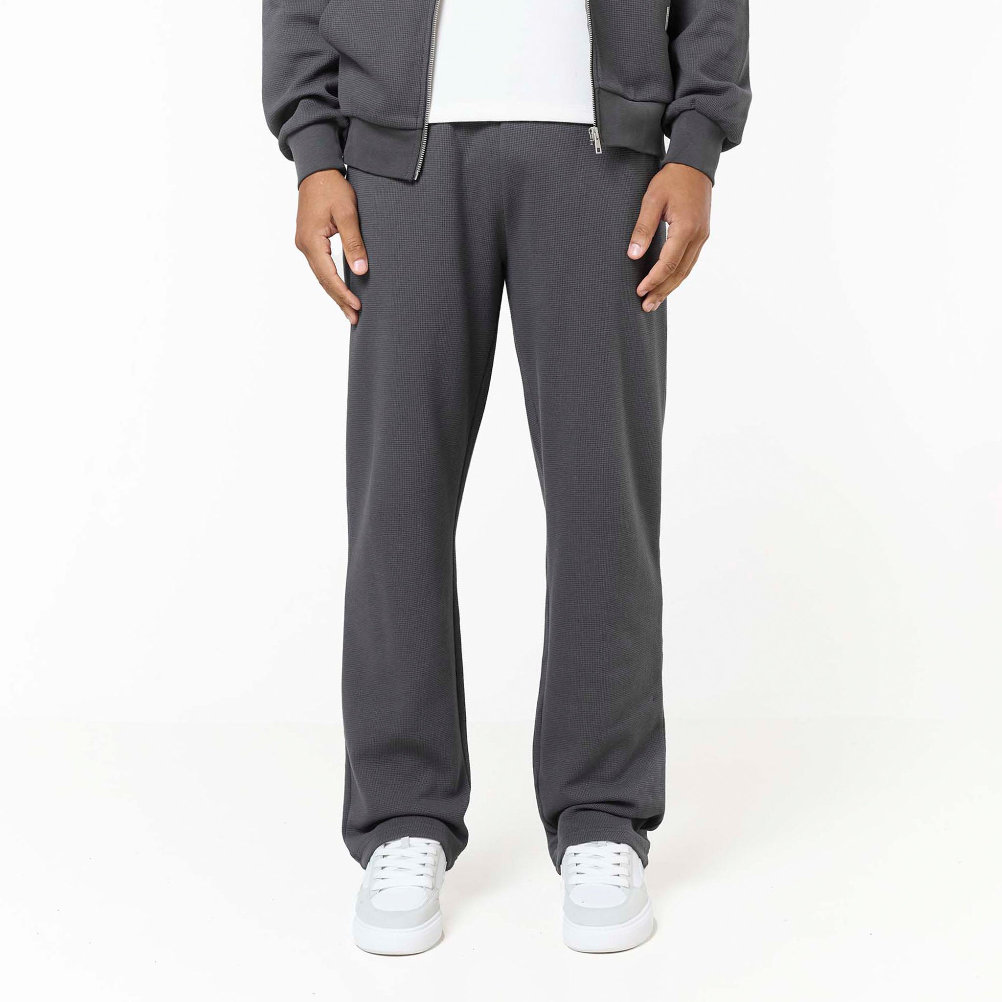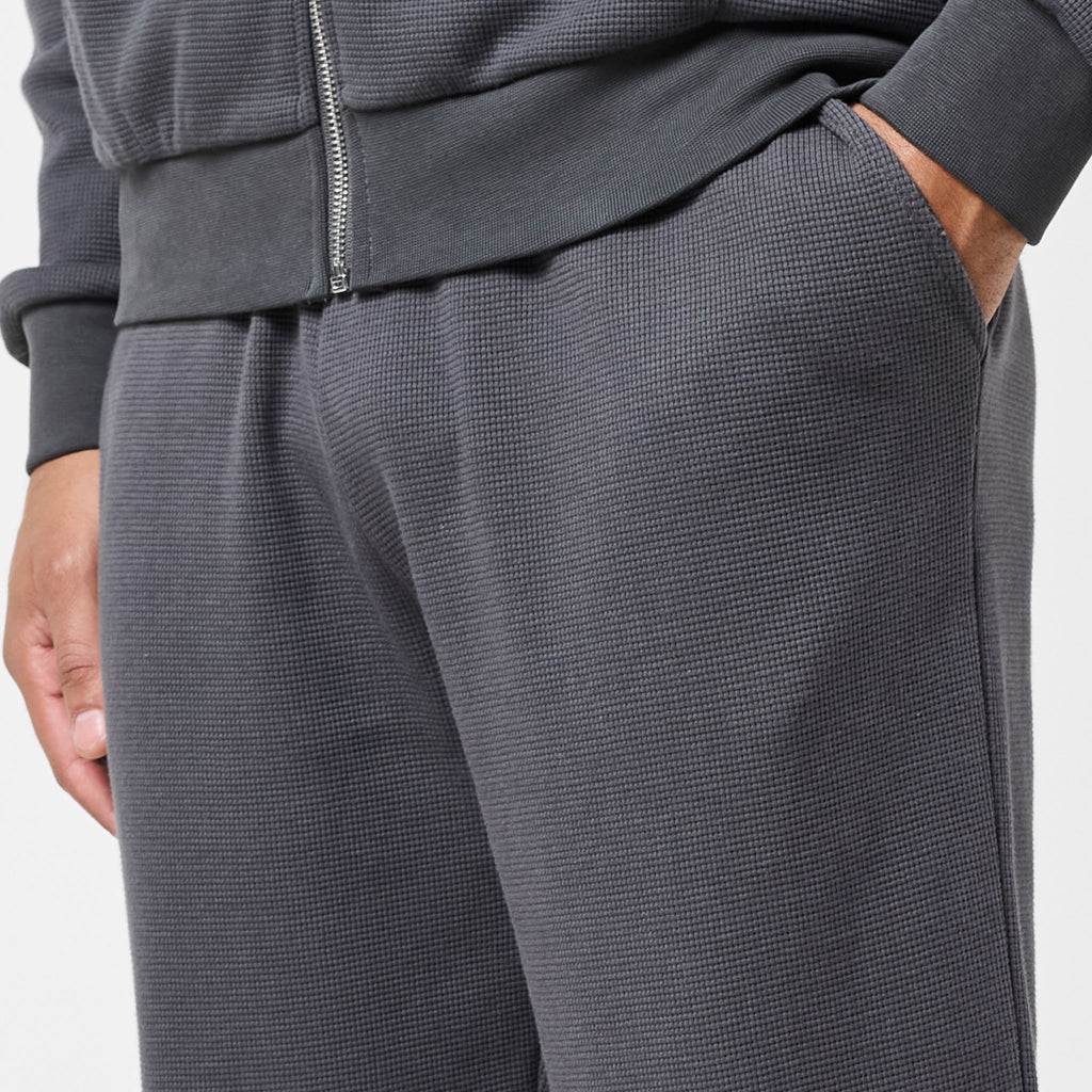 Discover elevated comfort with our men's charcoal Waffle Knit Joggers. Featuring a distinctive waffle fabric design, these joggers are ideal for relaxed days or running errands. They boast a snug ribbed waistband with flat internal drawcords for a customisable fit. Designed with a contemporary open hem fit, they pair seamlessly with our matching full zip hoodie for a cohesive, stylish ensemble. Practicality comes with convenient slant pockets, detailed with a branded metal tab, and two discreet rear welt pockets. The self-turn cuffs ensure a clean, tailored appearance.